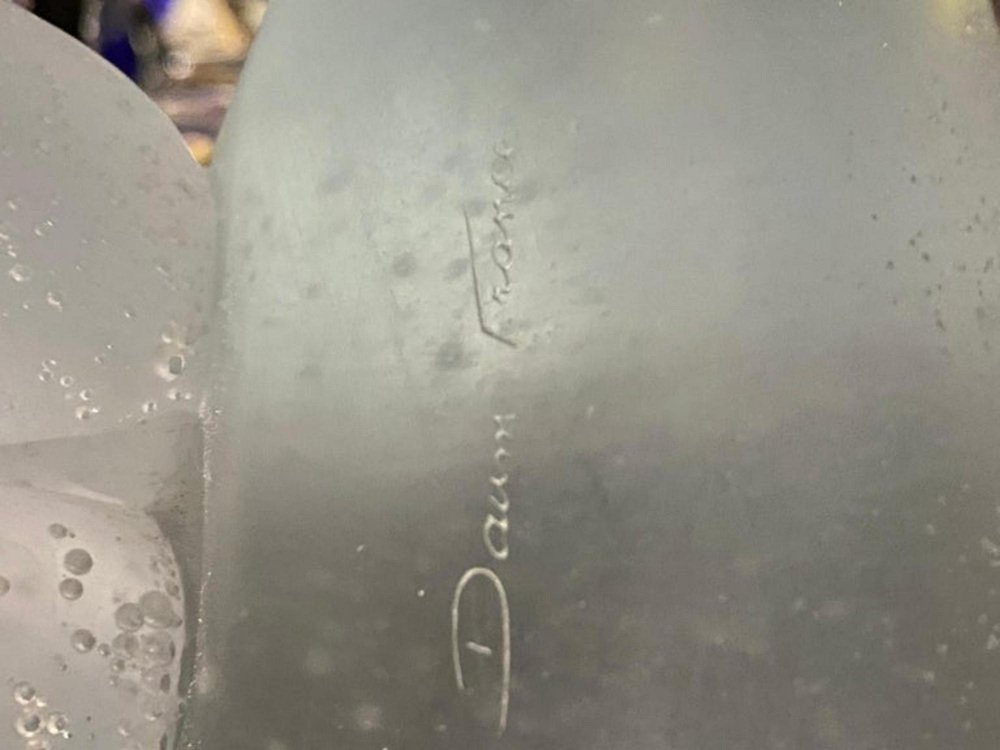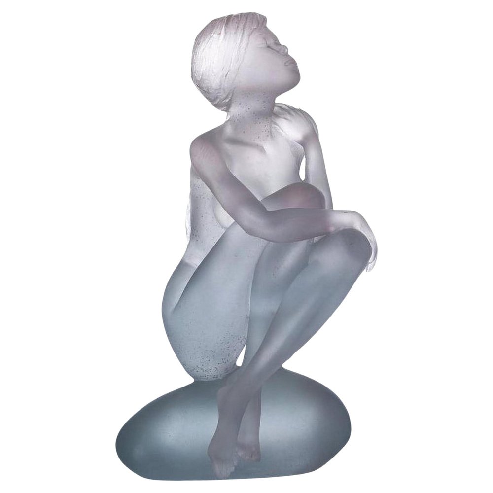 Sculpture "Deville Chabrolle" Daum Model 'Aphrodite' in molded and embossed crystal paste, blue color, edition 235/475, signed 'Daum, France', by sculpted Deville Chabrolle. Dimension : (height) 30 cm.