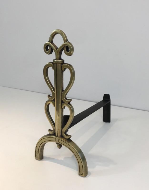Alari in bronzo e ferro, Francia, anni '40, set di 2