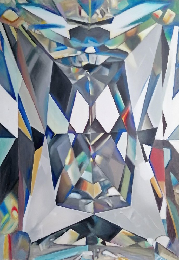Gemstone. 2014., oil on canvas, 130x90 cm Geometric painting with many light reflections in gemstone Alyona Prokofyeva (1988) from 2016 surname Galaktionova. Alyona graduated Riga art school, Latvian University, receiving a visual arts teacher and householder teacher qualifications, as well as master’s degree of Art Academy of Latvia, conceptual workshop Ivars Heinrihsons lead. The artist participates in exhibitions since 2011. Alyona like to exploring different materiality through painting, especially glass and metal. The aim of the work is the realistic depiction of materiality and textures. Interest in textures author have found while exploring XVII century Dutch artists paintings. These paintings inspired by realistic depiction of materiality. Because of the realistic painting technique, each painted object looks like a treasure, they enchant with their hyperrealism, harmony, tremendous energy and strength. This is the main aim of Alyona paintings – to fill each painting with energy and strength using a realistic painting technique and making them look like a treasure. Working process mainly consists of a detailed examination of natural shapes, texture and materials, followed by it’s representation in painting based on realism aesthetics and living truth. To depict items objectively, naturally, with all facilities inherent characteristics, artistically true is the essence of aesthetic realism. Solo exhibitions: • Exhibition "Shining" 03.03.2020 - 31.03.2020 at Culture house of Jelgava, Latvia • Exhibition „Shine like a diamond” 22/10/2014 – 01/03/2015 Restaurant „Ostas Skati” • Exhibition „Still life” 19/08/2013 – 01/09/2013 gallery „Bank of Art” • Exhibition „Surfaces” Latvian Academy of Art, second floor 12/02/2013 – 22/02/2013 Group exhibitions: • “Jelgava dominant” Jelgava Sv. Trinity Church 2.10-30.11.2020 • "Good life in Aizkalne" at Alunāns Museum and Jelgava Art School 26 / 08-05 / 10/20 • “Autumn 2016. Who is an artist?” LMS gallery 16/11/16 - 18/12/16 • Exhibition „Still life” 12/09/2013 – 10/11/2013 bar ALEhouse • „SEB scholarship in painting” in the Latvian Academy of Arts 10/05/2013 – 30/05/2013 • "Hunt on Art" Kalnciema Quarter in Riga, student work exhibition and sale 9/03/2013 – 28/03/2013 • Exhibition „Autumn. The collection of 2012./2013” Latvian Artists' Union Gallery 1/02/2013 – 26/02/2013 • „Jarmarka” in the Latvian Academy of Arts, student work exhibition and sale 19/12/2012 - 29/12/2012 • Exhibition „Brederlo – von Sengbusch Art award 2012” 12/10/12 – 01/11/12 • Exhibition "Latvian Academy of Art painting workshops" Museum of Valmiera, Exhibition House 13/09/12 - 10/10/12 • Exhibition of paintings and graphics Kurmene`s White School showroom "Contemporary Landscape" 29/06/12 - 29/07/12 • Winning the contest "The Aviation Art Award" Organiser "KS Avia "in cooperation with the Latvian Academy 5/10/2012 - 5/06/2012 • Student Exhibition at the bar "Karakums" 19/05/2012/- 05/25/2012 • „SEB scholarship in painting” in the Latvian Academy of Arts 27/04/2012 – 24/05/2012 • "Hunt on Art" Kalnciema Quarter in Riga student work exhibition and sale 3/03/2012 – 31/03/2012 • „Jarmarka” in the Latvian Academy of Arts, student work exhibition and sale 14/12/2011-29/12/2011 • „SEB scholarship in painting” in the Latvian Academy of Arts 16/11/2011 – 7/12/2011