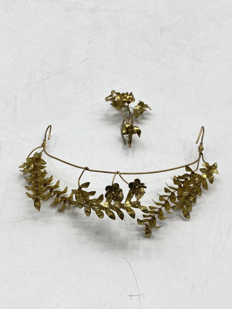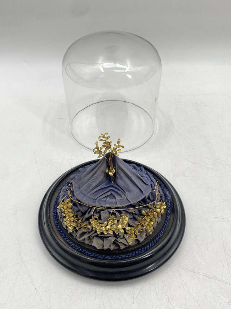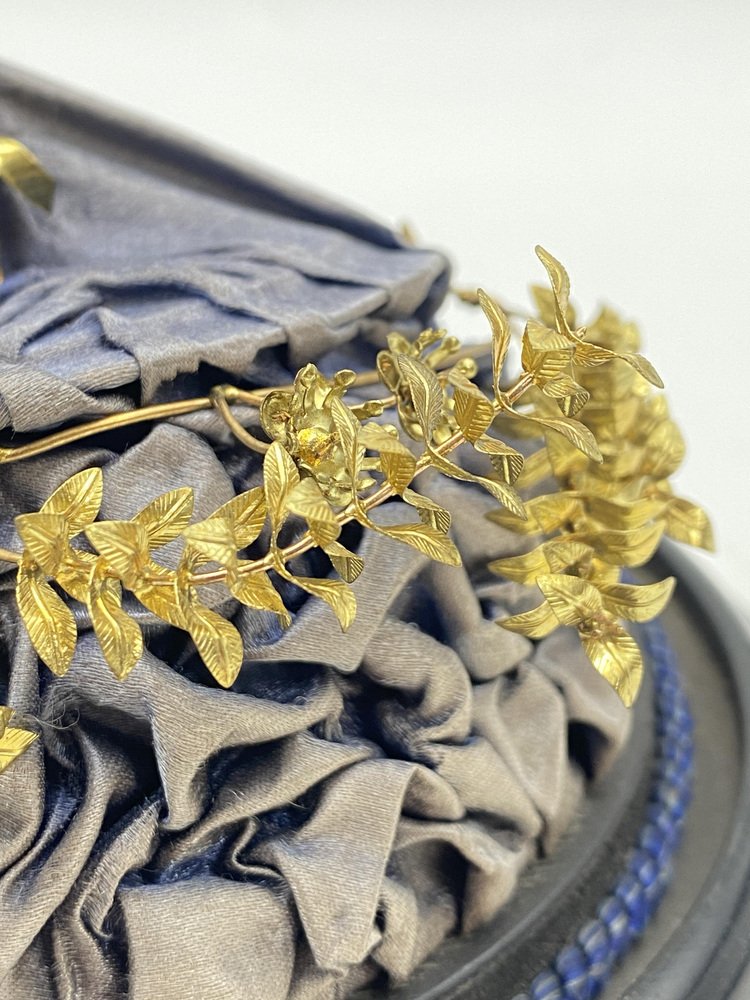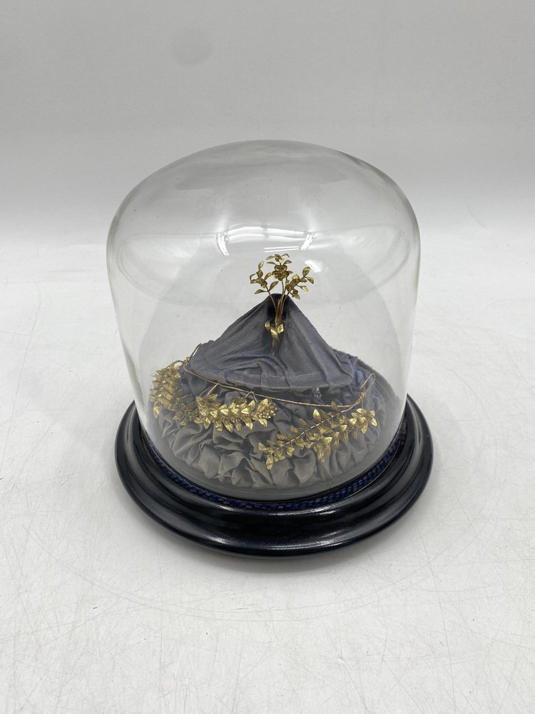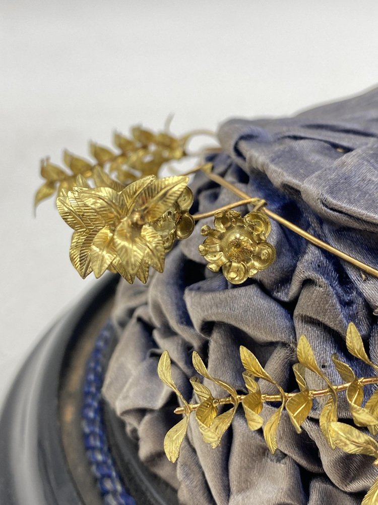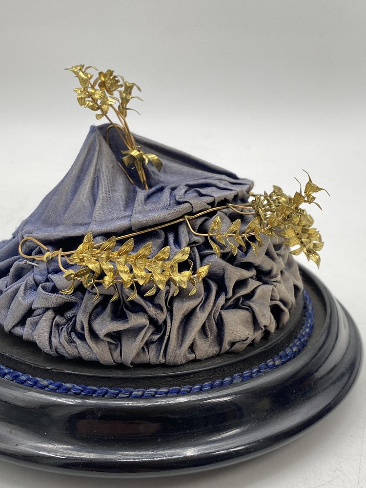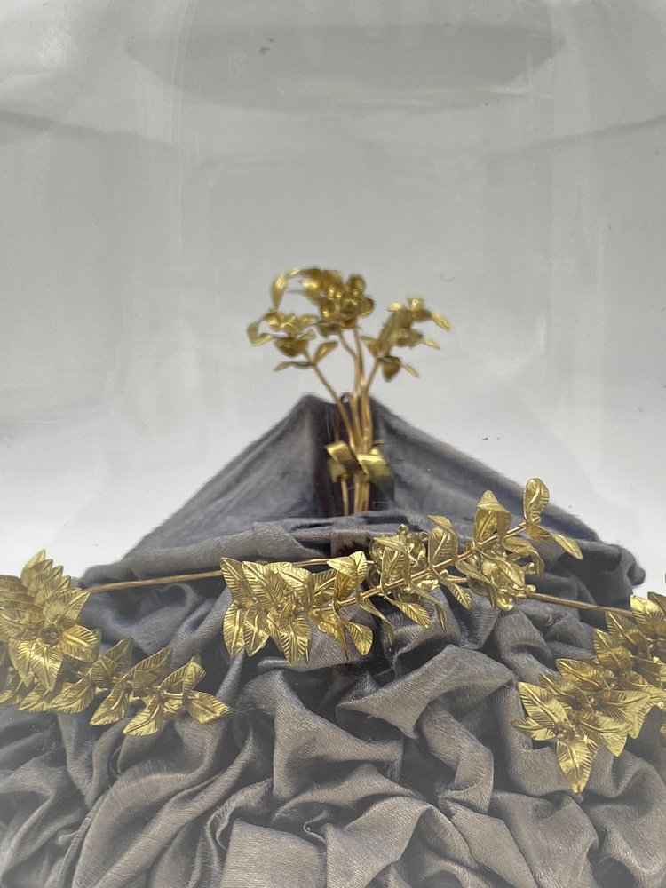 Antica corona nuziale in mirto con spilla in vetro soffiato a mano, Germania, inizio XX secolo, set di 2