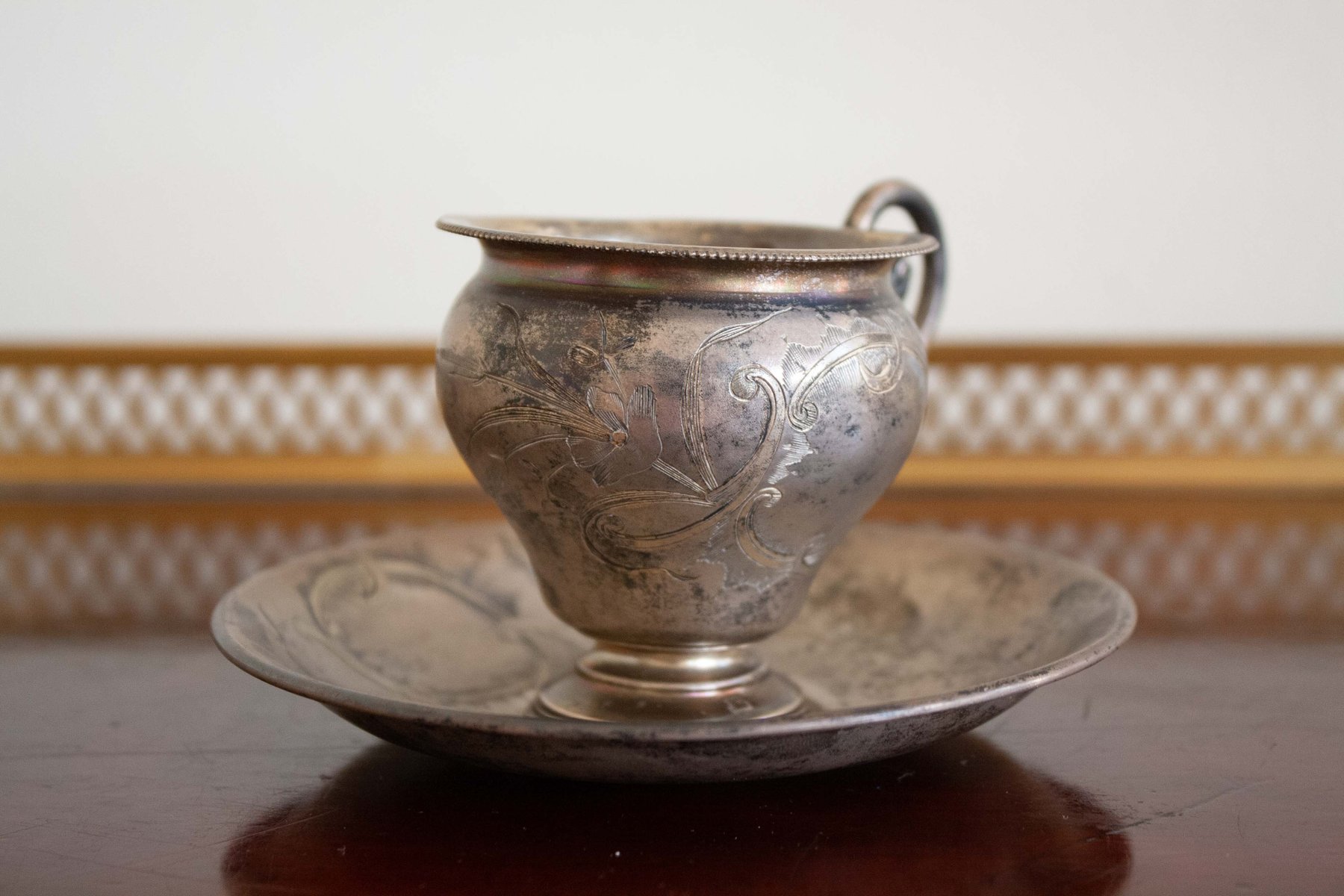 Tazza con piattino antichi in argento