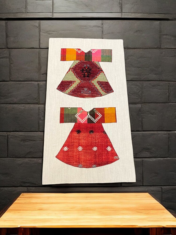Appendiabiti da parete doppio Kilim fatto a mano, anni '80