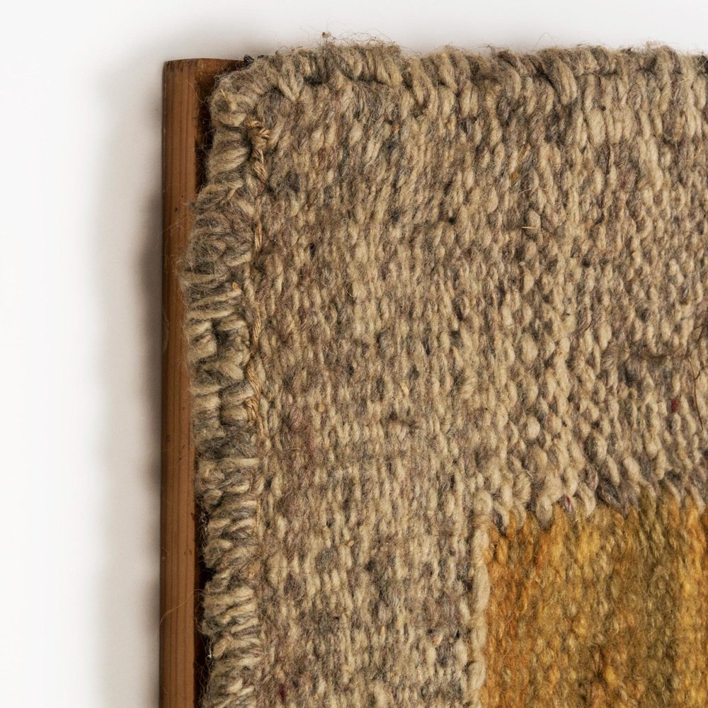 L'appendiabiti da parete è montato su una cornice di legno, in modo da essere appeso direttamente alla parete. È possibile appendere l'opera anche senza la cornice. Il pezzo è in buone condizioni vintage, i colori sono ancora molto brillanti e non si notano danni alla lana.