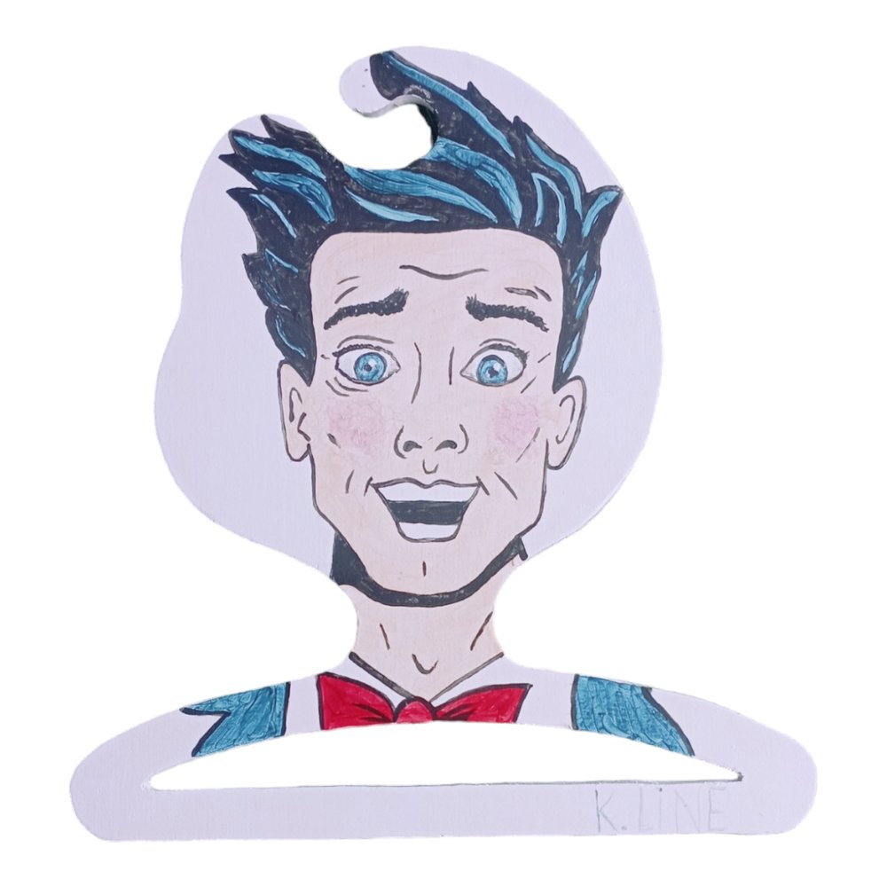 Add a unique and colorful touch to your collection with this vintage wooden hanger decorated with an illustration inspired by the pop art of the 50s and 60s. Its design shows the purest style of Roy Lichtenstein's illustrations and the aesthetics of mid-20th century American comics.