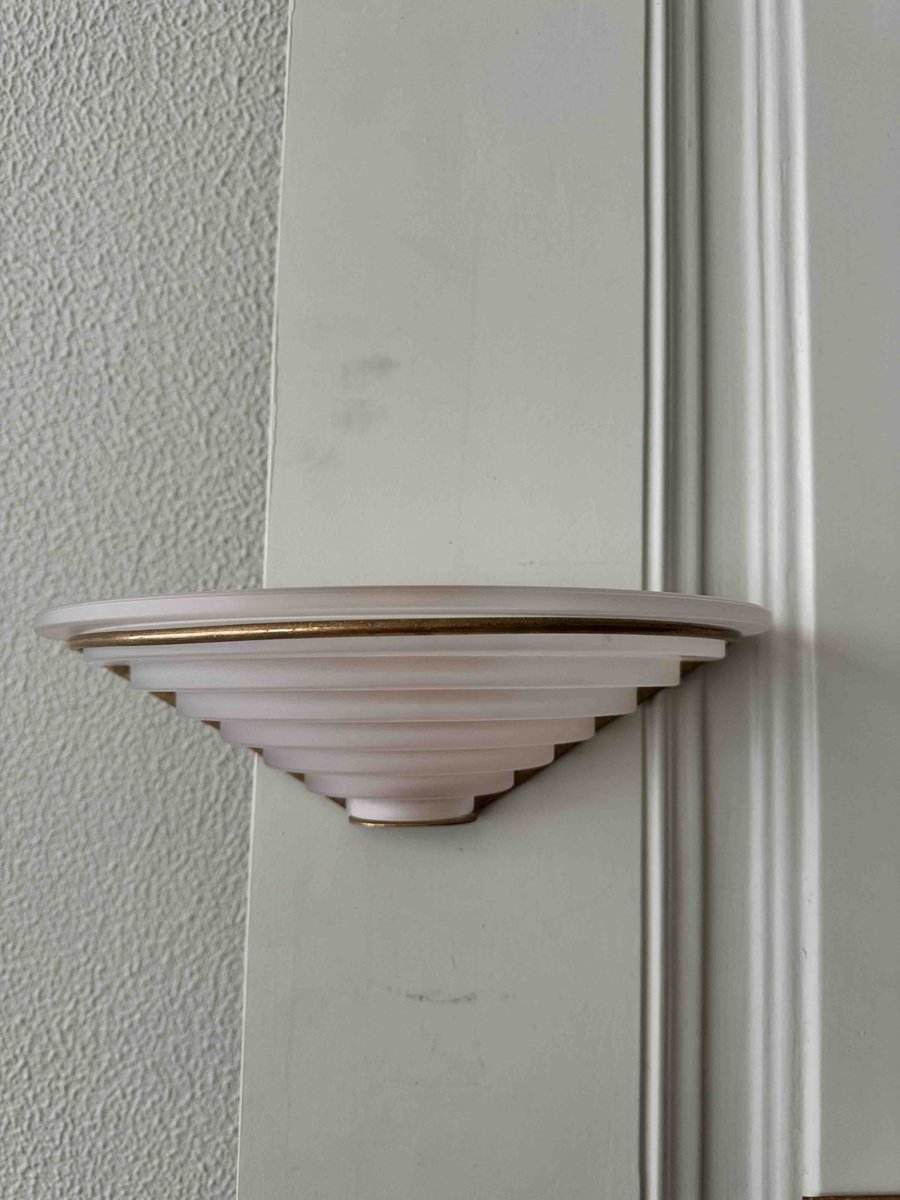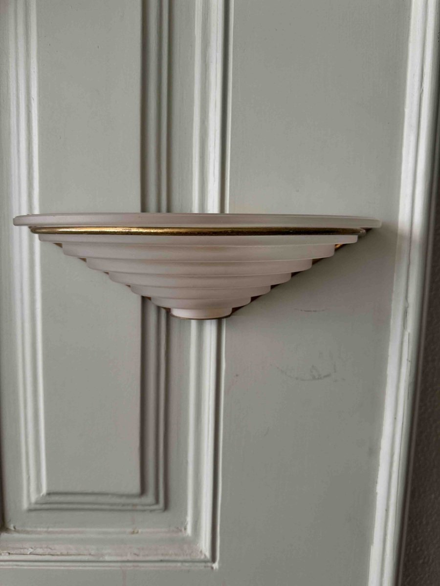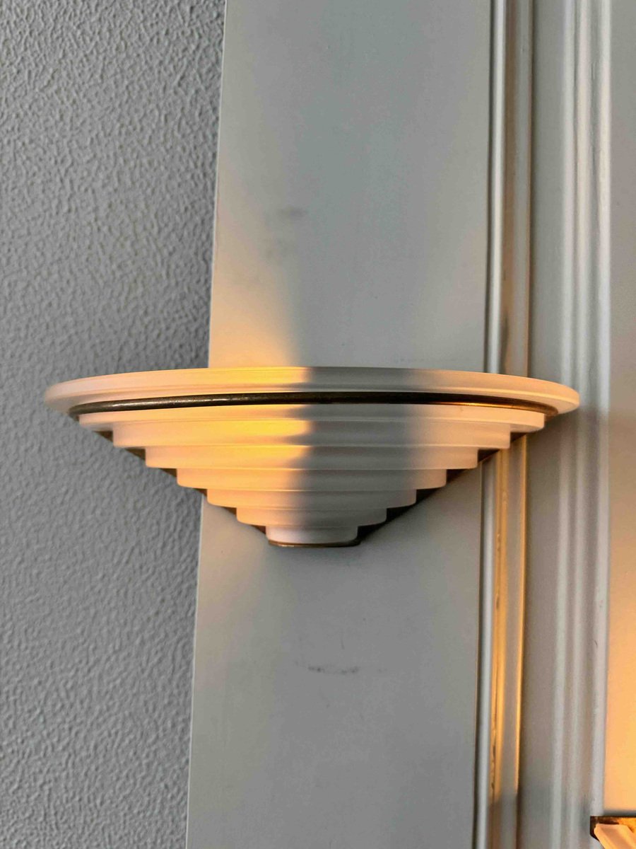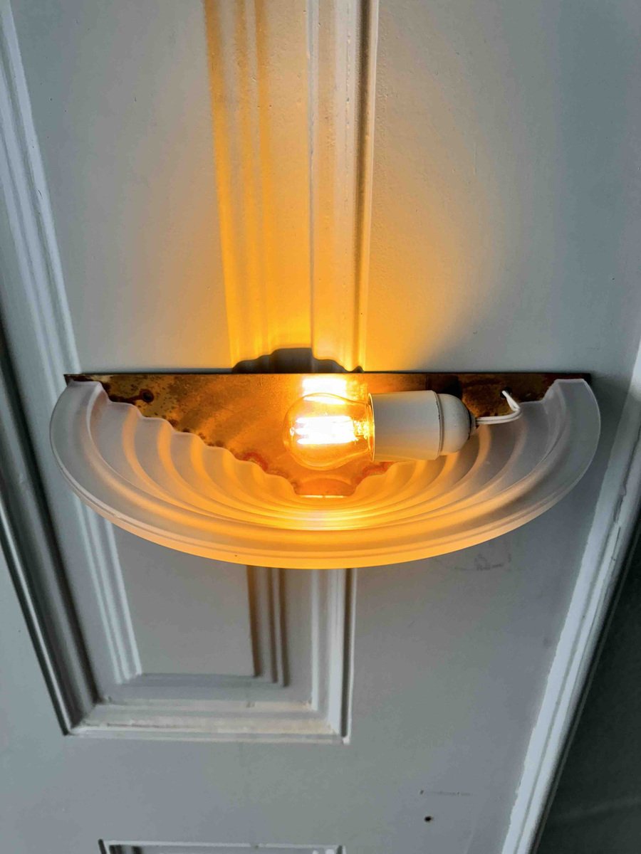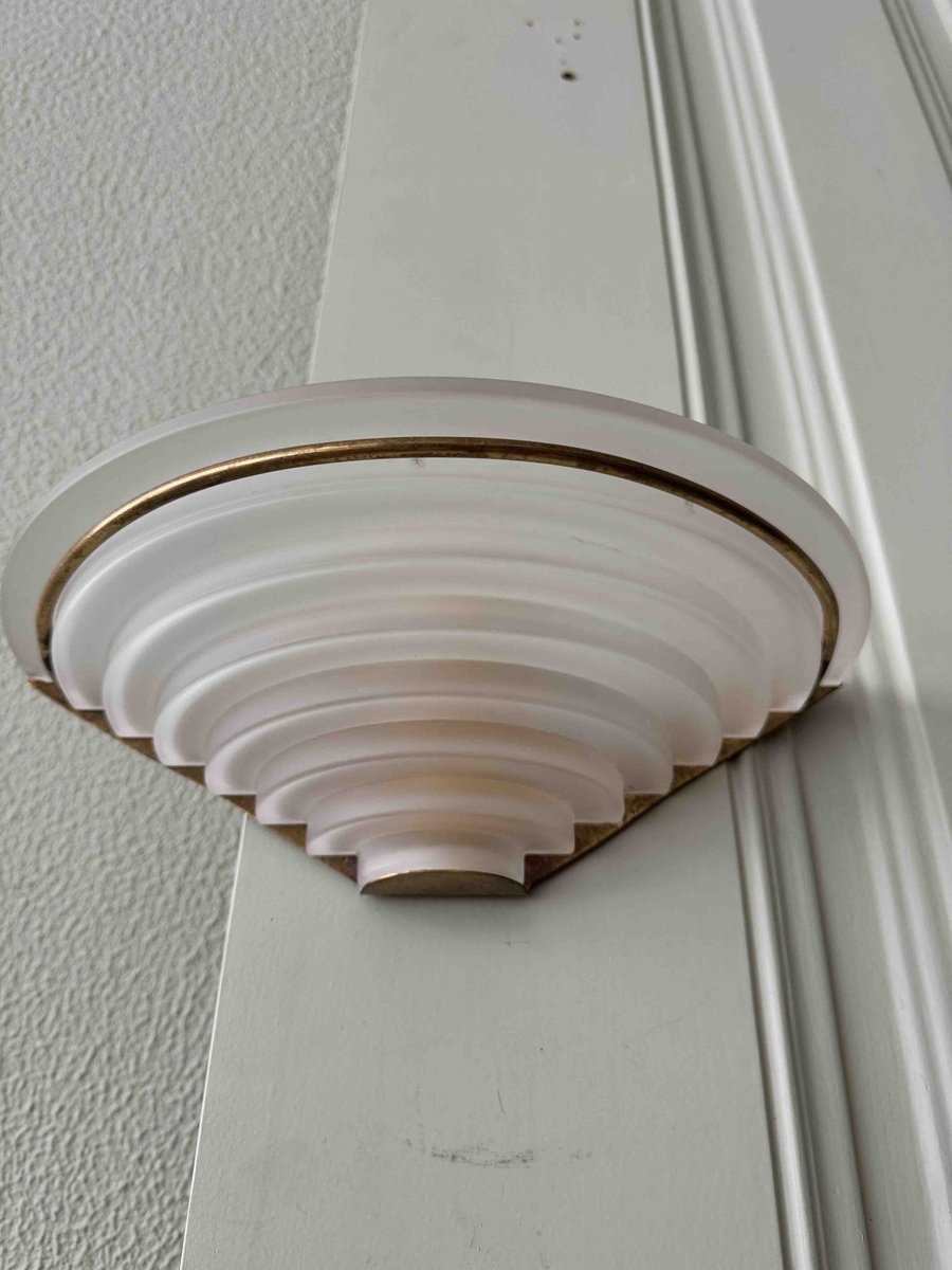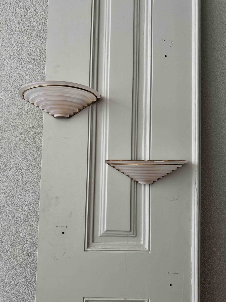 Nonostante la loro storia pluridecennale, queste applique sono state meticolosamente conservate e rimangono in eccellenti condizioni vintage, con solo una leggera usura che ne accresce il fascino autentico. Il loro design classico Art Déco le rende un'aggiunta perfetta a qualsiasi spazio, integrandosi perfettamente con interni tradizionali e contemporanei.
