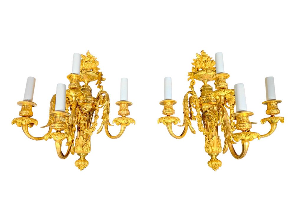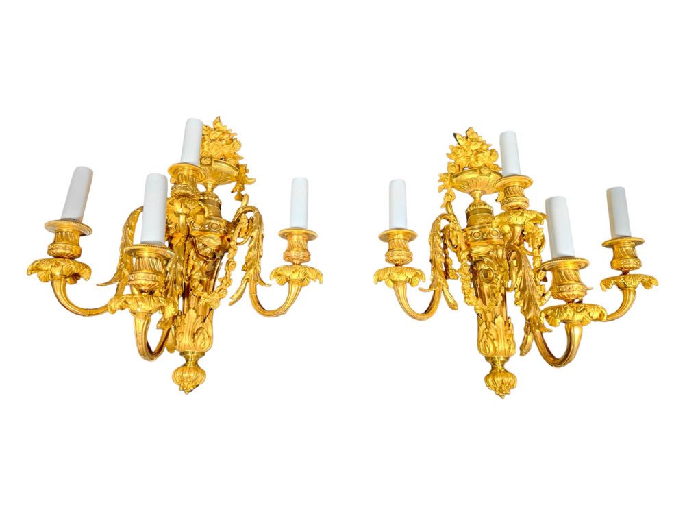 Applique Impero in bronzo dorato, metà XVIII secolo, set di 2