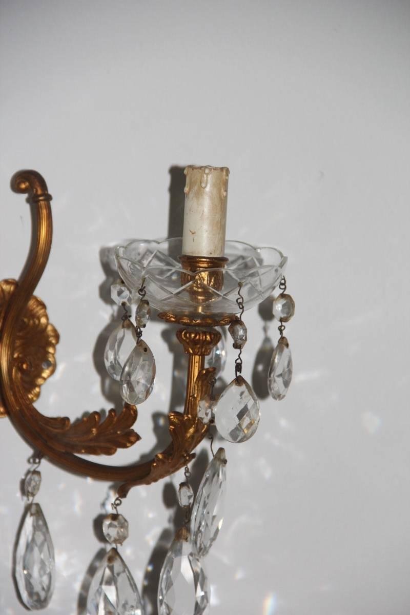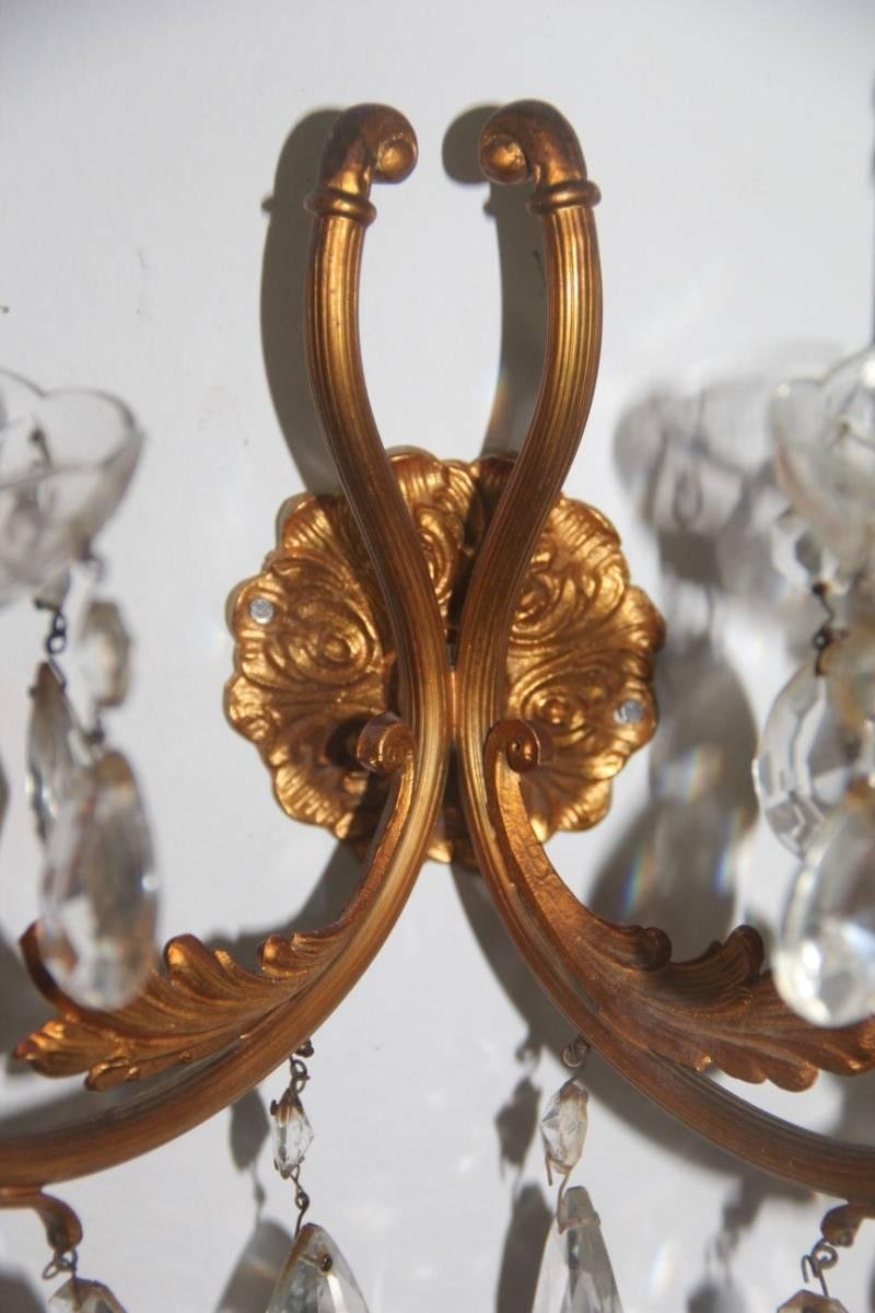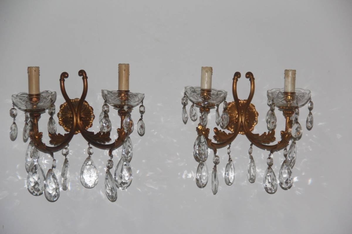 Applique Mid-Century in bronzo e cristallo, Italia, anni '50, set di 2