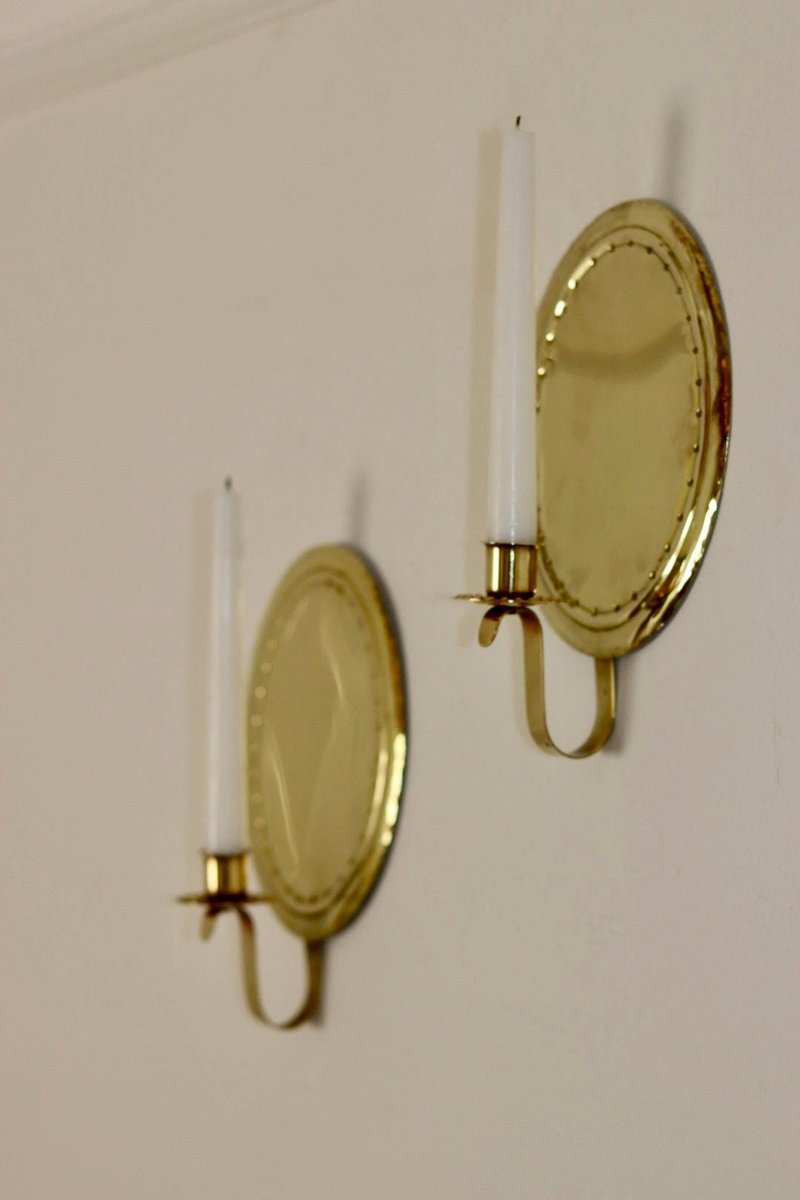 Applique Mid-Century moderne in ottone, Svezia, set di 2