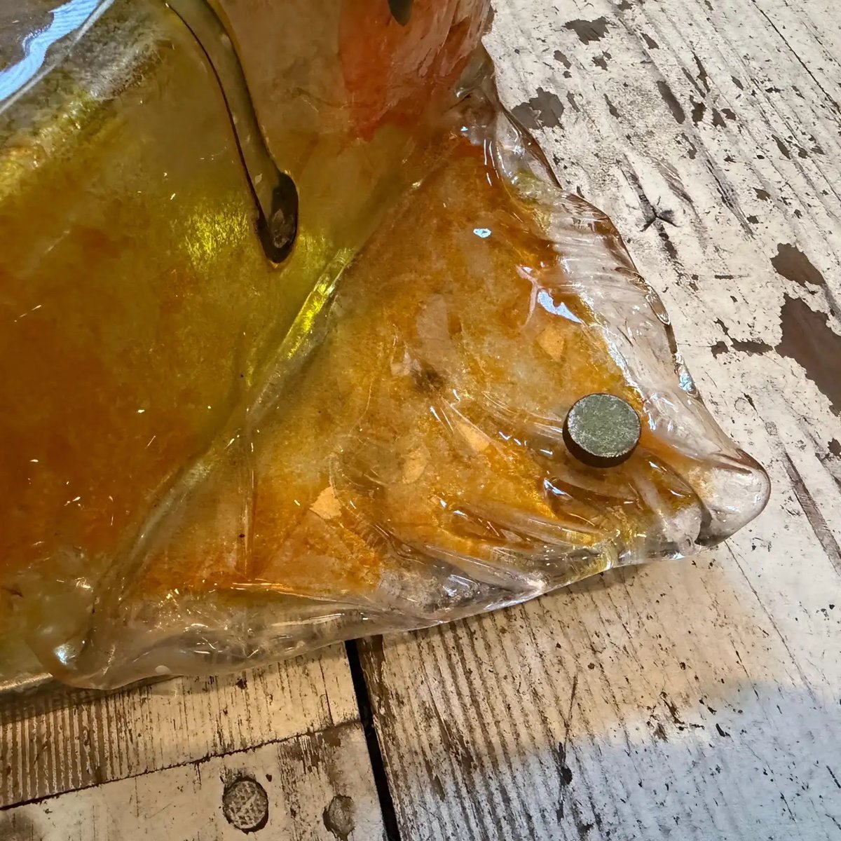 Questi raffinati e rari apparecchi di illuminazione italiani sono uno splendido esempio del design Space Age degli anni '70, attribuito alla rinomata vetreria Mazzega Murano. Si tratta di una coppia di applique quadrate o plafoniere, ciascuna realizzata in vetro di Murano spesso e riccamente strutturato. Lo strato di base presenta una brillante fumatura metallica dorata o ambrata che crea un effetto abbagliante, quasi vulcanico, quando illuminata. Sopra di essa è sovrapposto un diamante di vetro trasparente in rilievo, decorato in modo spettacolare con tracce di vetro nero applicate a mano che ricordano un'esplosione stellare, un ragno o un'esplosione astratta, una tecnica tipica dell'epoca. La pesantezza e la qualità scultorea del vetro, unite alla combinazione di colori audaci e al design di ispirazione atomica, rendono questi lampadari dei pezzi di grande impatto, perfetti per interni vintage o contemporanei che cercano un tocco di vero lusso italiano moderno di metà secolo. Sono progettati per essere montati a filo su una parete o sul soffitto. Sono in ottime condizioni vintage, coerenti con l'età e l'uso, e perfettamente funzionanti.