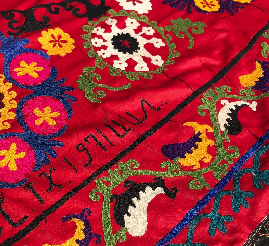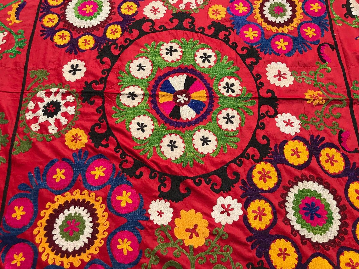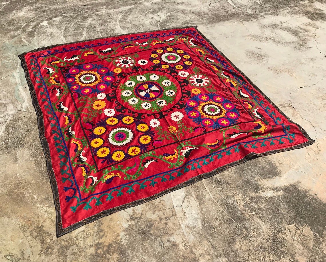 Arazzo vintage Squre Suzani fatto a mano, 1971