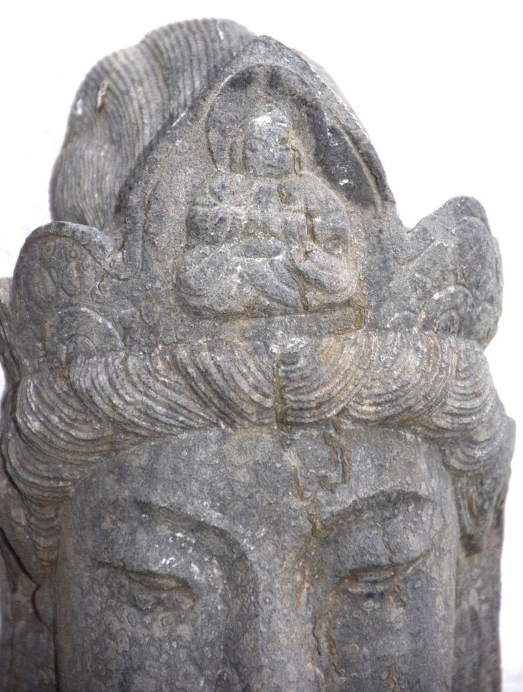 Bodhisttra Avalokiteshvara "colui che ci guarda dall'alto" con Amithaba Buddha nella sua crocchia. con la mano destra fa il gesto di donare e con la sinistra tiene il vaso dell'unzione per benedire. Condizioni e patina normali per questo Buddha molto antico, mancano le dita della mano sinistra, il resto è in buone condizioni generali per un oggetto antico precedente al XVIII secolo.
