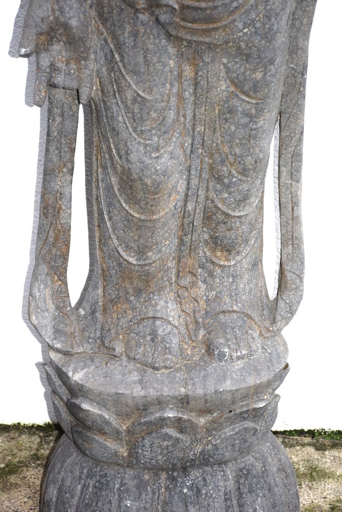 Grande statua in pietra vulcanica/basalto. Cambogia - tempio del popolo Khmer, segnalato da un reporter del National Geographic negli anni '60.