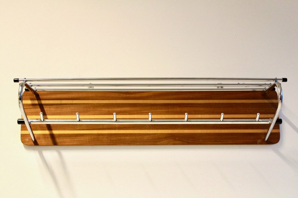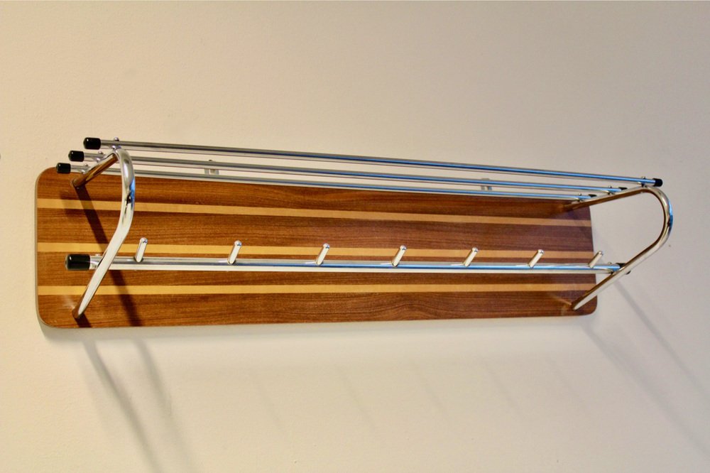 Attaccapanni Mid-Century in legno e metallo cromato, Paesi Bassi, anni '60