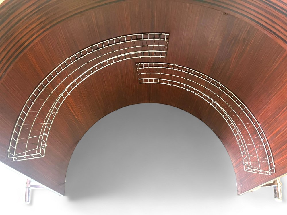 L'insieme è molto decorativo ed elegante, tipico dell'Art Déco. Questo bancone si adatta bene sia a un ufficio, sia a un soggiorno, sia a una sala da bar. Francia - 1950 circa