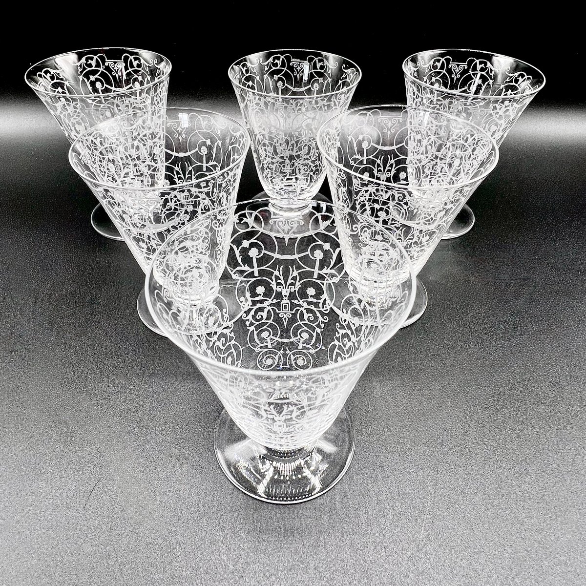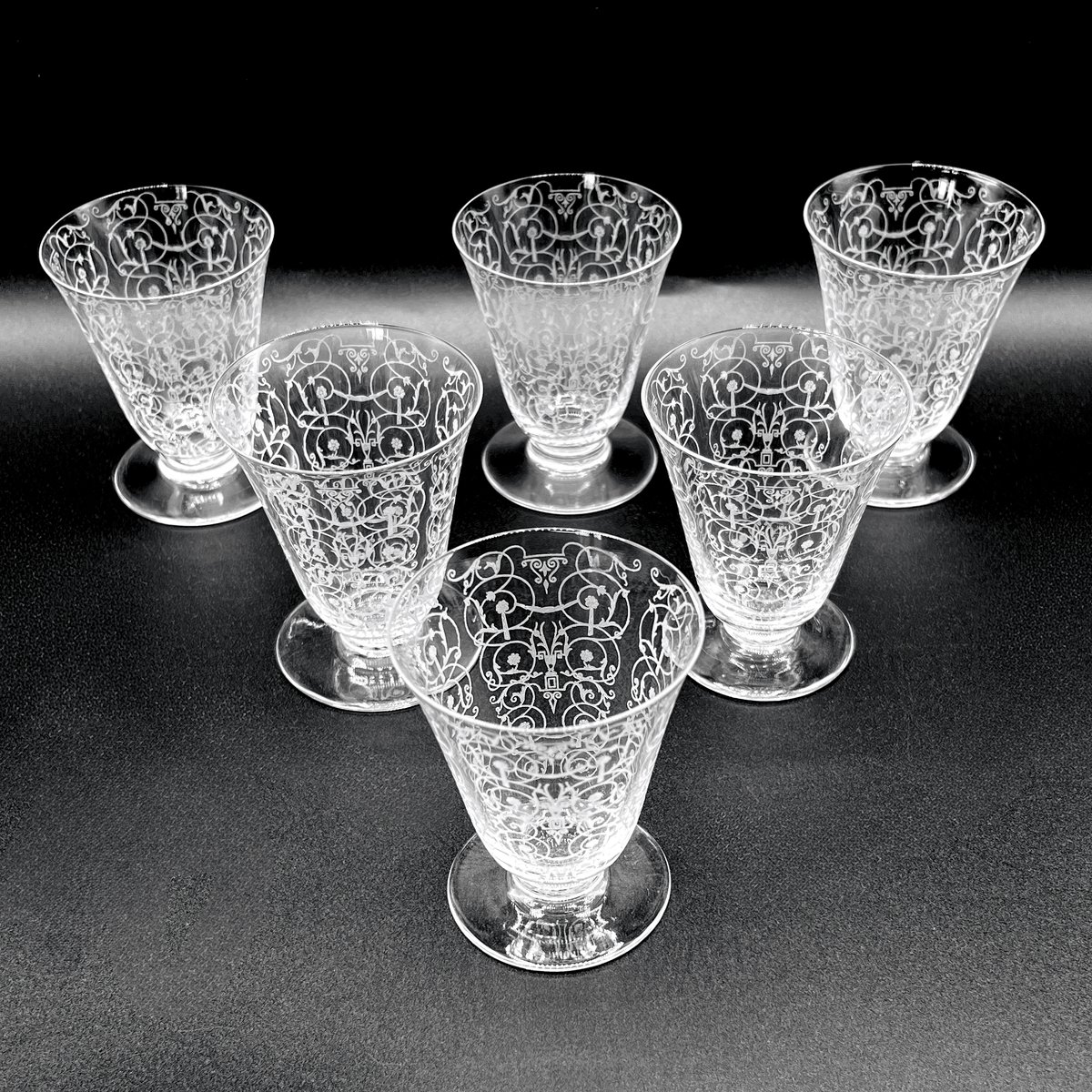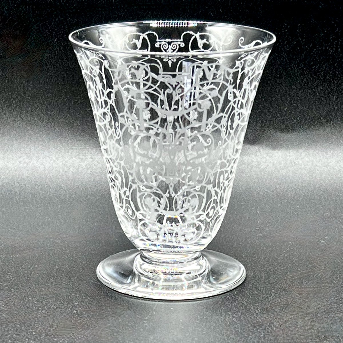 During the 1920s and 1930s, Baccarat modernized its look with pieces like the Paraison Collection, commissioned in 1933 for the Maharajah of Indore’s Manik Bagh Art Deco palace, and monogrammed glasses from the François Villon Collection, commissioned in 1936 by President Franklin D. Roosevelt.