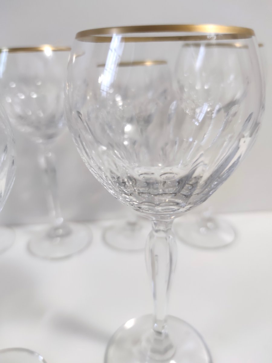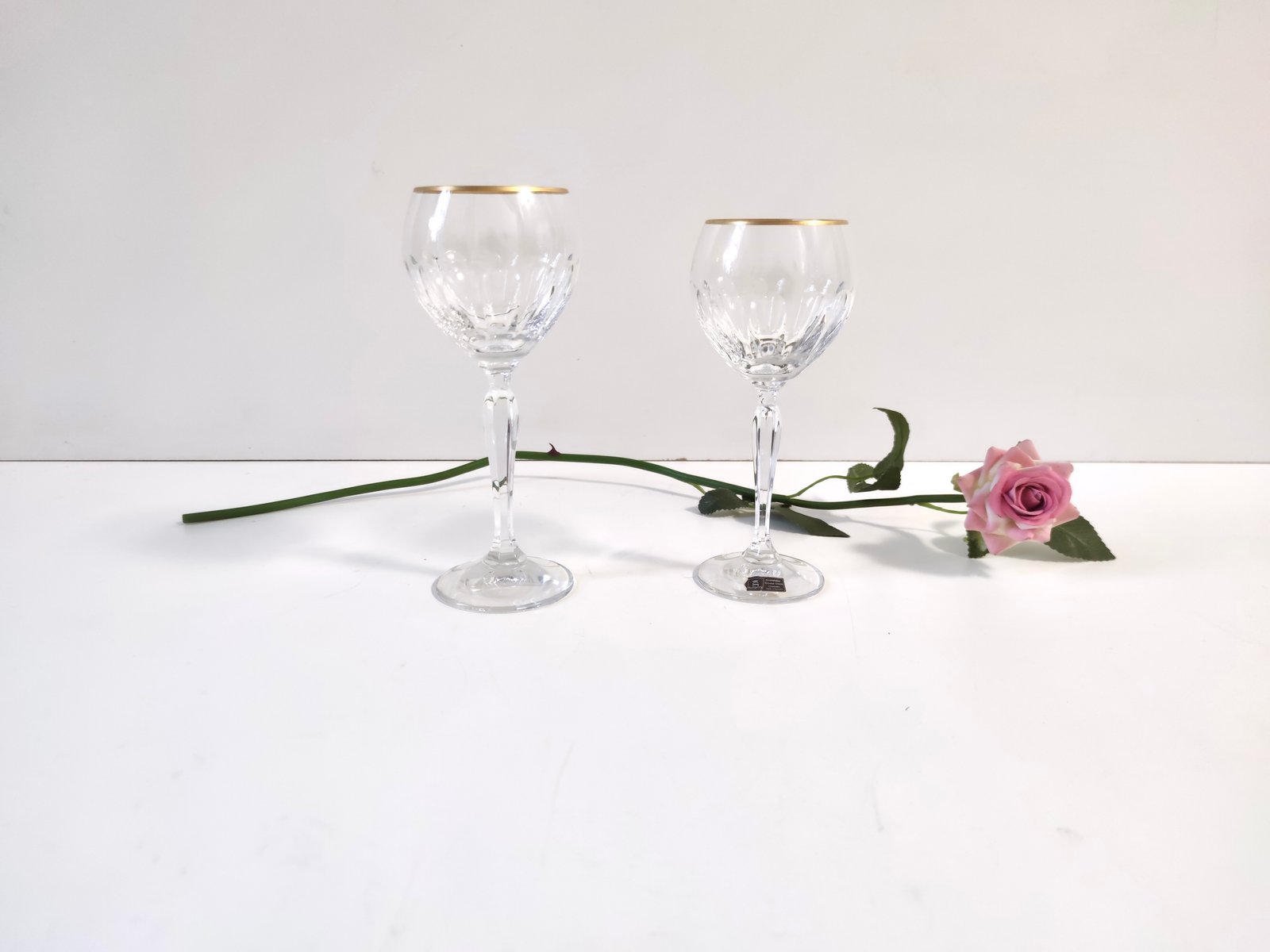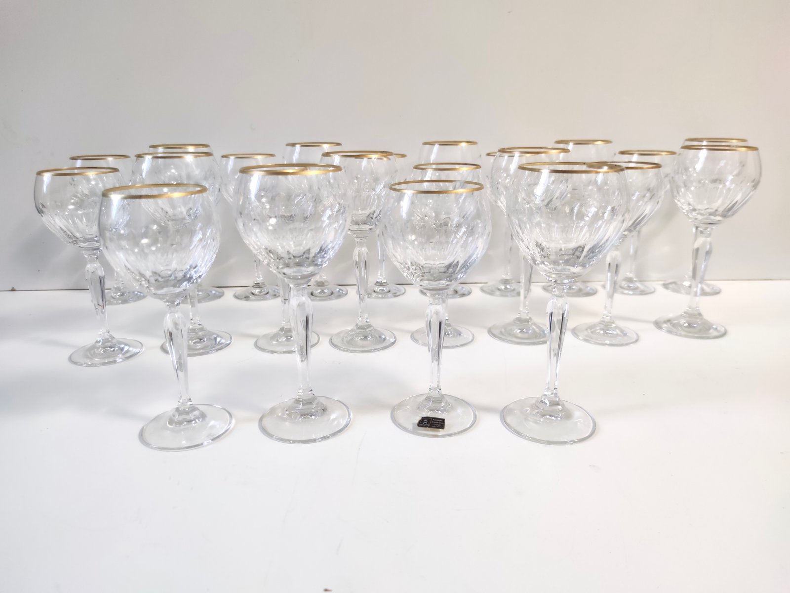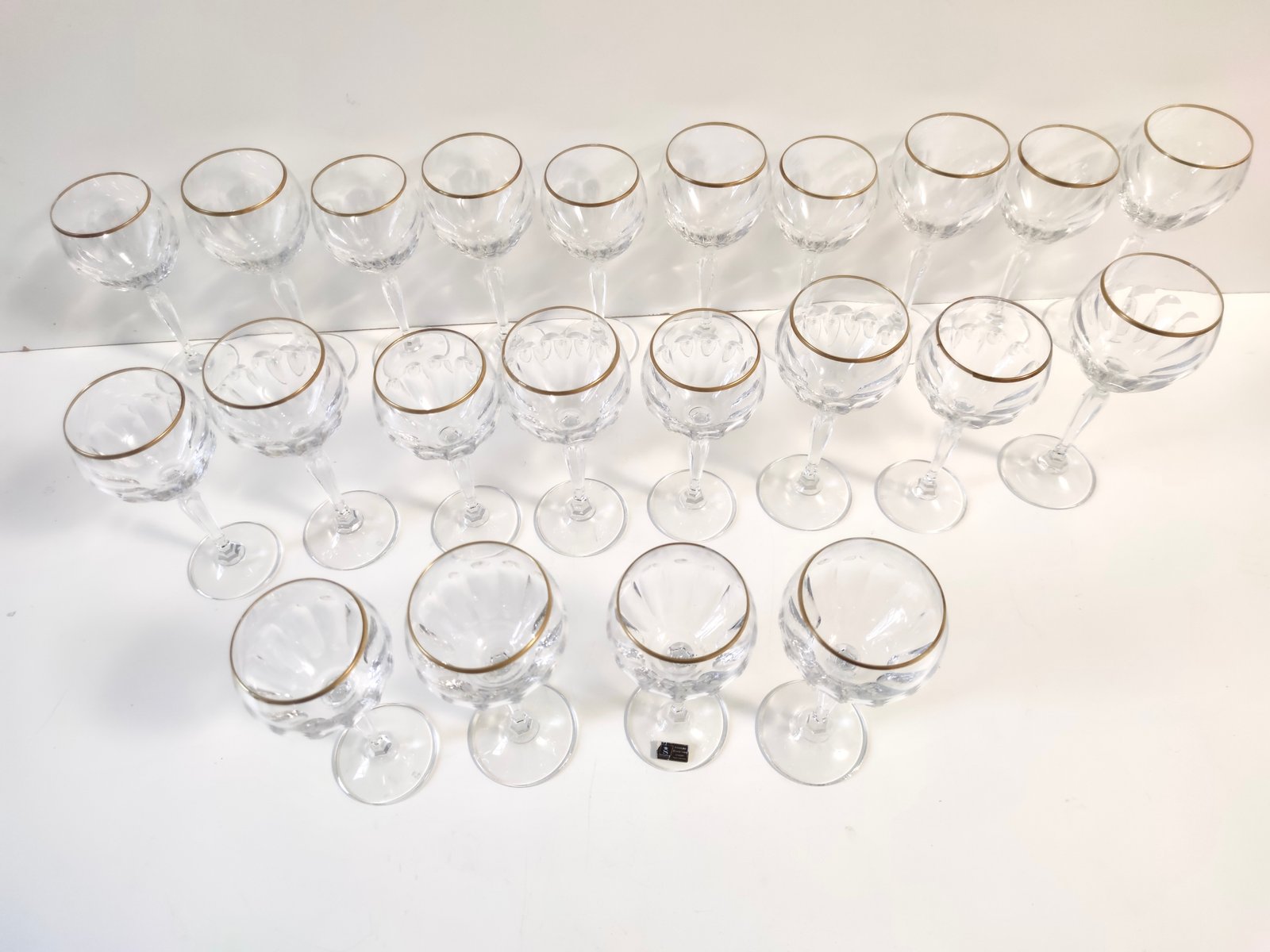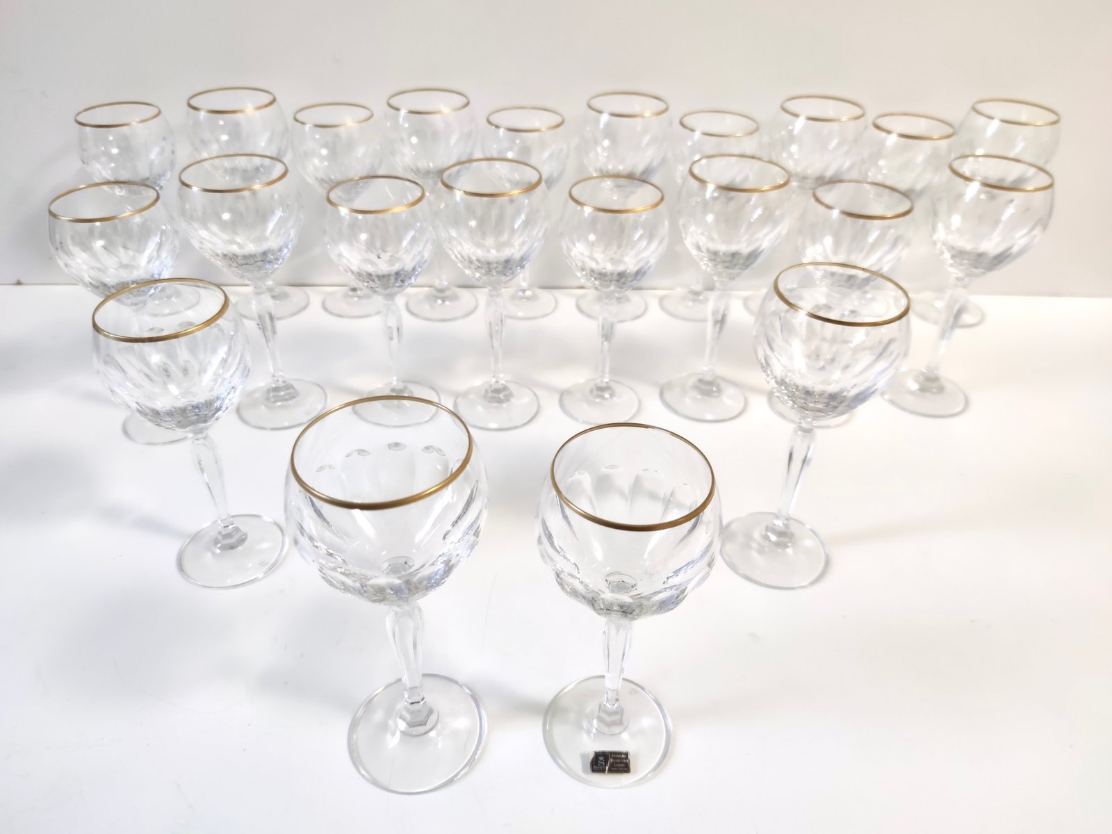 This set of twenty-two glasses is made in fine crystal and features a golden rim.