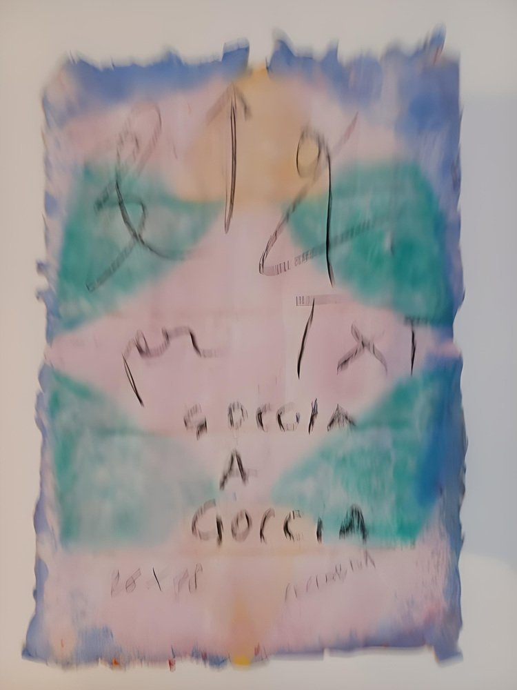 Opera venduta in perfette condizioni Sul retro firma, dedica, titolo, misure, conservata nella cartella protettiva senza cornice, intatta e in perfette condizioni. Medium Pittura: tecnica mista Dimensioni cm - pollici 26 x 18 x 0,1 cm 10,2 x 7,1 x 0 pollici Supporto Pittura su carta Inquadratura Non incorniciata Tipo Opera unica Autenticità Opera venduta con fattura della galleria e certificato di autenticità Firma Firmata a mano dall'artista. Colori Colori Nero Blu cielo