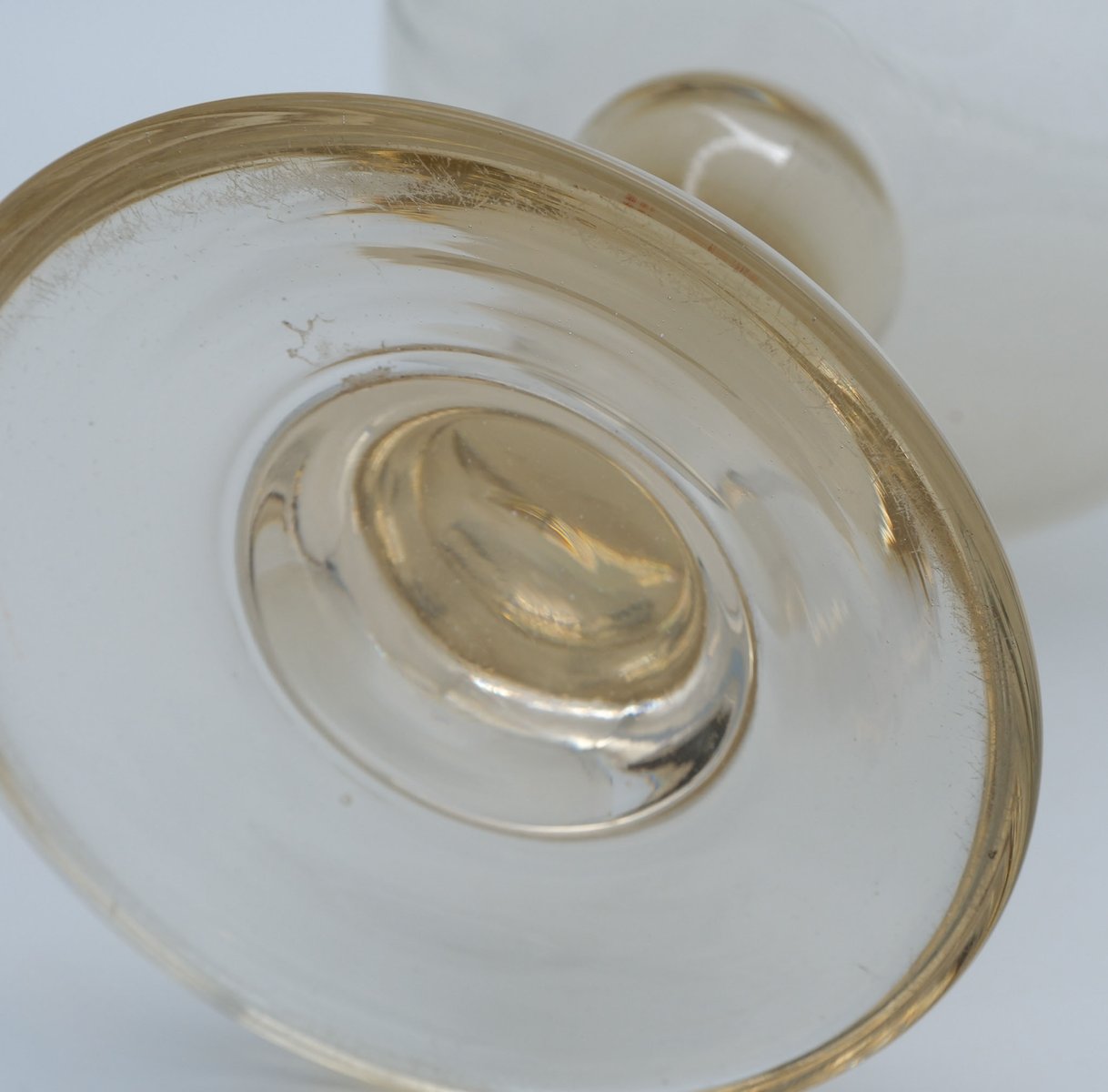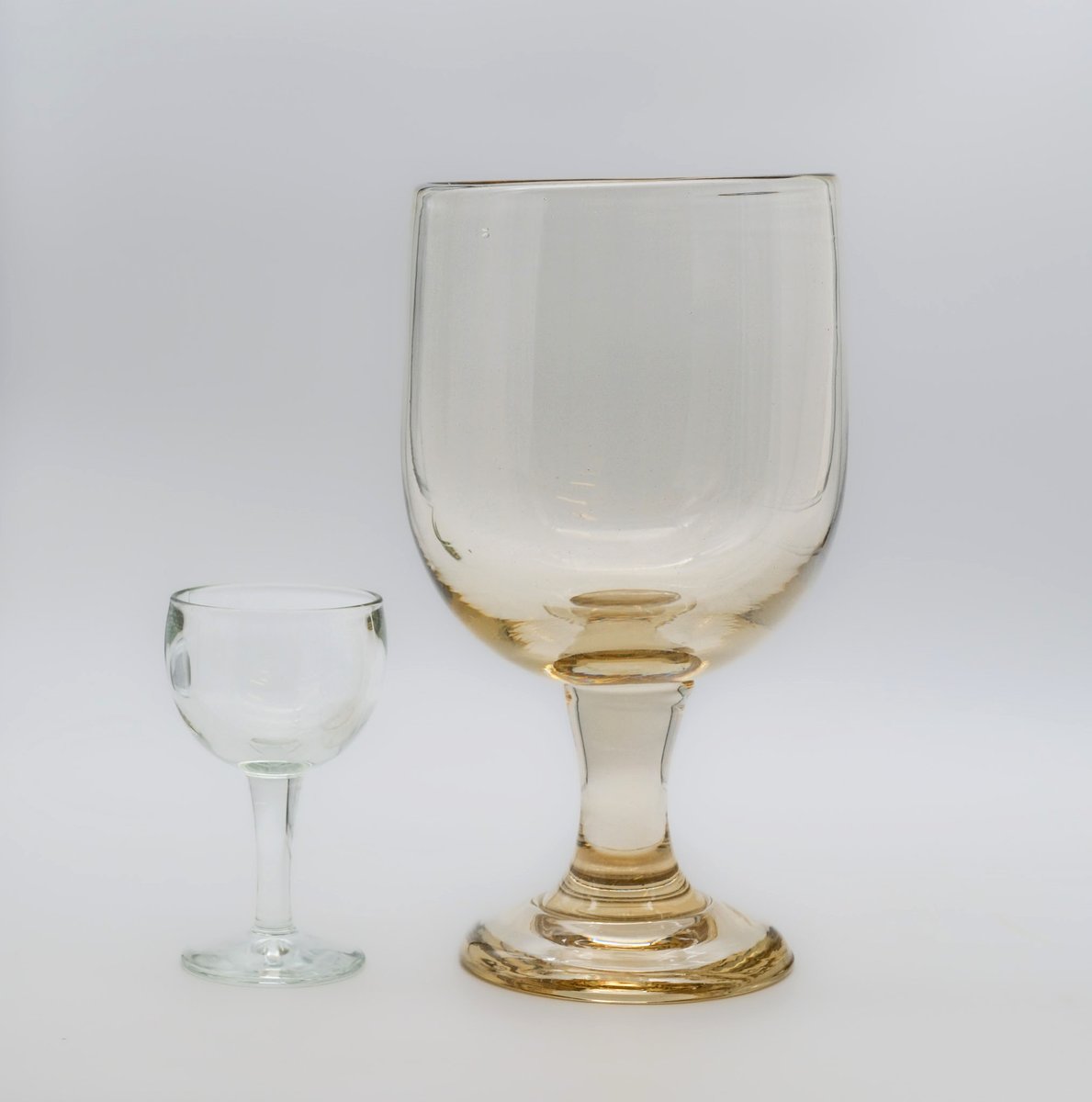 Calice da negozio grande, XIX secolo, soffiato con riflessi ambrati