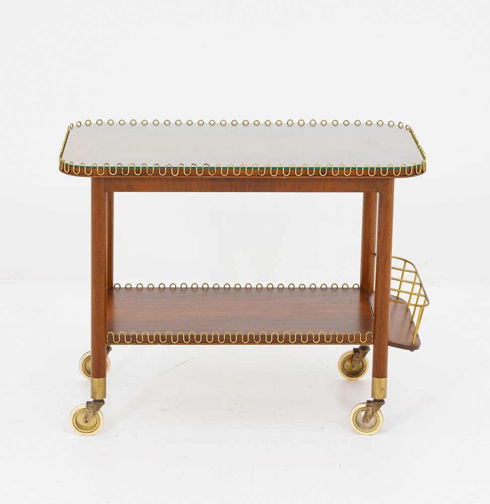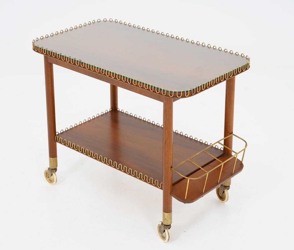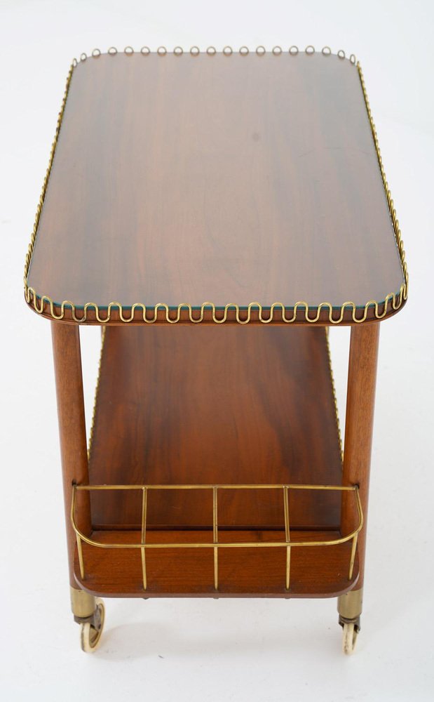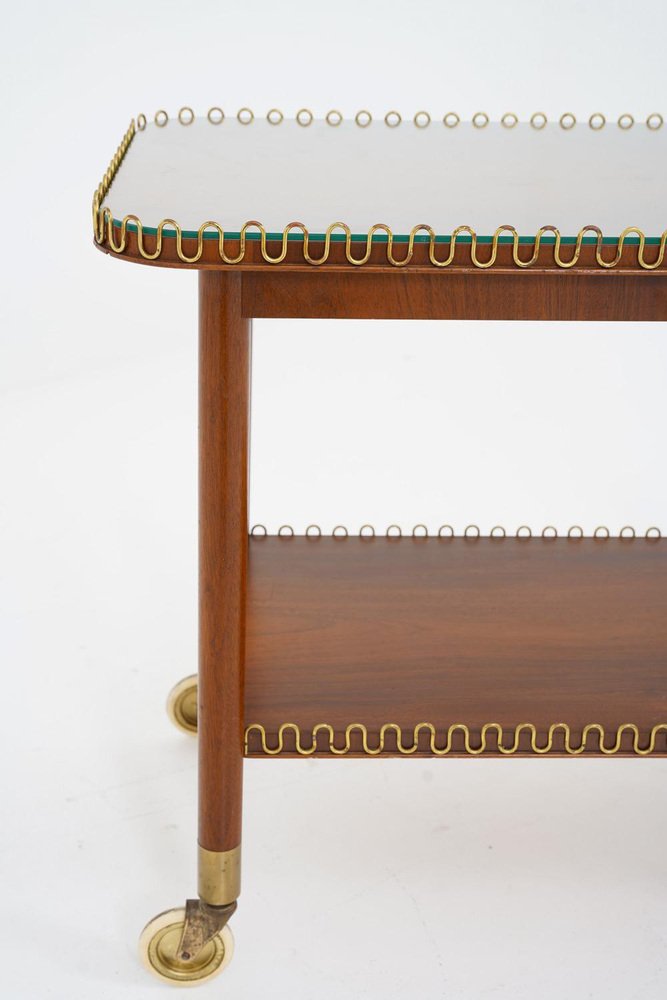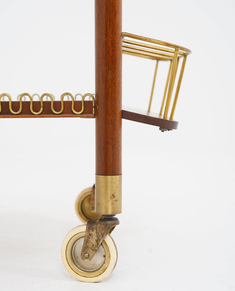 Carrello bar moderno in mogano e ottone, Svezia, anni '50