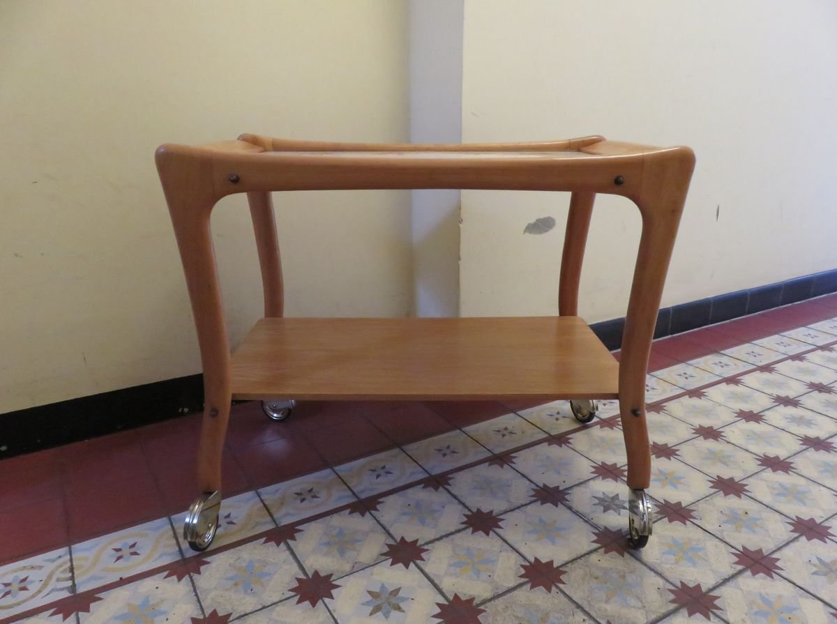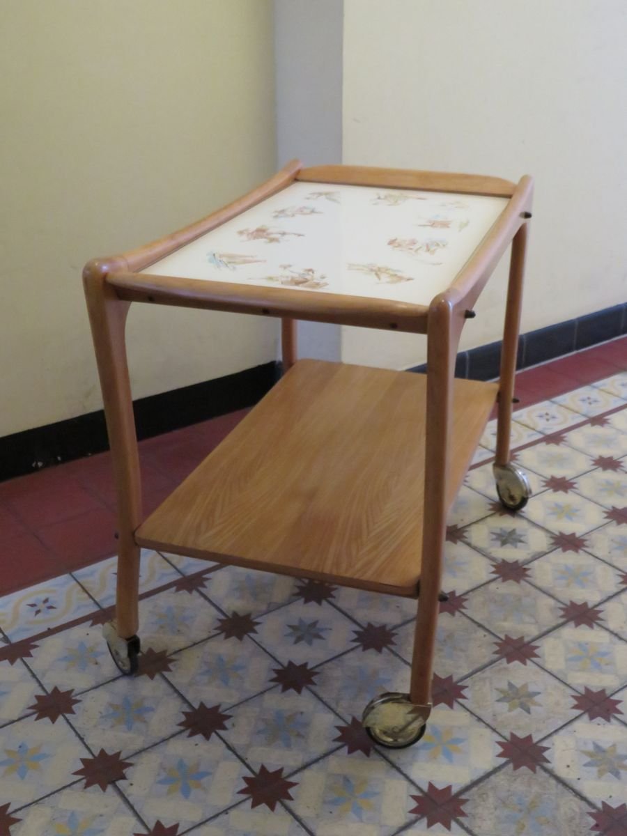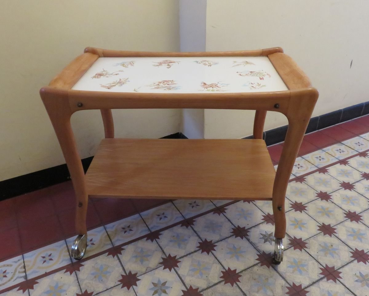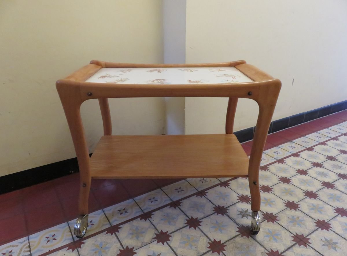 Carrello in legno e ceramica, anni '50