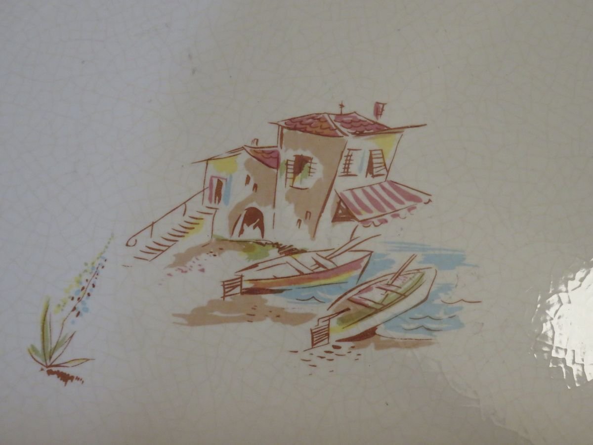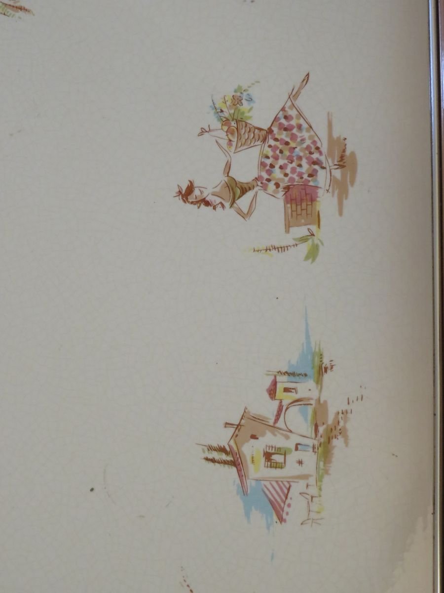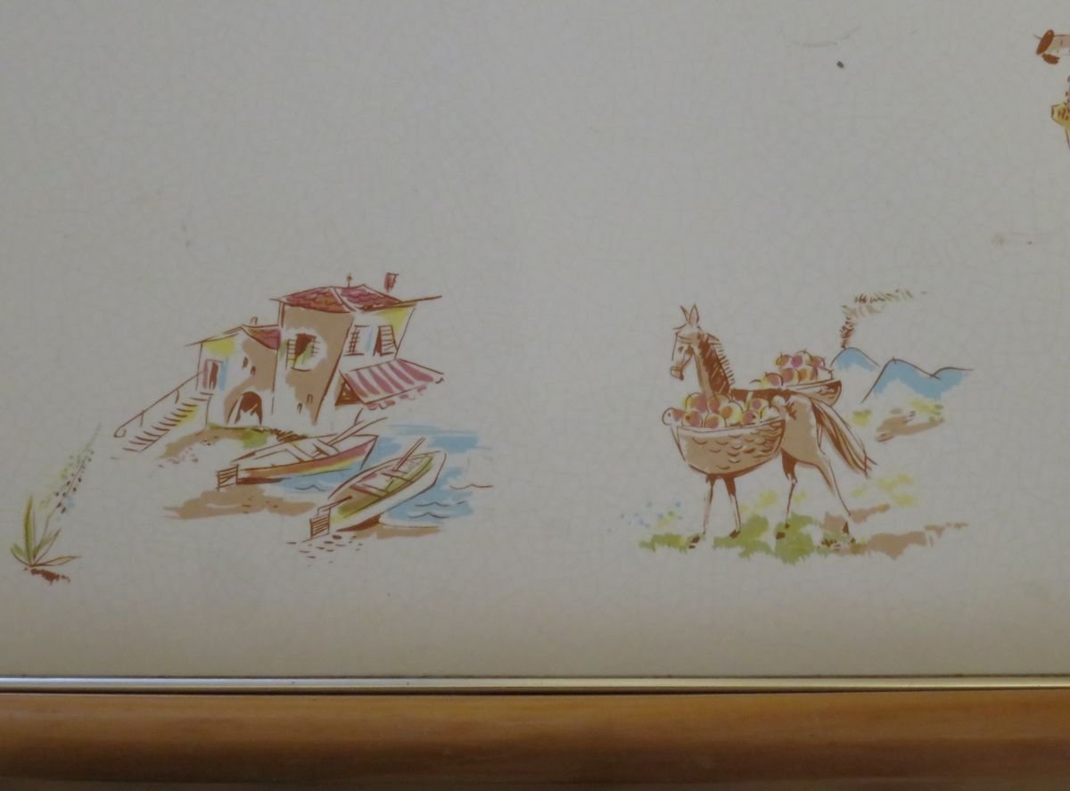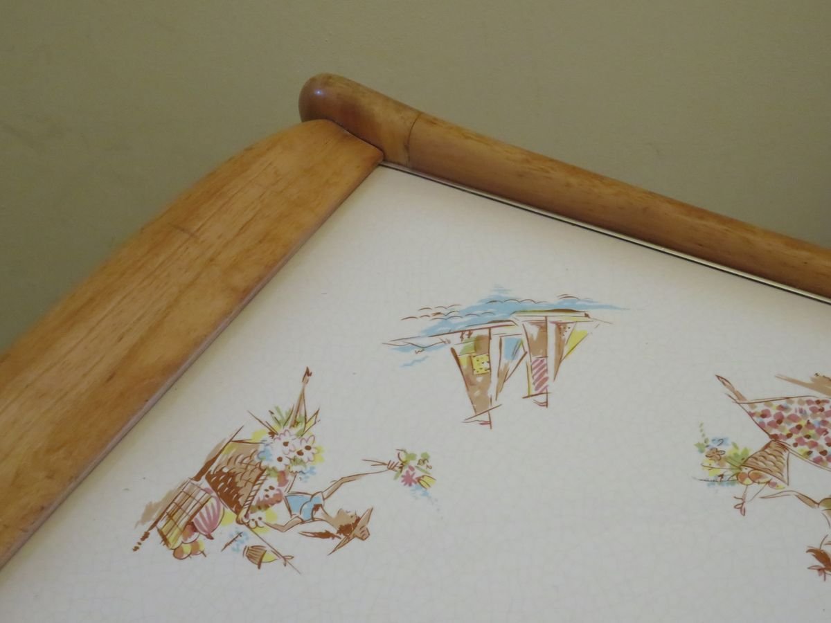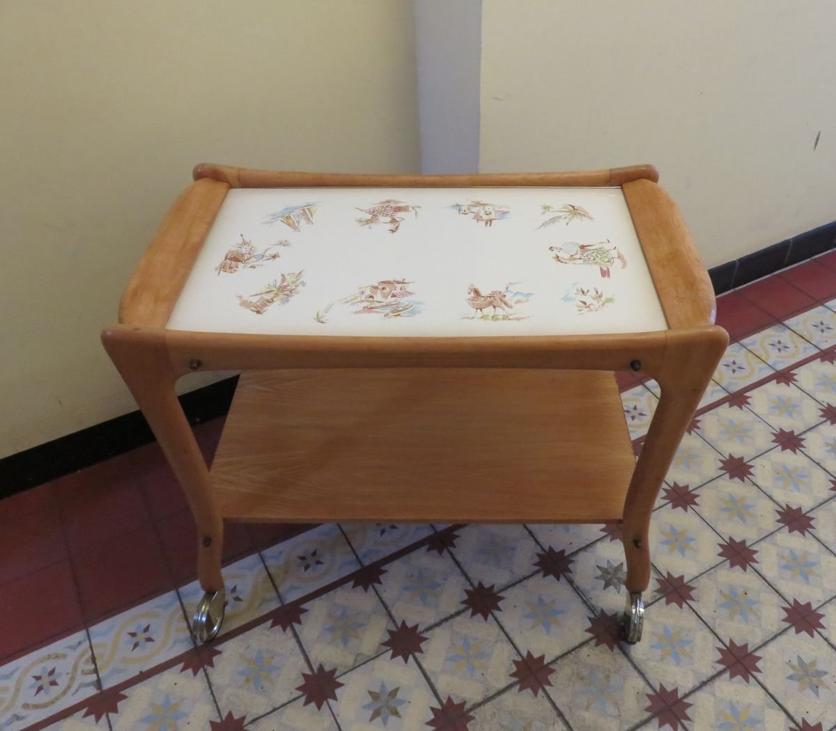 Carrello in legno e ceramica, anni '50