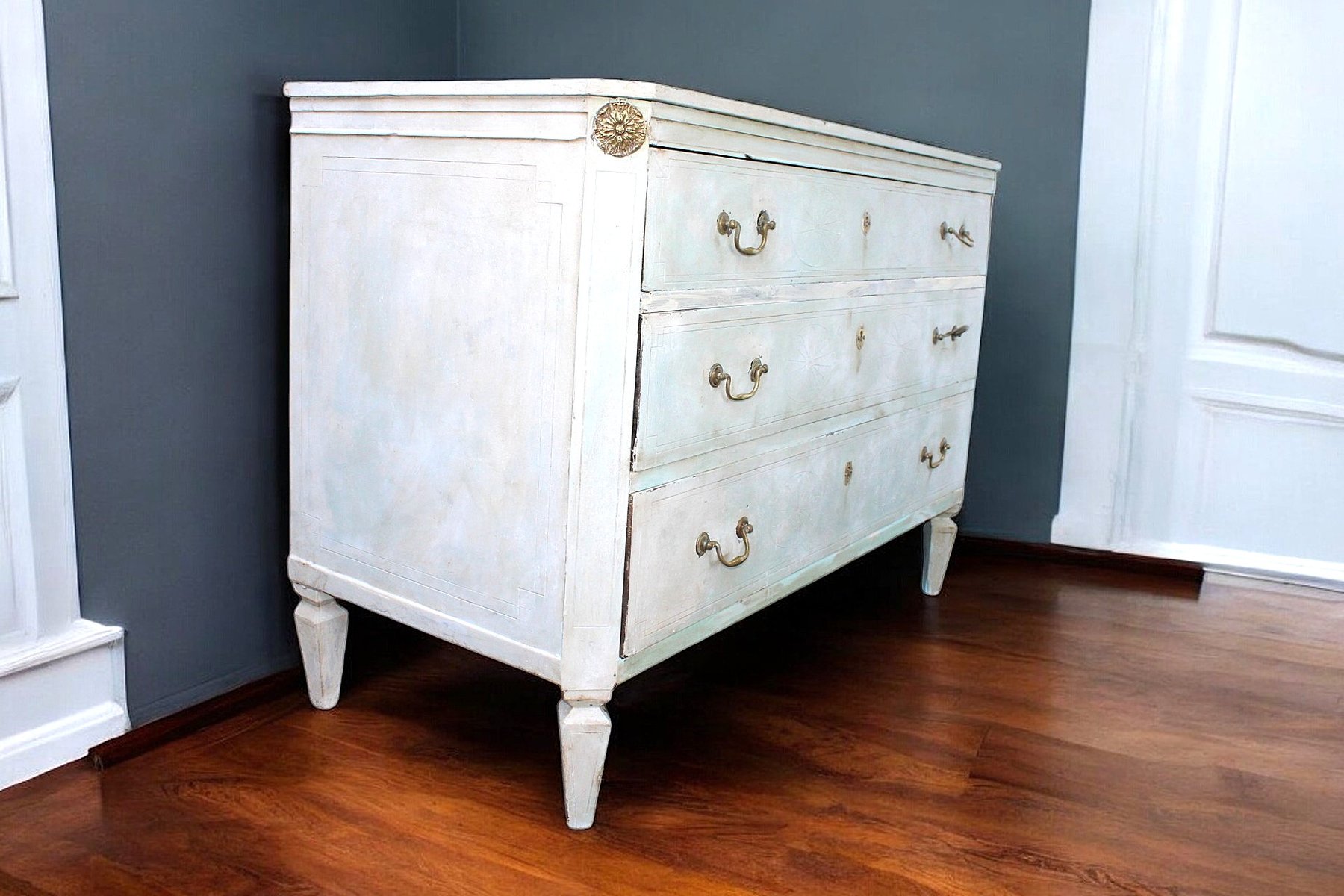 Cassettiera antica gustaviana dipinta, 1770