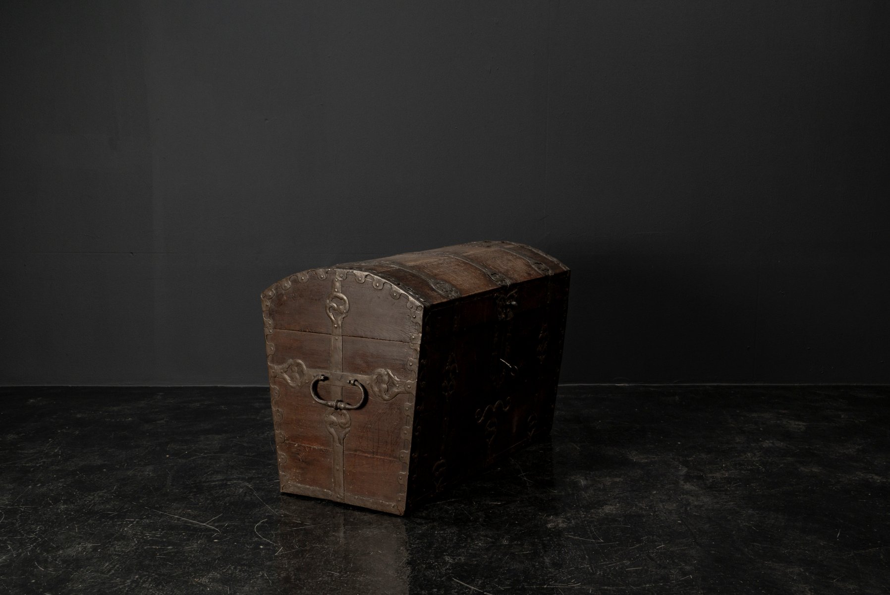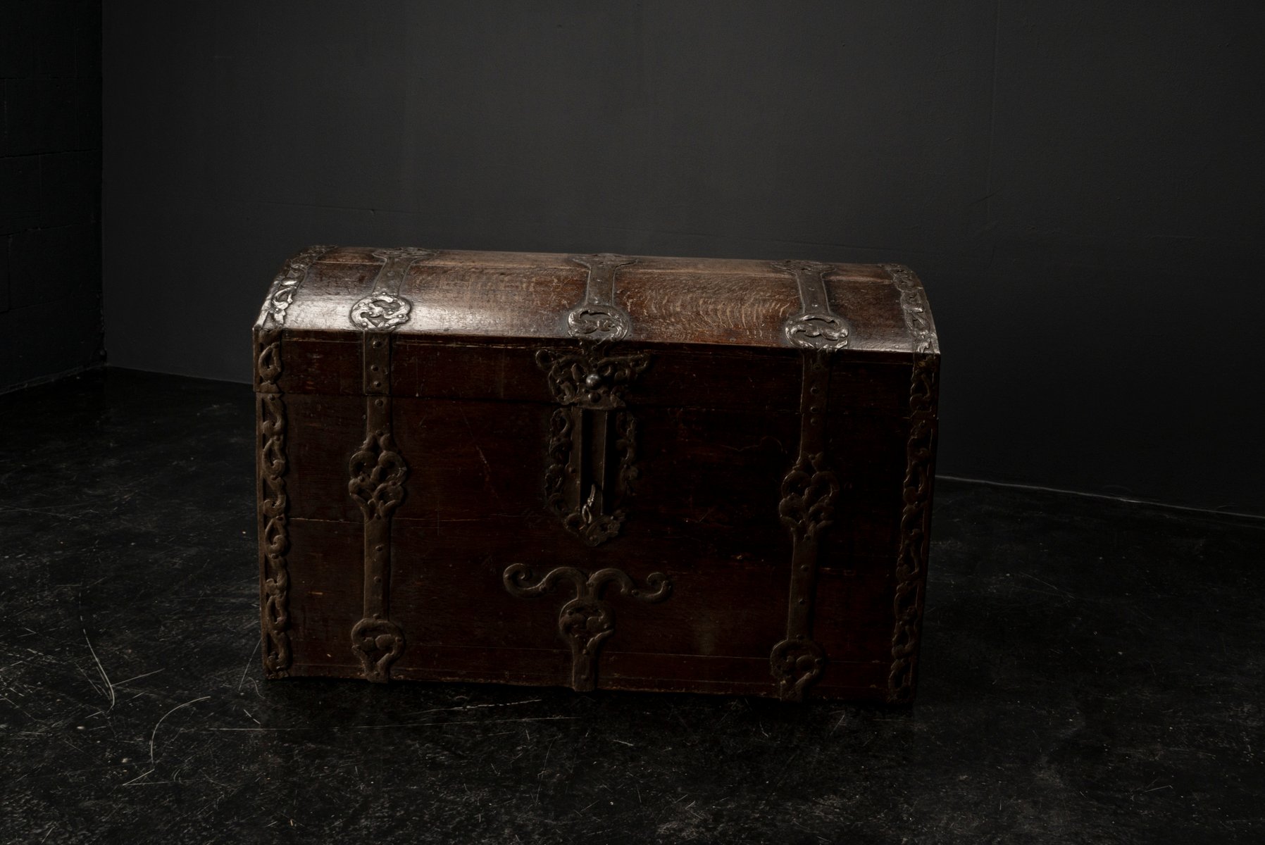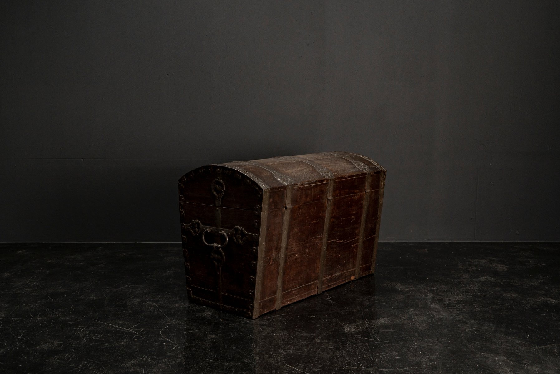 The design language is clear and powerful, with the oak wood itself telling a story of age and purpose. This chest is far more than a storage item – it is an authentic object from a bygone era, captivating both collectors and those who appreciate unique interiors. A true one-off piece for any setting that values character, substance, and historical depth – a genuine collector’s item and a statement for interiors that prefer authenticity over perfection.