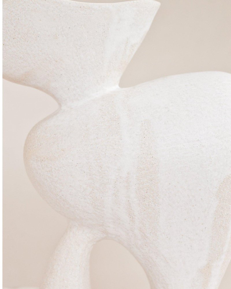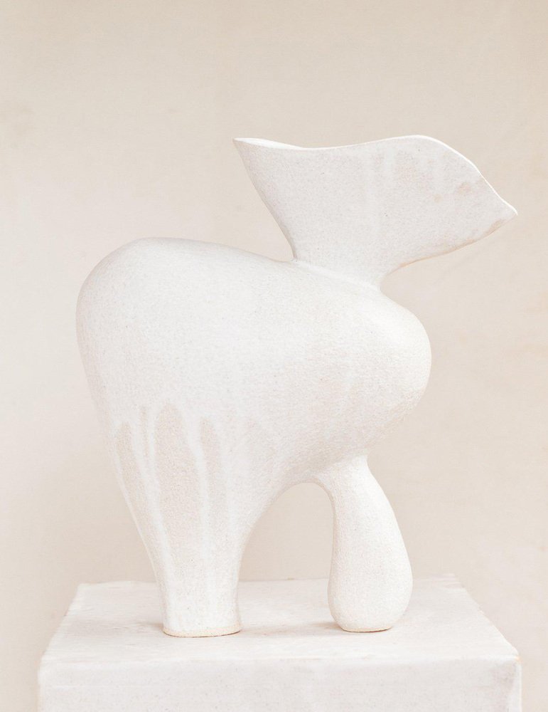 "La mia interpretazione dell'antico Dogu*. Un talismano per le donne. Per la donna che desidera un figlio ma teme il rischio per la sua carriera. Per la donna che affronta la sfida dell'infertilità. Per la donna che tira il latte ogni 3 ore per congelarlo per la tata. Per la donna che si fa avanti per gestire la riunione senza dormire decentemente per mesi. Per la donna che dubita della sua capacità di essere mamma. Per la donna che guadagna più del suo partner e si preoccupa di come andrà la casa quando arriverà il neonato. Per la donna che ha appena avuto un bambino e deve affrontare l'intenso processo di ricomposizione della sua nuova vita. Per la donna che cerca una seconda carriera dopo l'inizio della scuola dei suoi figli. Per la donna che pensava di poter tornare al lavoro dopo 6 mesi, ma non è pronta a lasciare il suo bambino all'asilo. Tutto il potere a voi. Mando il mio potere a tutti voi" - Noe Kuremoto * Dogu - misteriose statuette femminili del Giappone preistorico (14.000-400 a.C. circa). Con grandi occhi, seni grandi e accentuati e fianchi larghi, sono ampiamente ritenuti simboli di fertilità, promessa di un parto sicuro per il bambino e la madre, speranza per la continuazione della vita. Scultura in gres bianco H: 30 cm (circa. attualmente esposta)