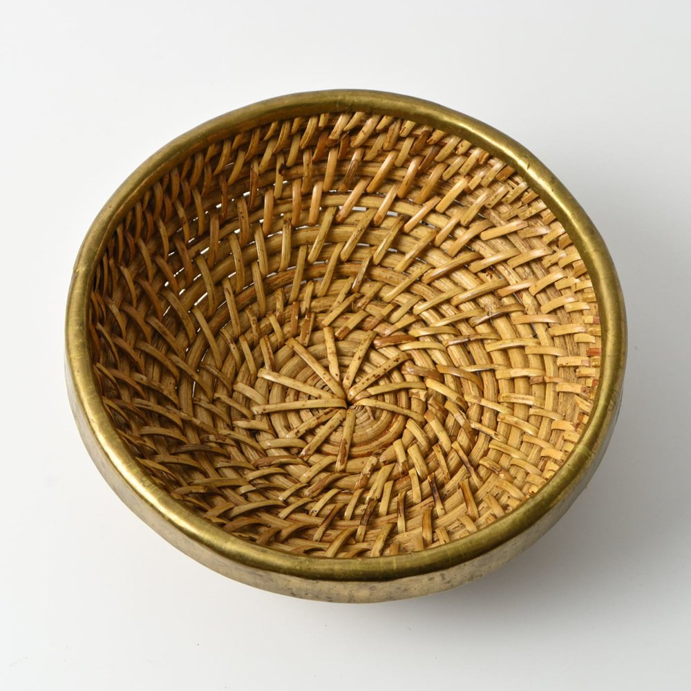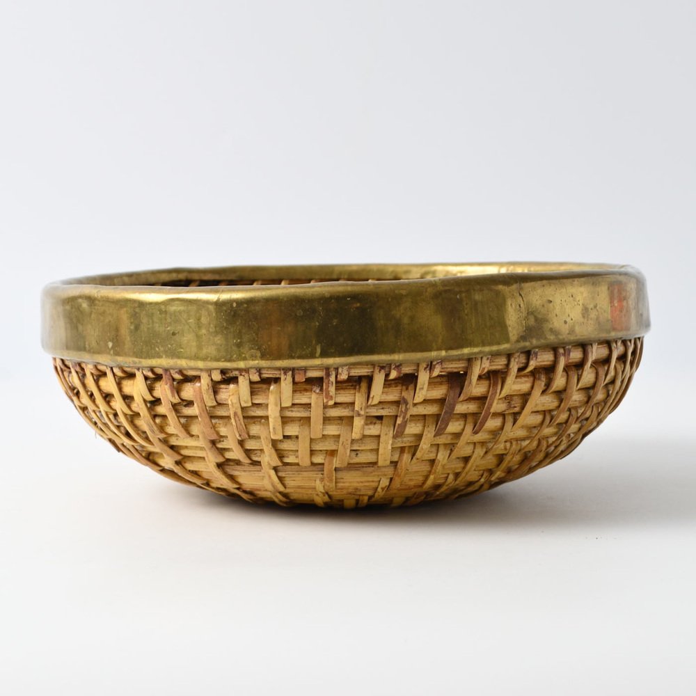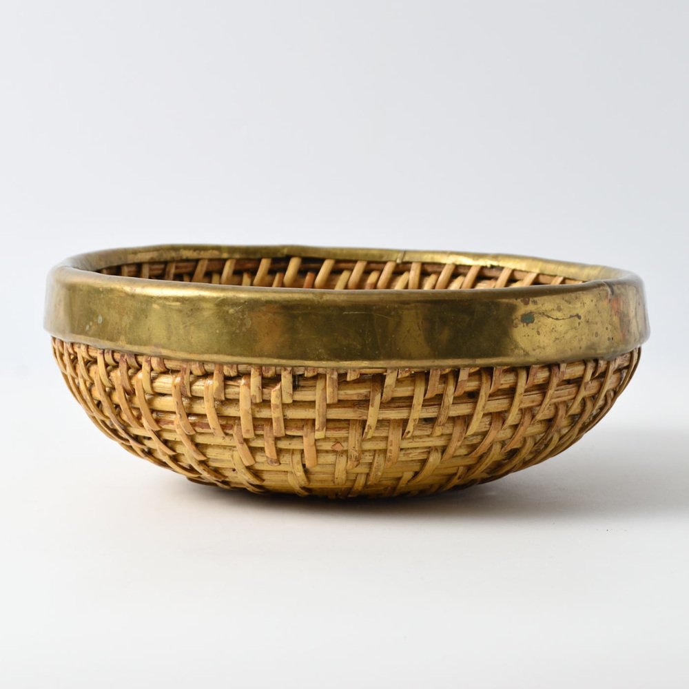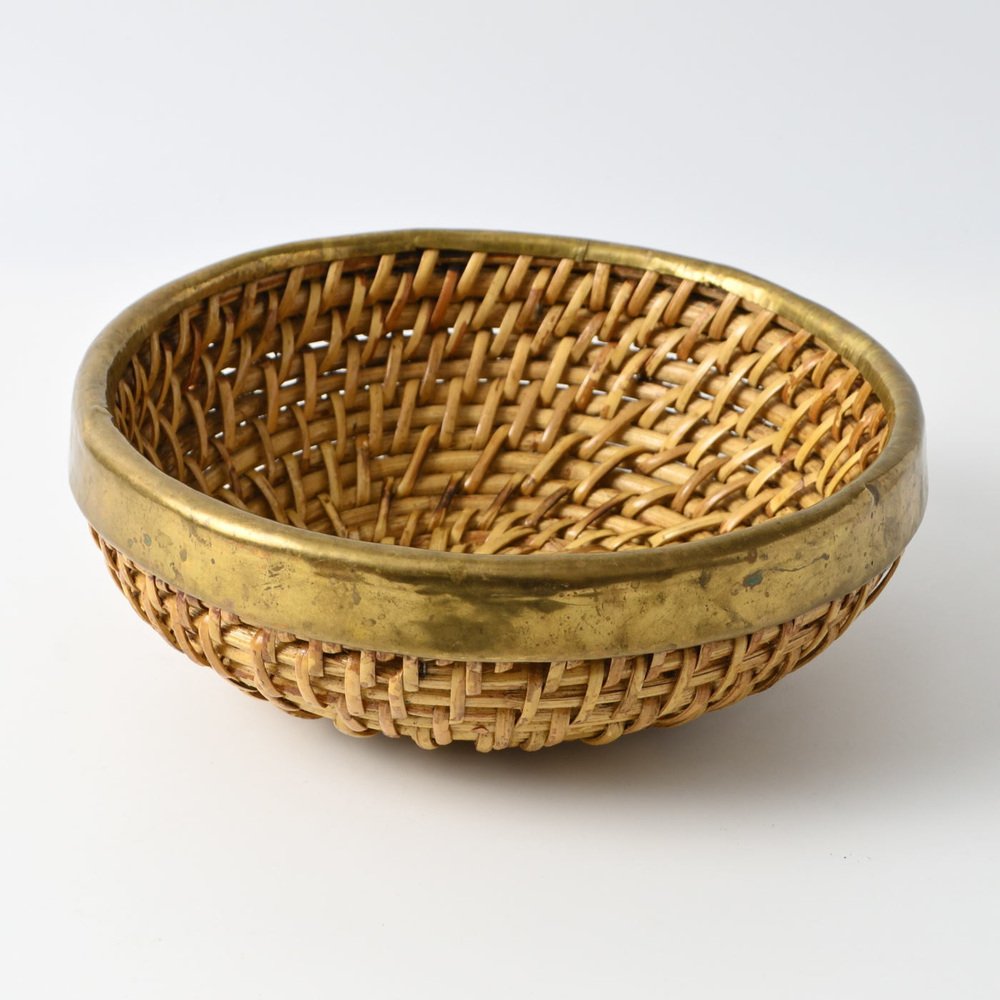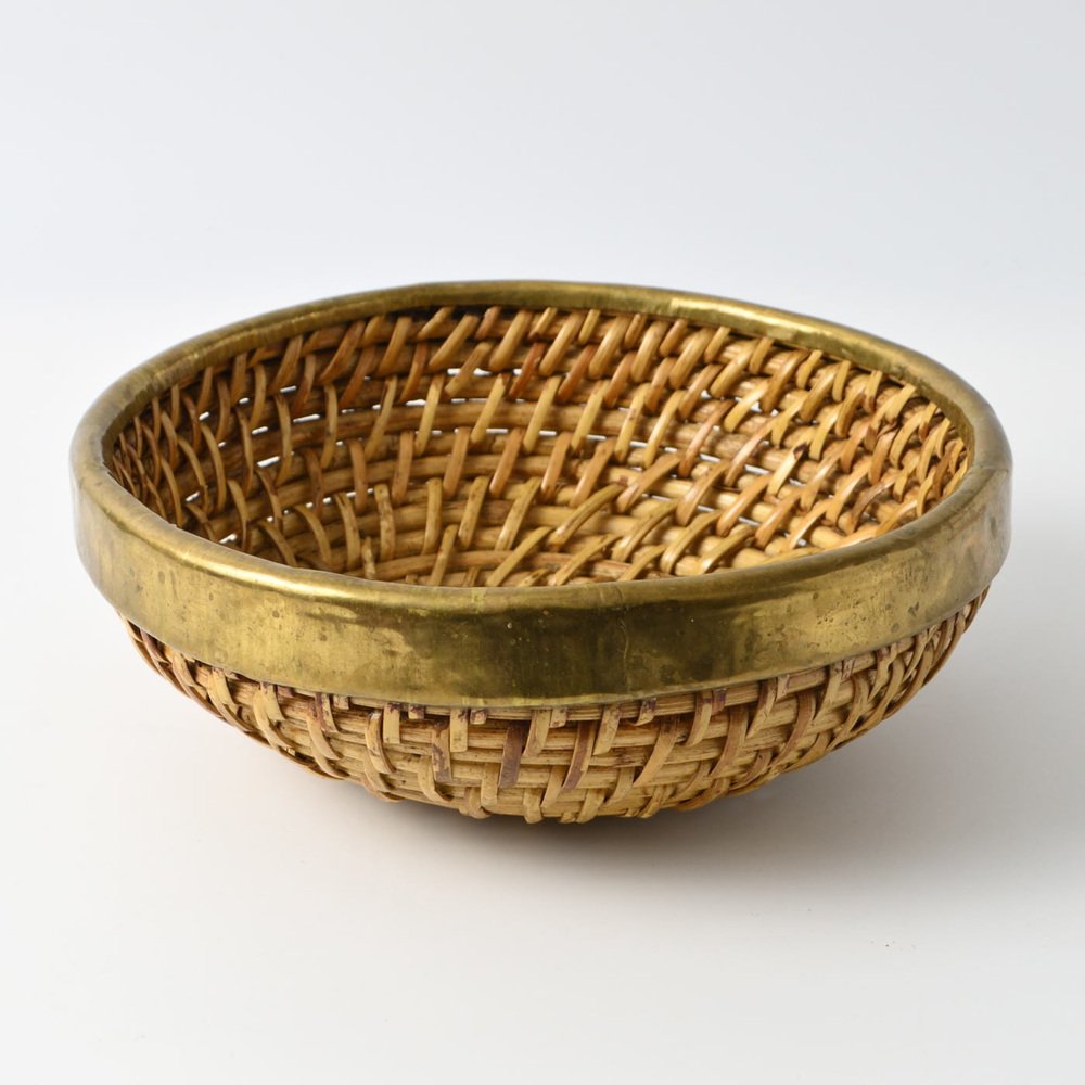 Cesto vintage in vimini e ottone, anni '90