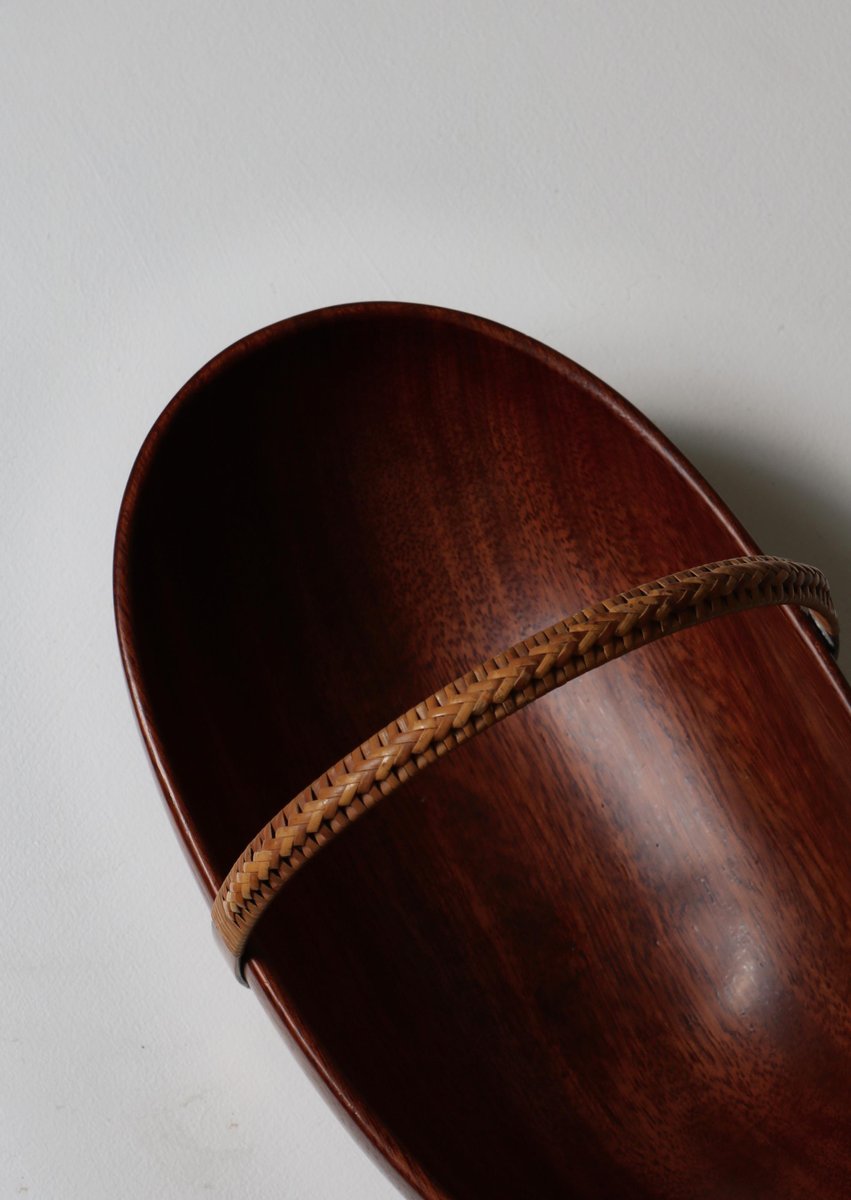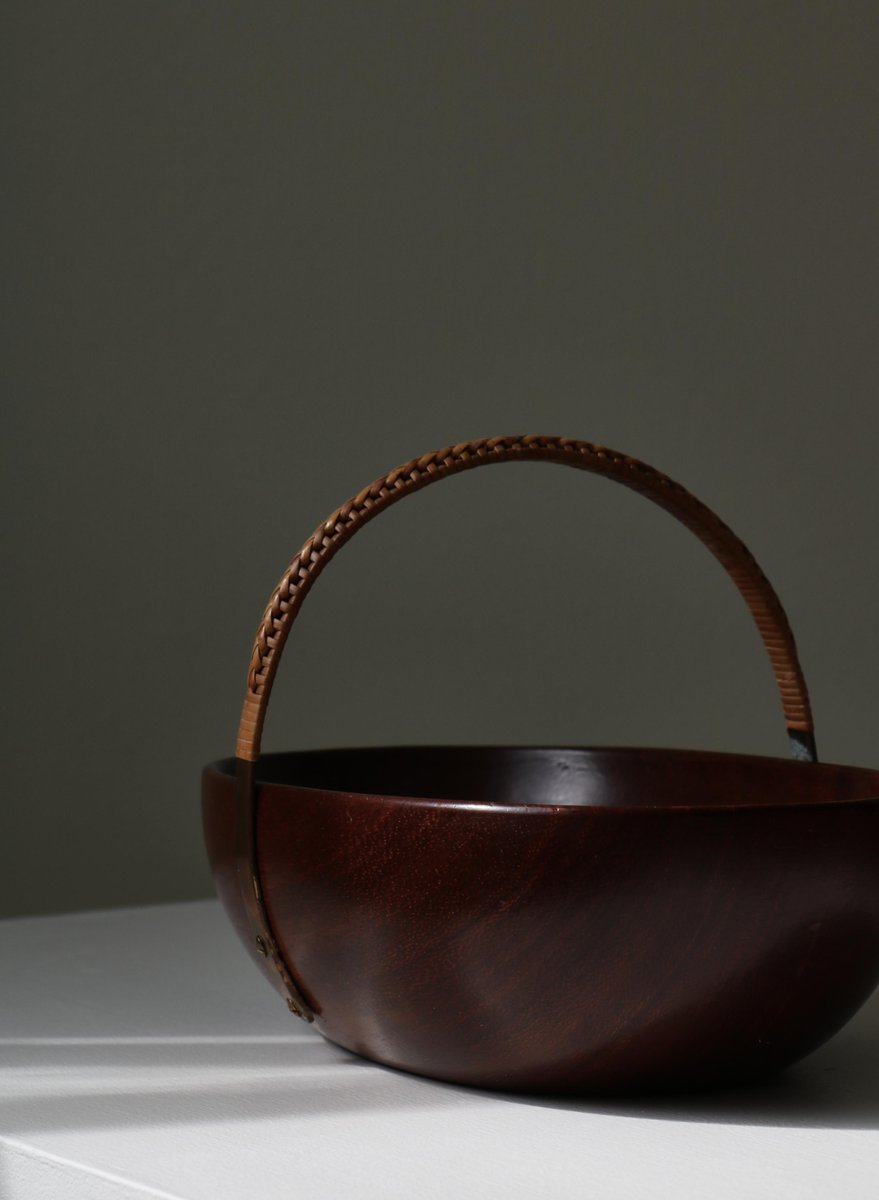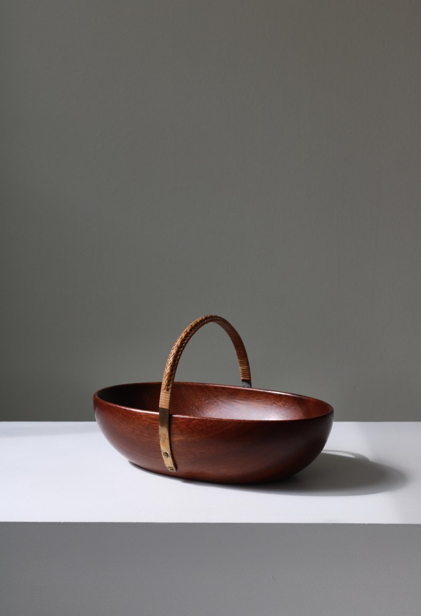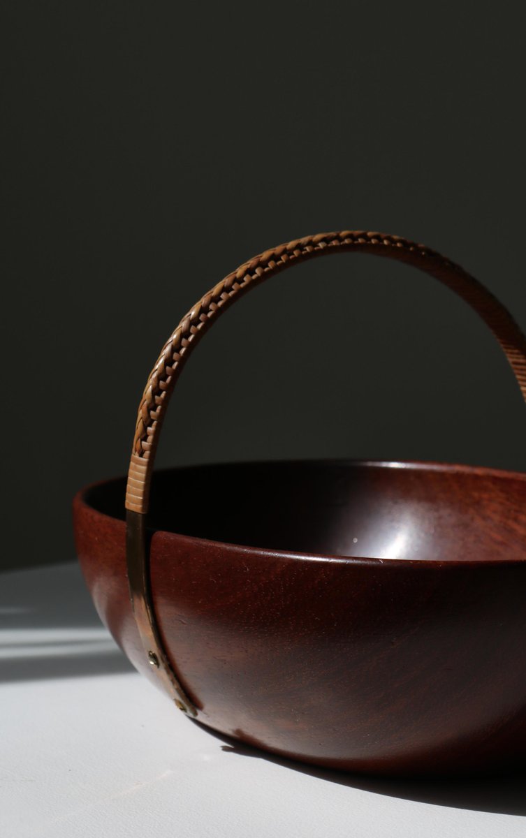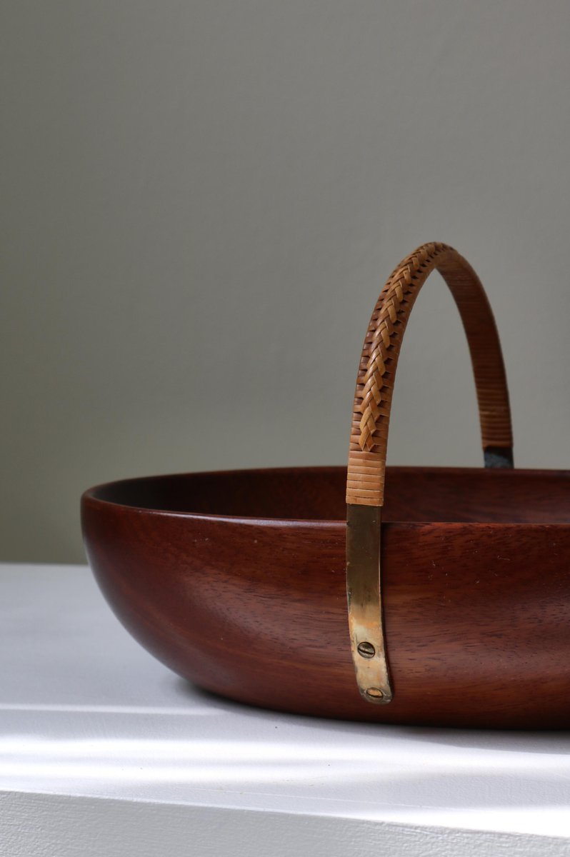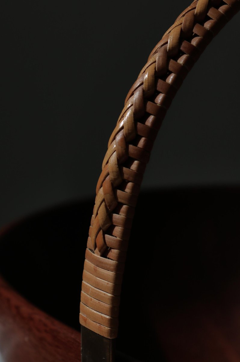 Ciotola A-436 fatta a mano con manico in ottone e vimini attribuita a Carl Auböck, 1955