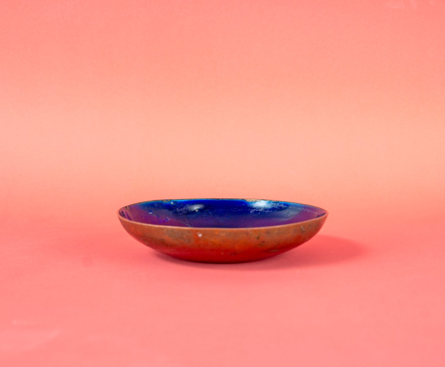 Ciotola artigianale in rame e smalto blu, anni '60