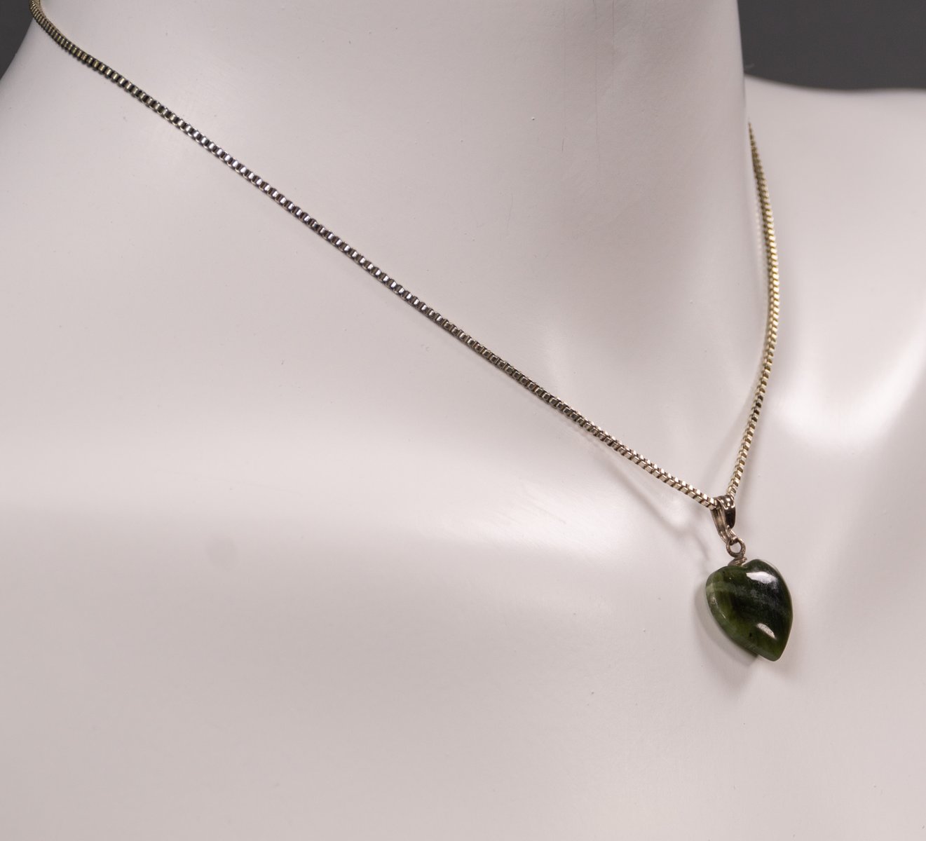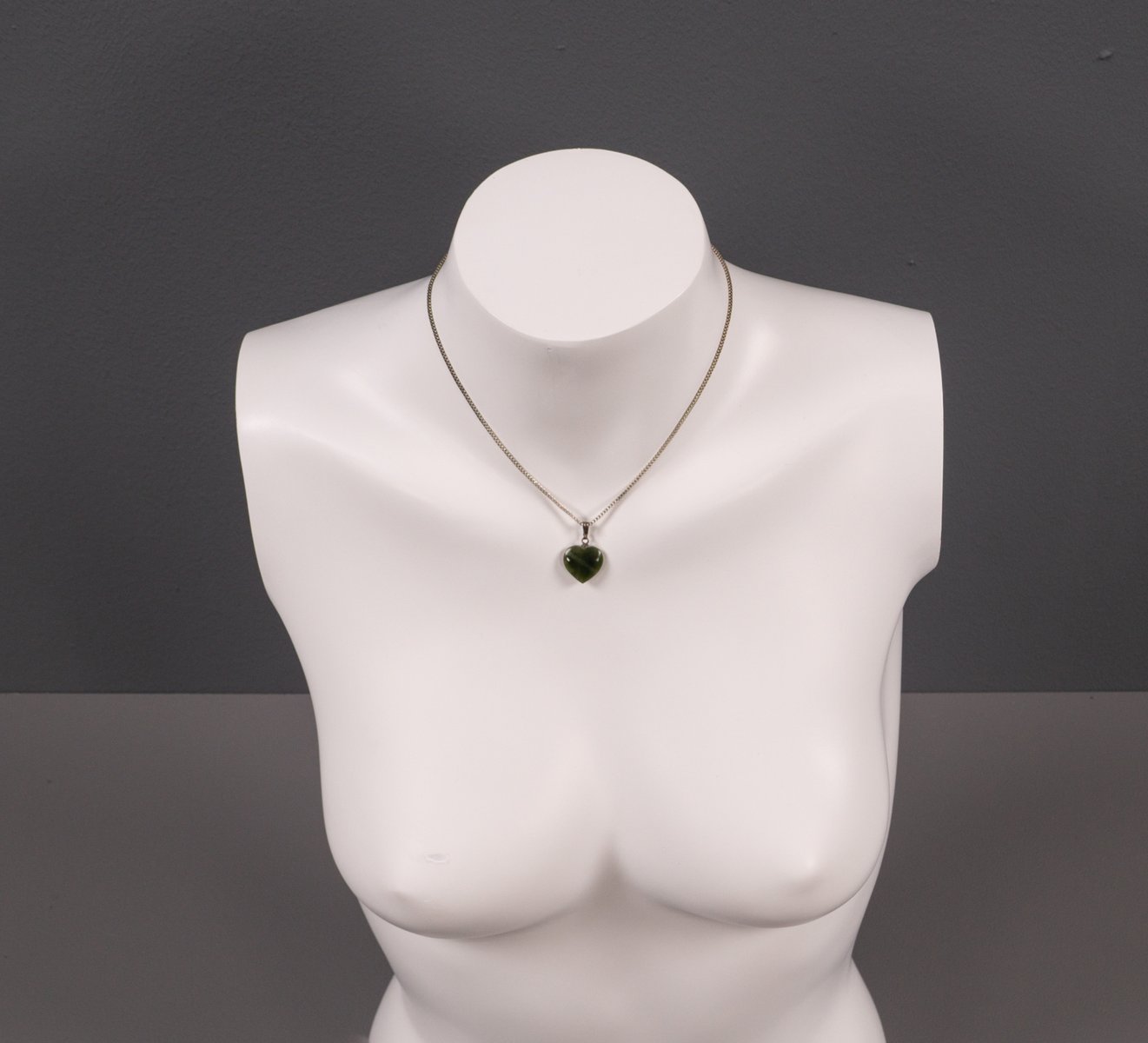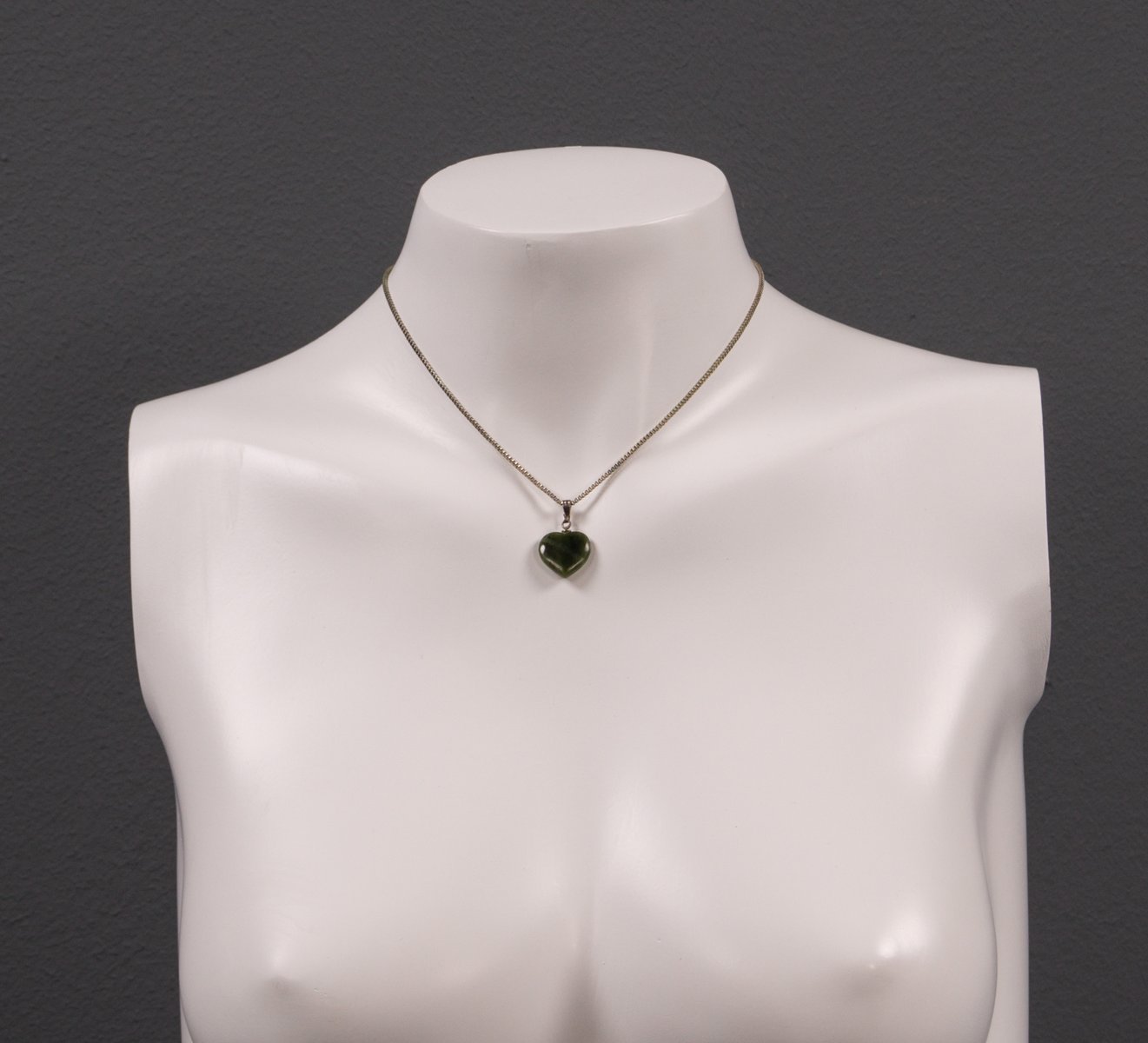 Un'elegante collana a forma di cuore degli anni '60. La sua forma semplice affascina per il gioco di forme organiche e geometriche. Il cuore verde è appeso a una semplice catena ad anello con un semplice ciondolo. Le credenze popolari sostengono che la pietra abbia effetti curativi e rinforzanti sui reni, sulle vie urinarie e sulla vescica. Gli esoteristi credono nella sua efficacia come pietra curativa per la visione, la creatività e la protezione. Lo stile di questa collana la rende un accessorio versatile che può essere integrato sia nei look classici che in quelli moderni e di tendenza.