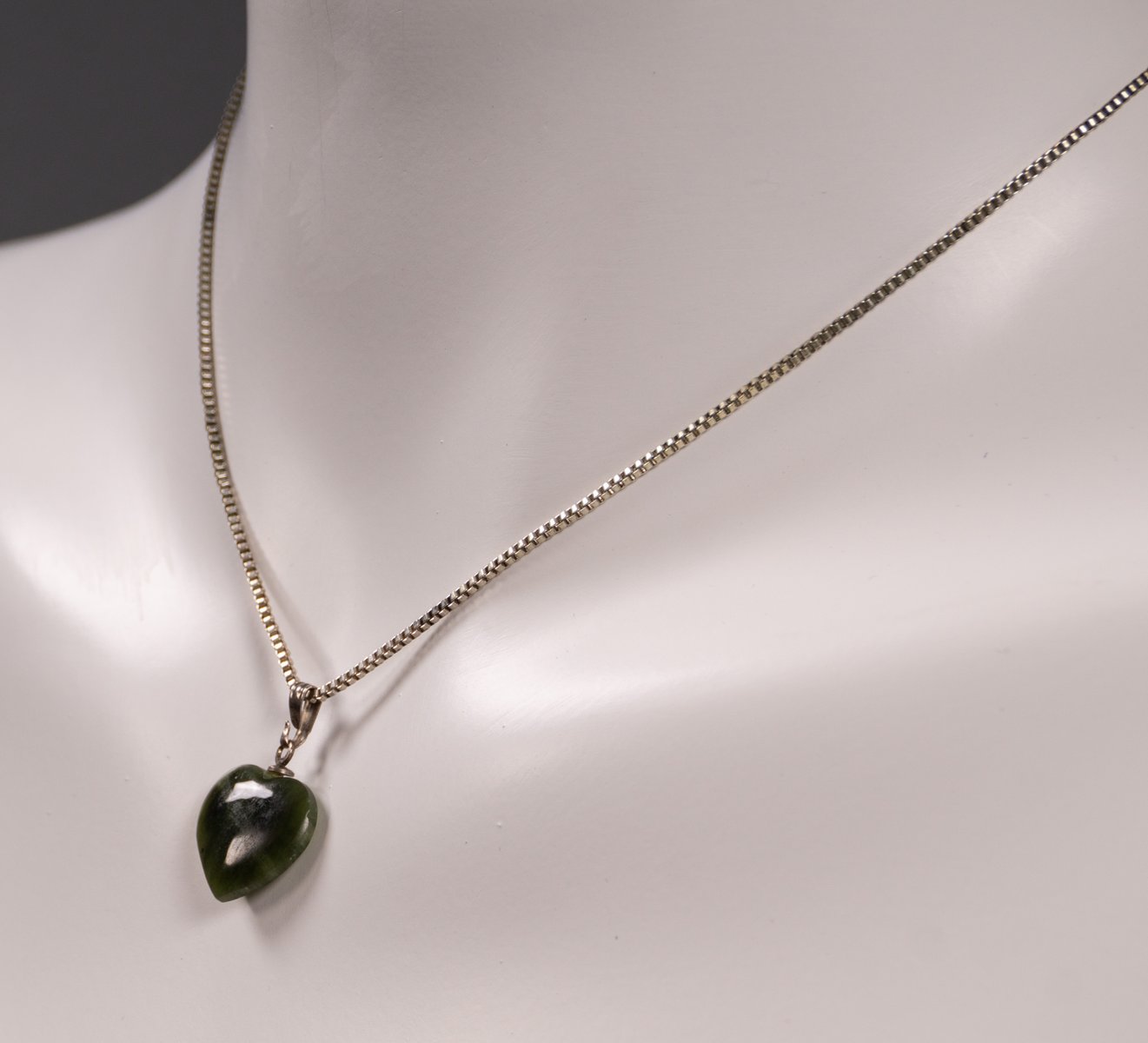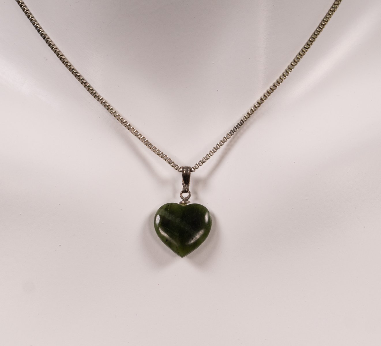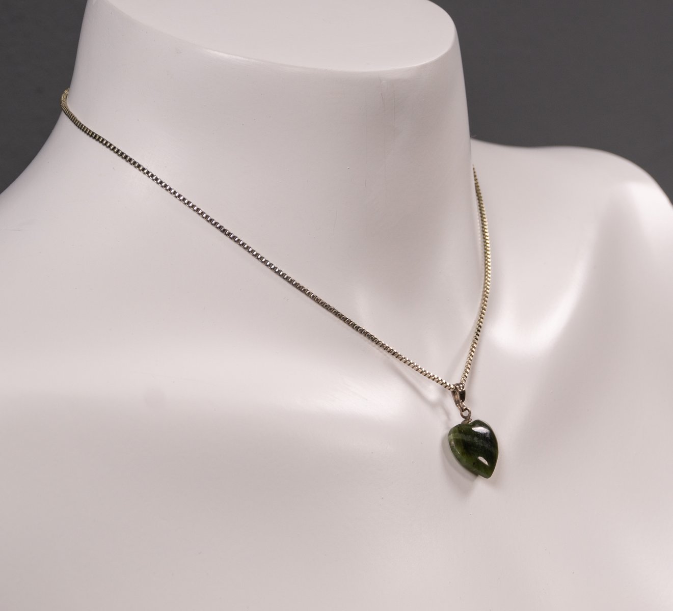 Un'elegante collana a forma di cuore degli anni '60. La sua forma semplice affascina per il gioco di forme organiche e geometriche. Il cuore verde è appeso a una semplice catena ad anello con un semplice ciondolo. Le credenze popolari sostengono che la pietra abbia effetti curativi e rinforzanti sui reni, sulle vie urinarie e sulla vescica. Gli esoteristi credono nella sua efficacia come pietra curativa per la visione, la creatività e la protezione. Lo stile di questa collana la rende un accessorio versatile che può essere integrato sia nei look classici che in quelli moderni e di tendenza.