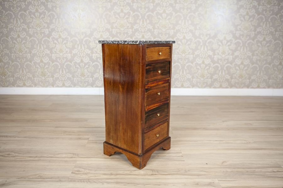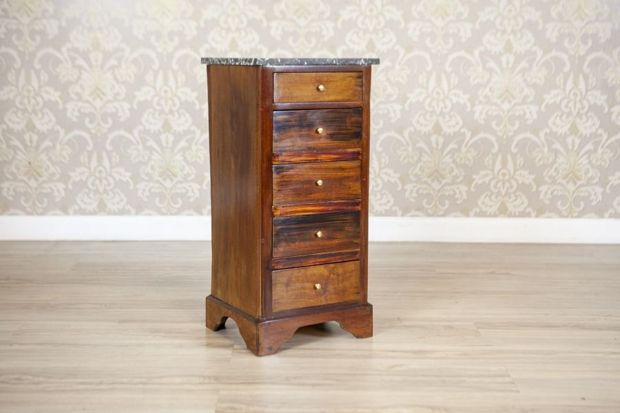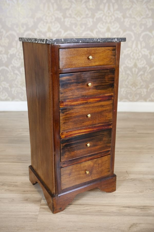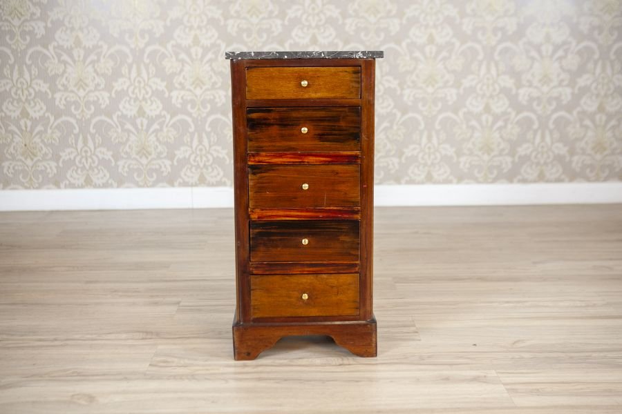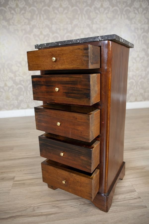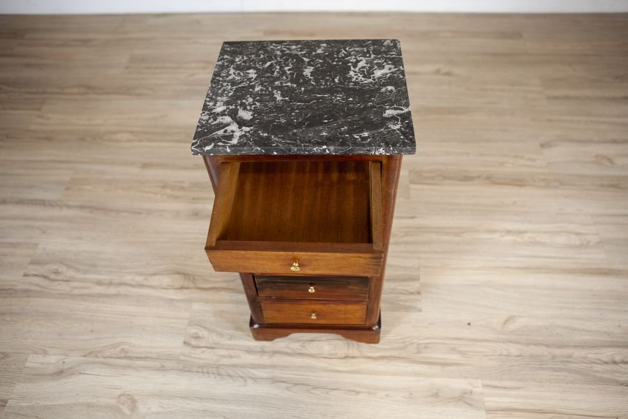 Comò Biedermeier in legno di mogano e impiallacciatura con ripiano in marmo, anni '30