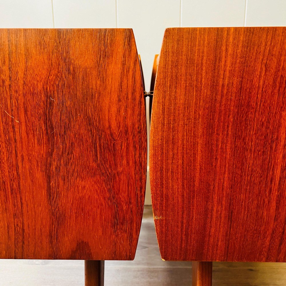 Armadietti retrò vintage dal design scandinavo, coppia di comodini vintage, tavolini, coppia di comodini, tavolini, armadietti di metà secolo. Questi bellissimi armadietti retrò degli anni '60, sono in buone condizioni vintage, tuttavia il legno mostra tracce di età e di utilizzo, con una bella patina. Vedere le foto per tutti i dettagli e le eventuali imperfezioni. Misure: 44 cm / 17,3 pollici di altezza, 48 cm / 18,8 pollici di larghezza, 29 cm / 11,4 pollici di profondità.