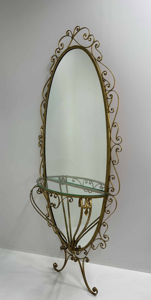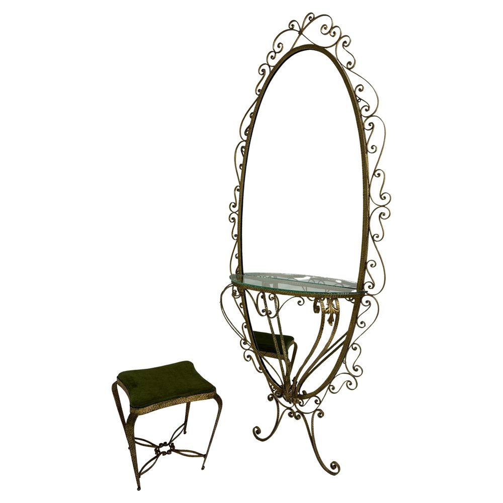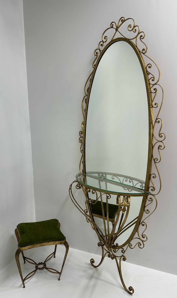 Consolle a specchio e pouf attribuiti a Pierluigi Colli, Italia, anni '60, set di 2