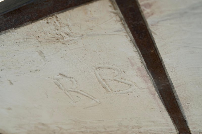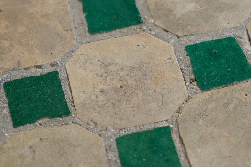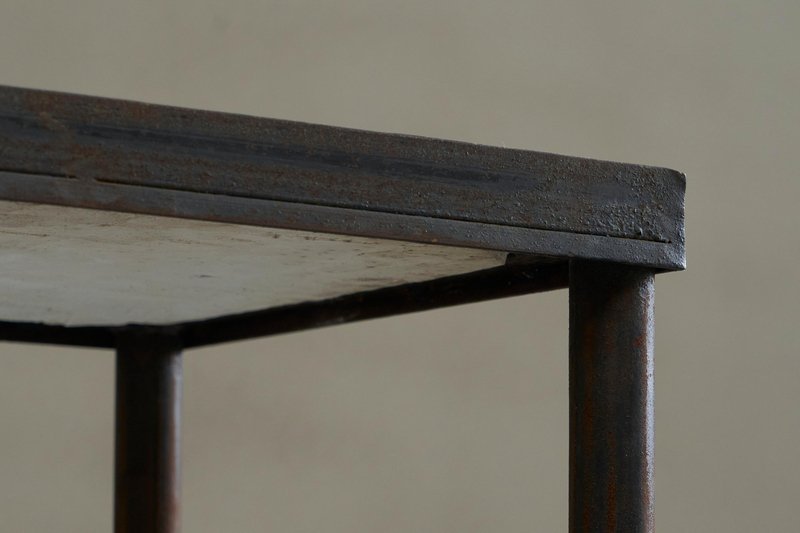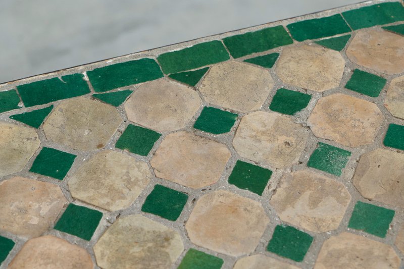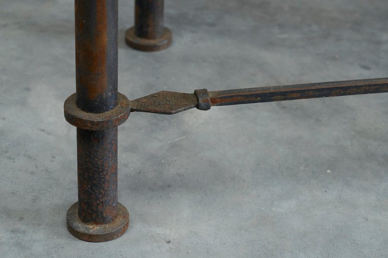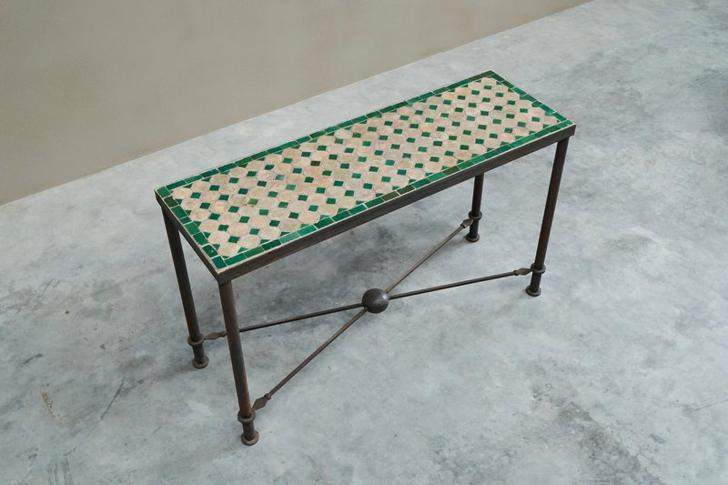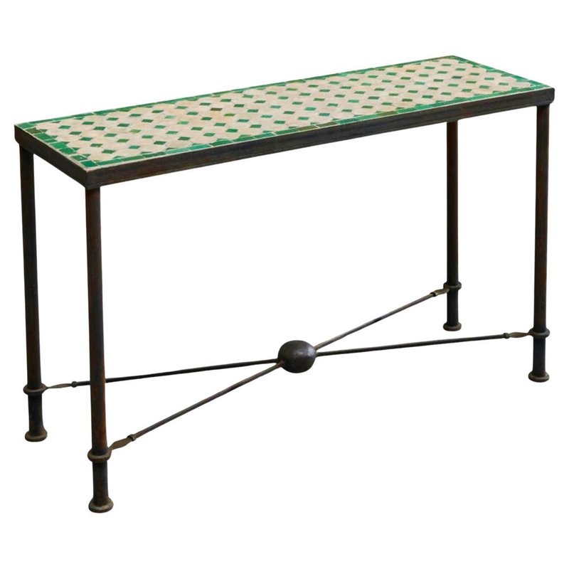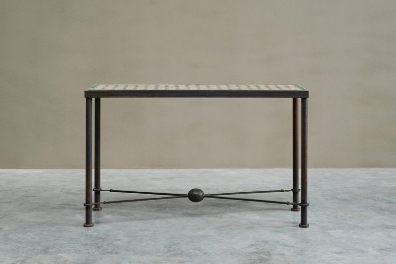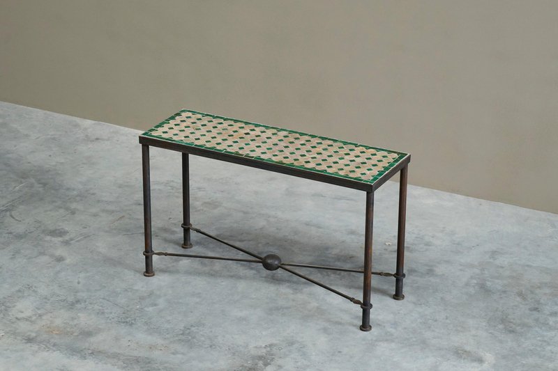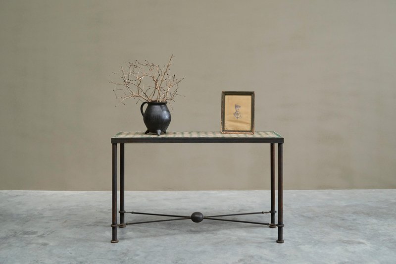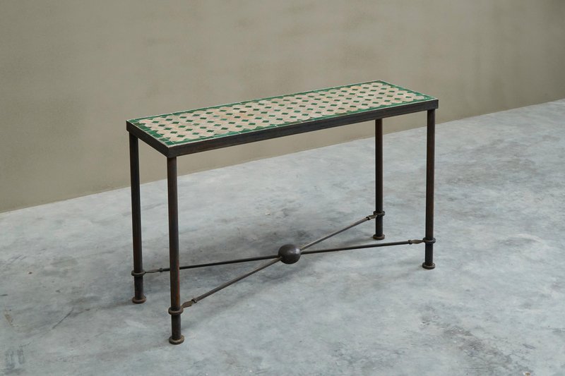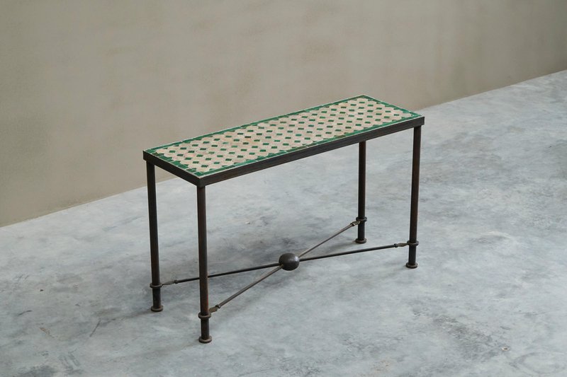 Consolle Art Deco vintage in ferro patinato e piastrelle, anni '50