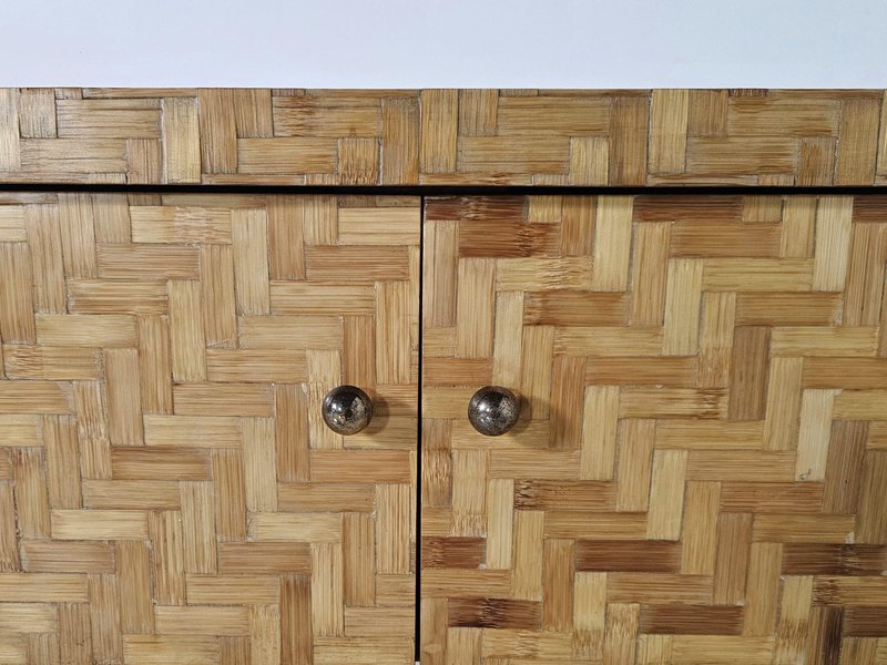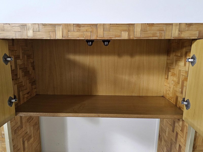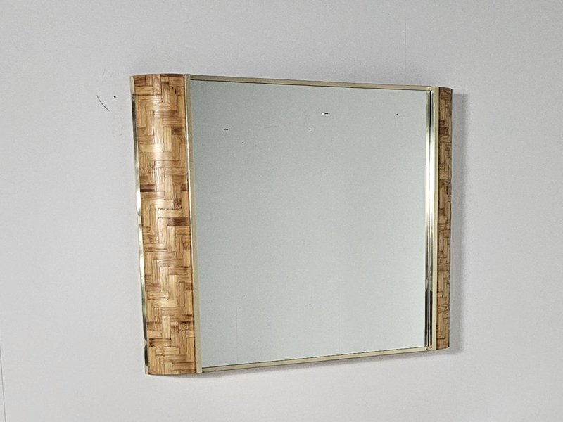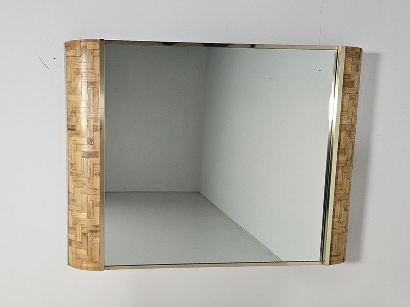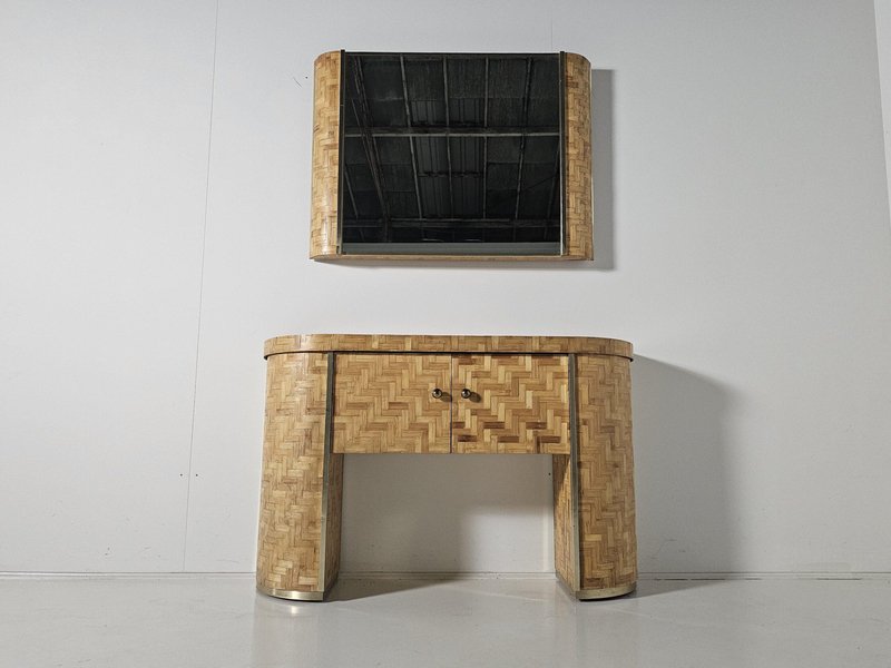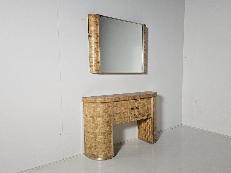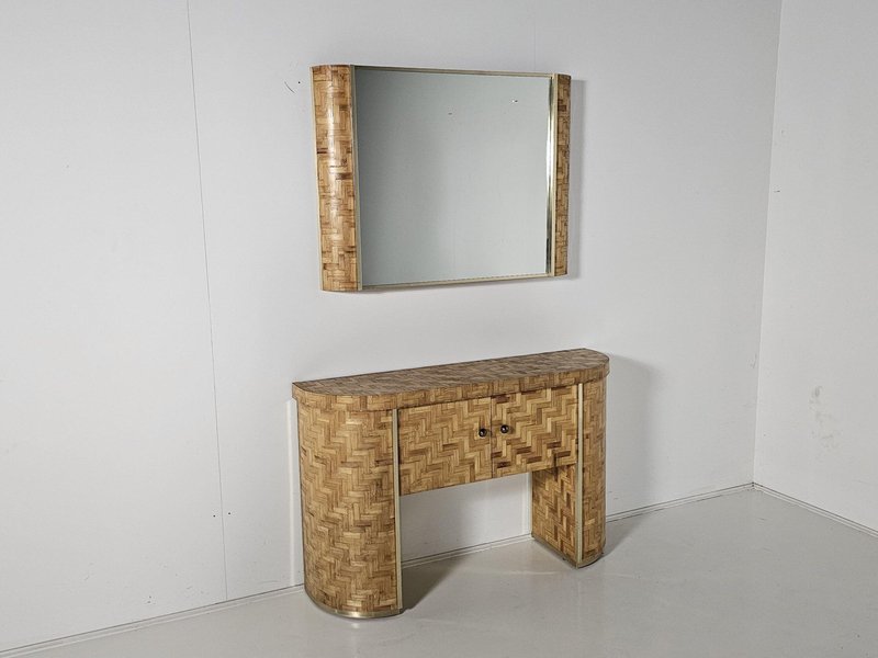 Consolle in vimini intrecciata con specchio abbinato, Italia, anni '70, set di 2