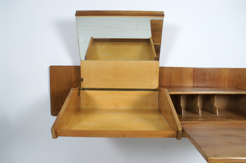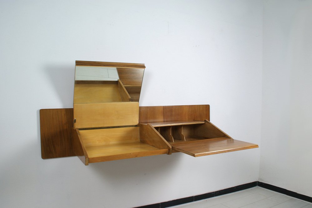 Consolle sospesa con specchio e scrivania, Italia, anni '50