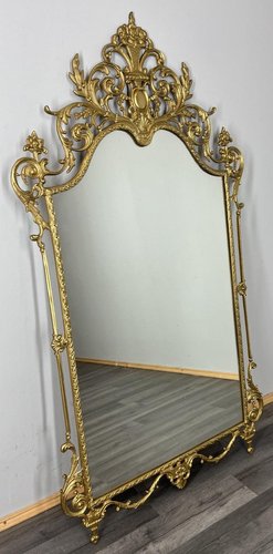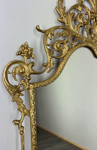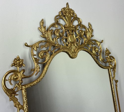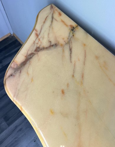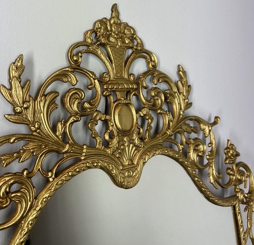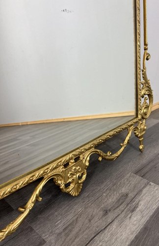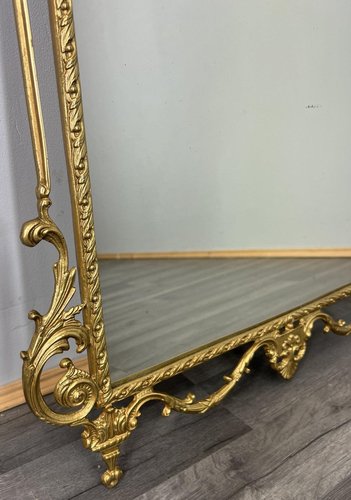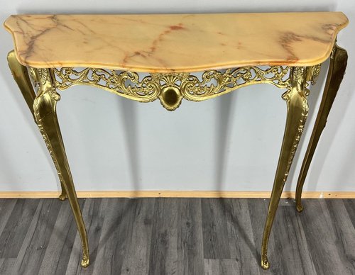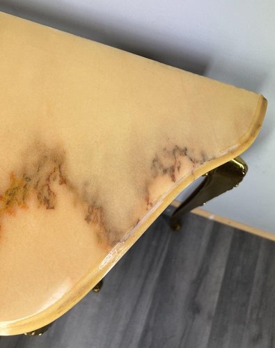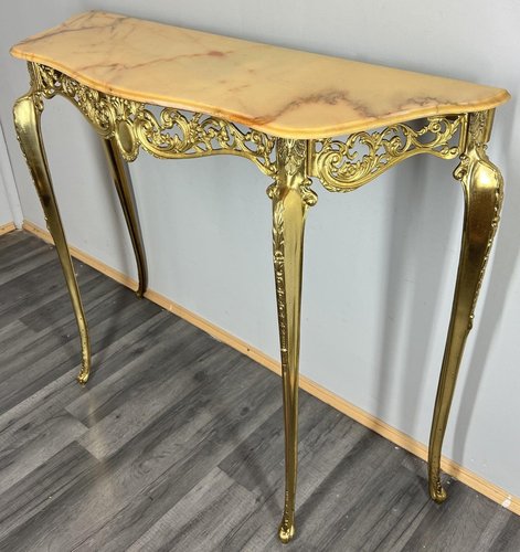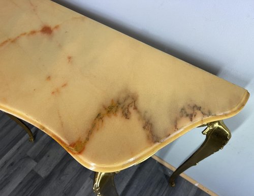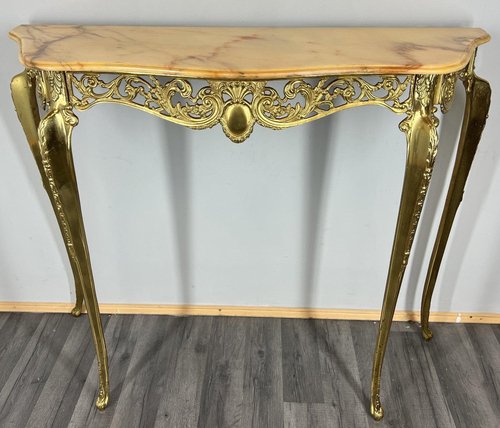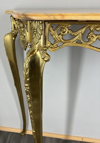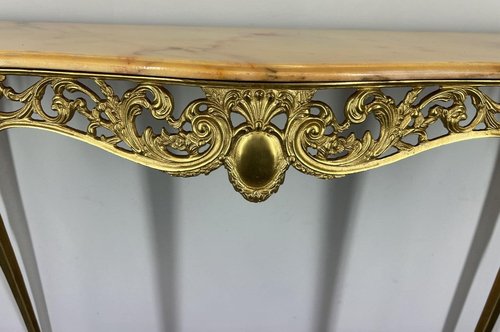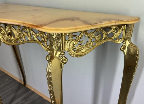 Consolle vintage in ottone con ripiano in marmo e specchio, Francia, set di 2