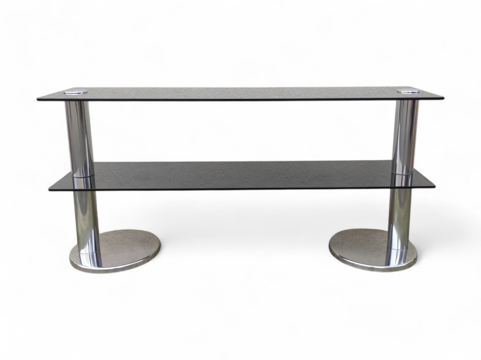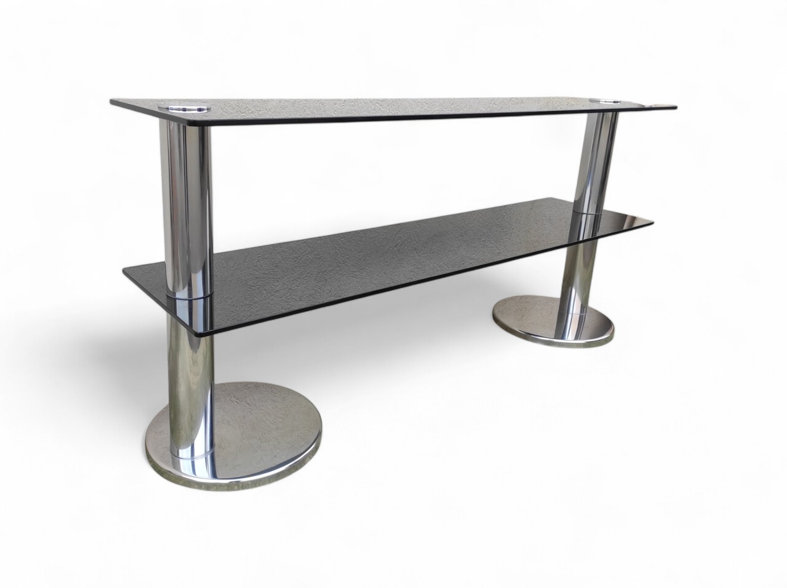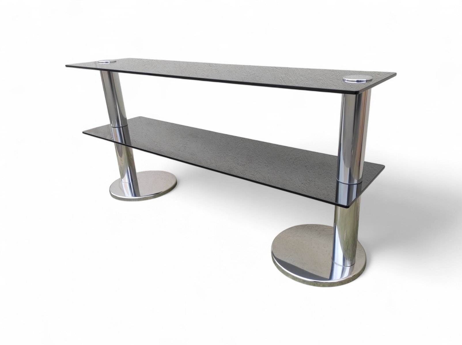 Consolle vintage in vetro fumé, acciaio e placcatura in cromo, anni '70