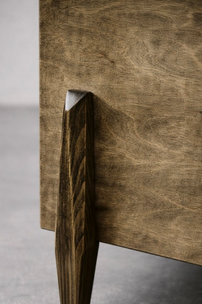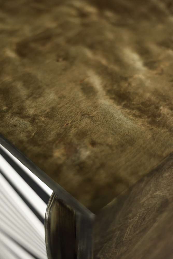 La credenza è stata parzialmente restaurata mantenendo la sua patina naturale. Si tratta di un mobile rifinito secondo le regole del corso Upcycled Vintage. La sua forma è originale e risale al XX secolo, ma la finitura finale è stata modificata dall'inventiva artistica o dalla composizione di parti provenienti da oggetti originali diversi. Tutti i trattamenti sono eseguiti con metodi tradizionali, sono coerenti con l'estetica dell'epoca da cui proviene il mobile e sostengono l'idea Zero Waste.