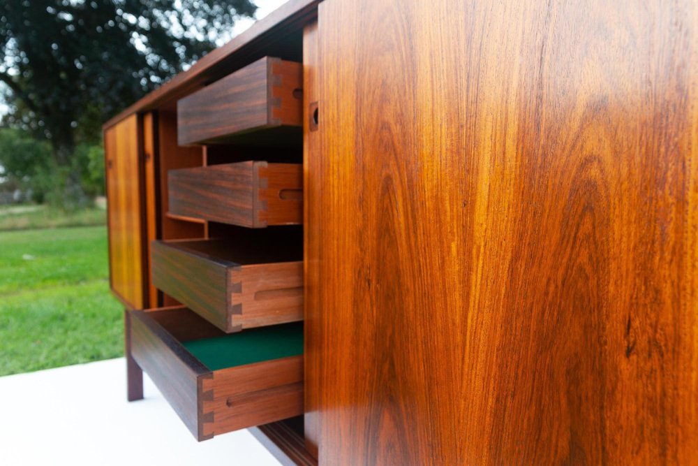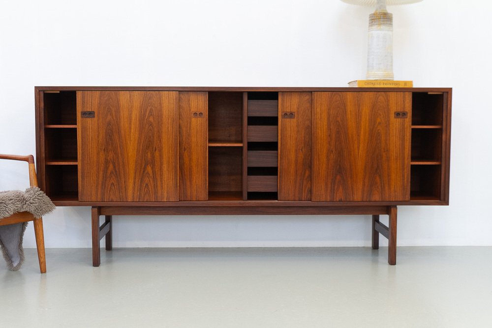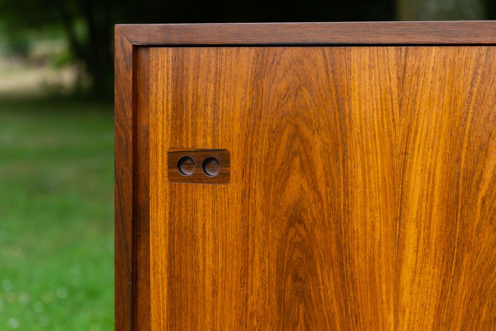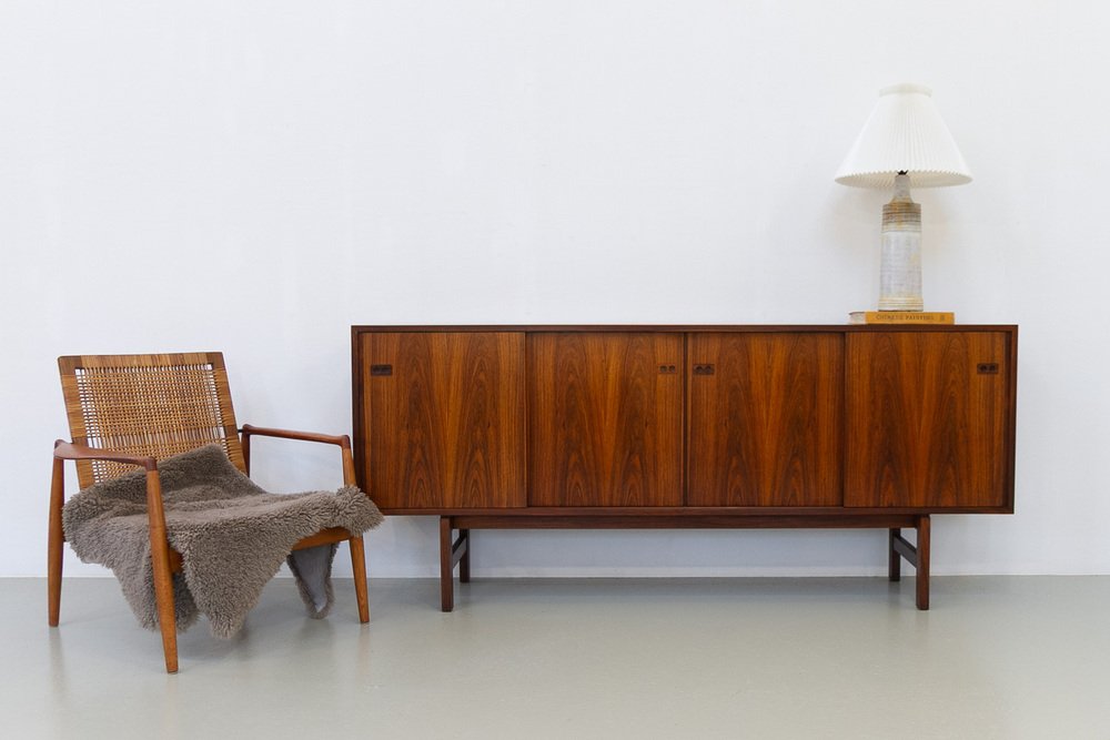 Helge Sibast apprenticed under his father and was responsible for a many of the company’s most successful designs, including No. 7 Chair and No. 8 Chair (both 1953). He also commissioned a number of top Danish designers of the day, like Grete Jalk, to develop Sibast lines. Arne Vodder, in particular, collaborated with Sibast frequently between the 1950s and ‘70s. Notably, in 1957, Vodder was awarded first prize at the X Triennale di Milano for his No. 29A Sideboard for Sibast.