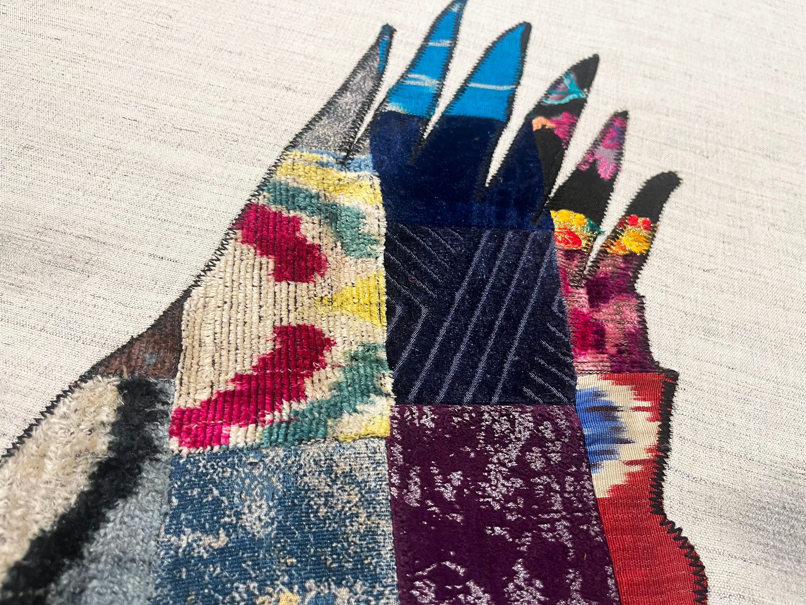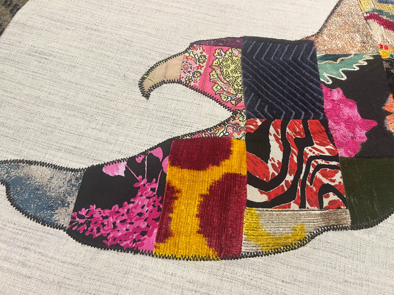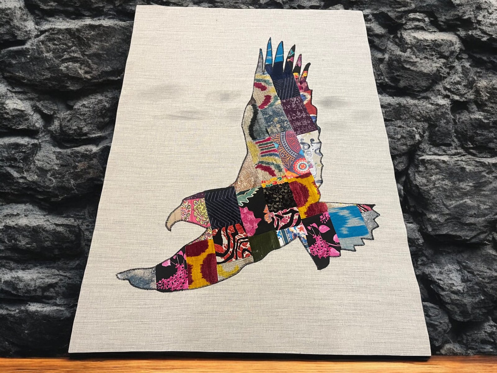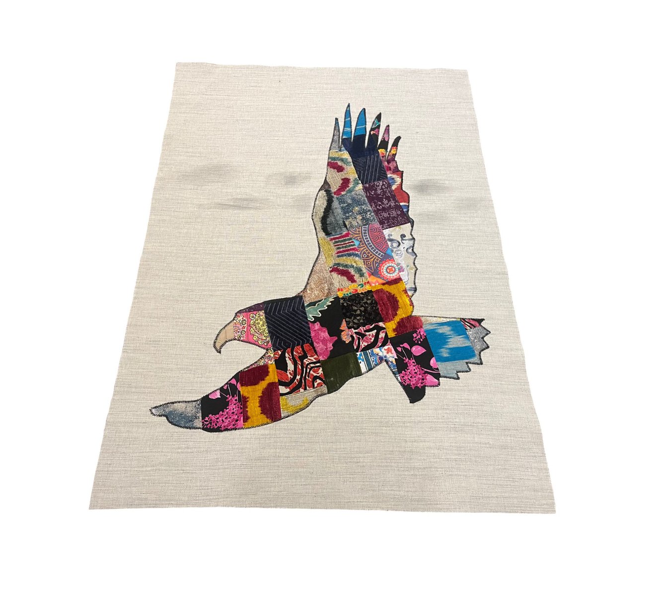 Decorazione da parete con aquila fatta a mano in seta, anni '80