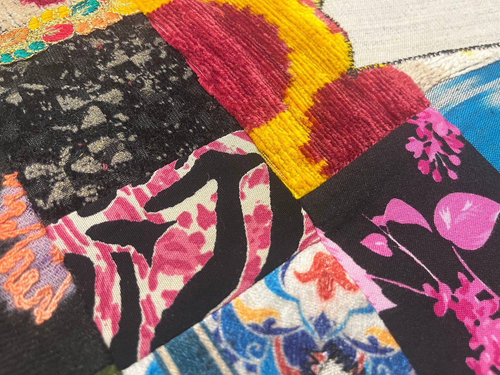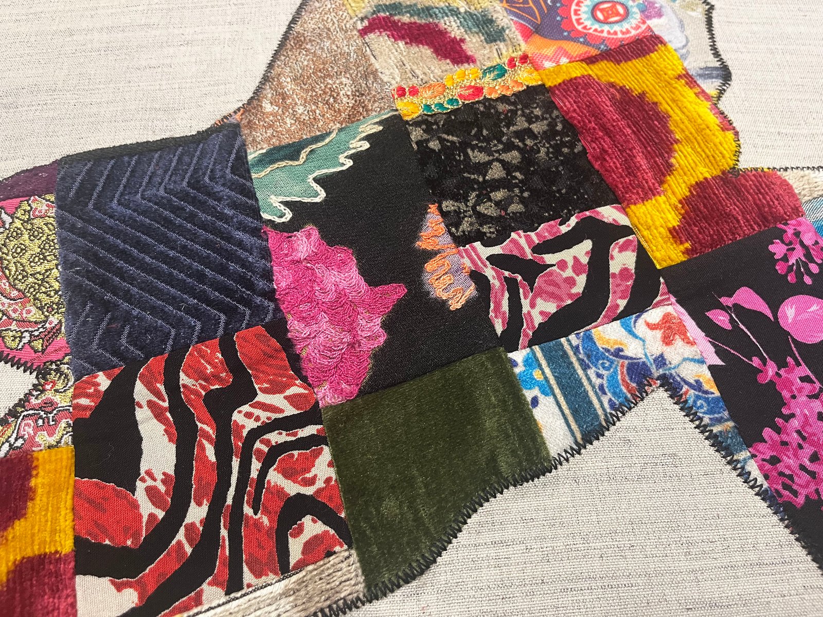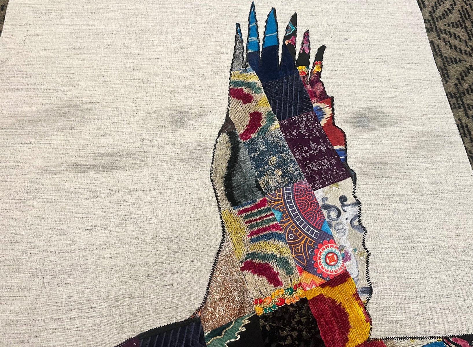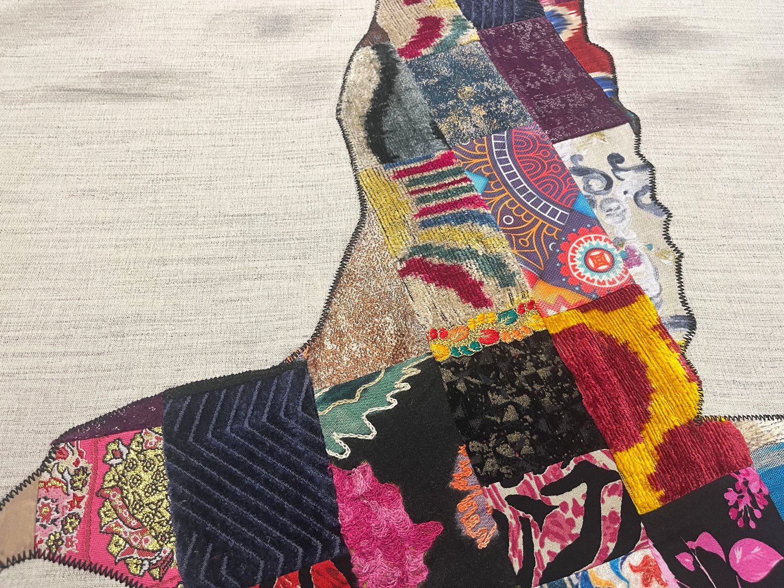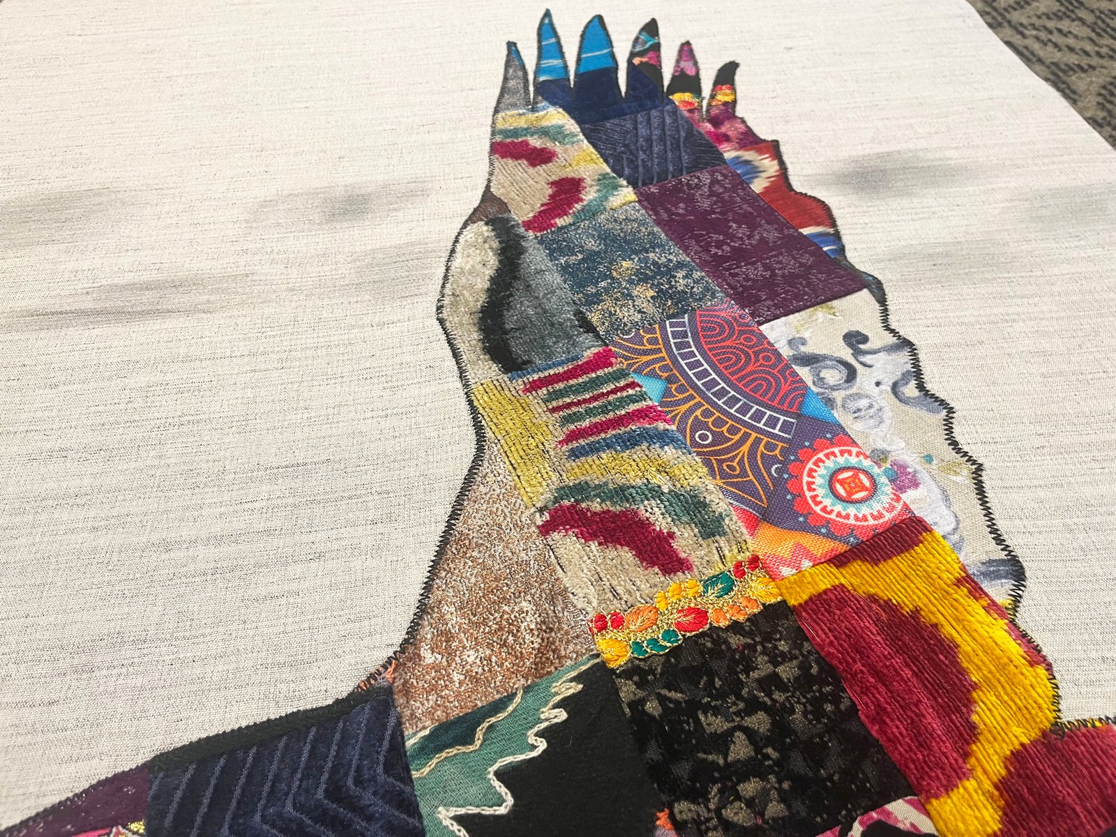 Decorazione da parete con aquila fatta a mano in seta, anni '80
