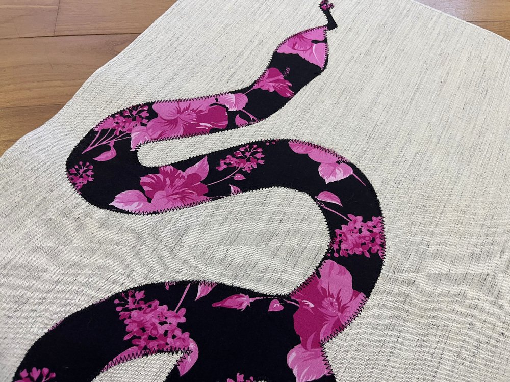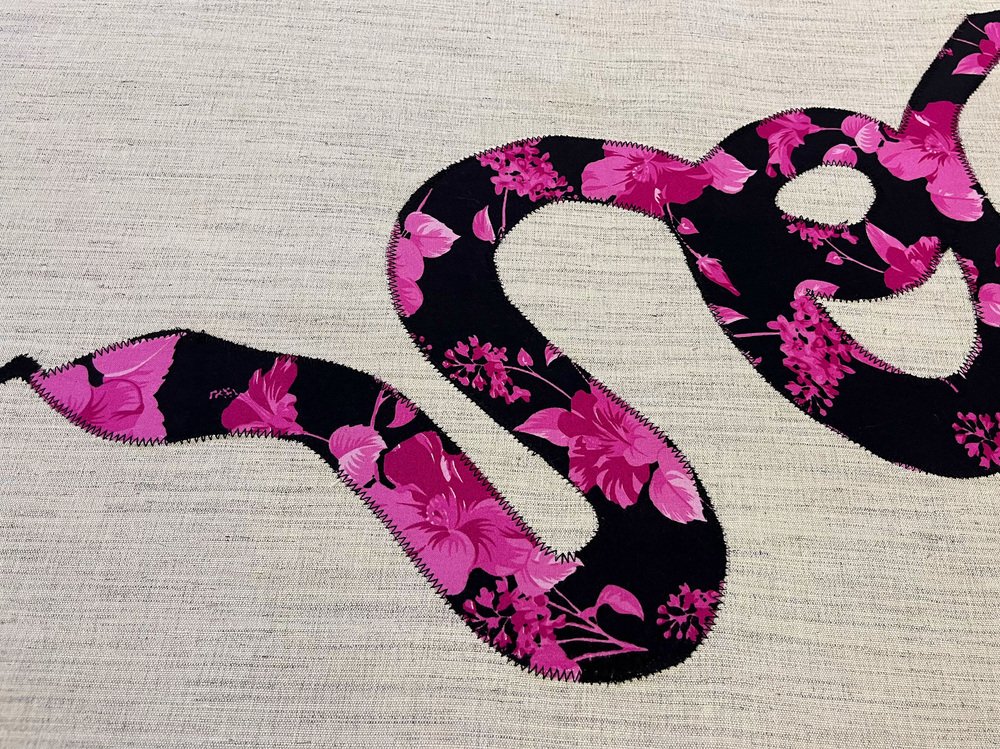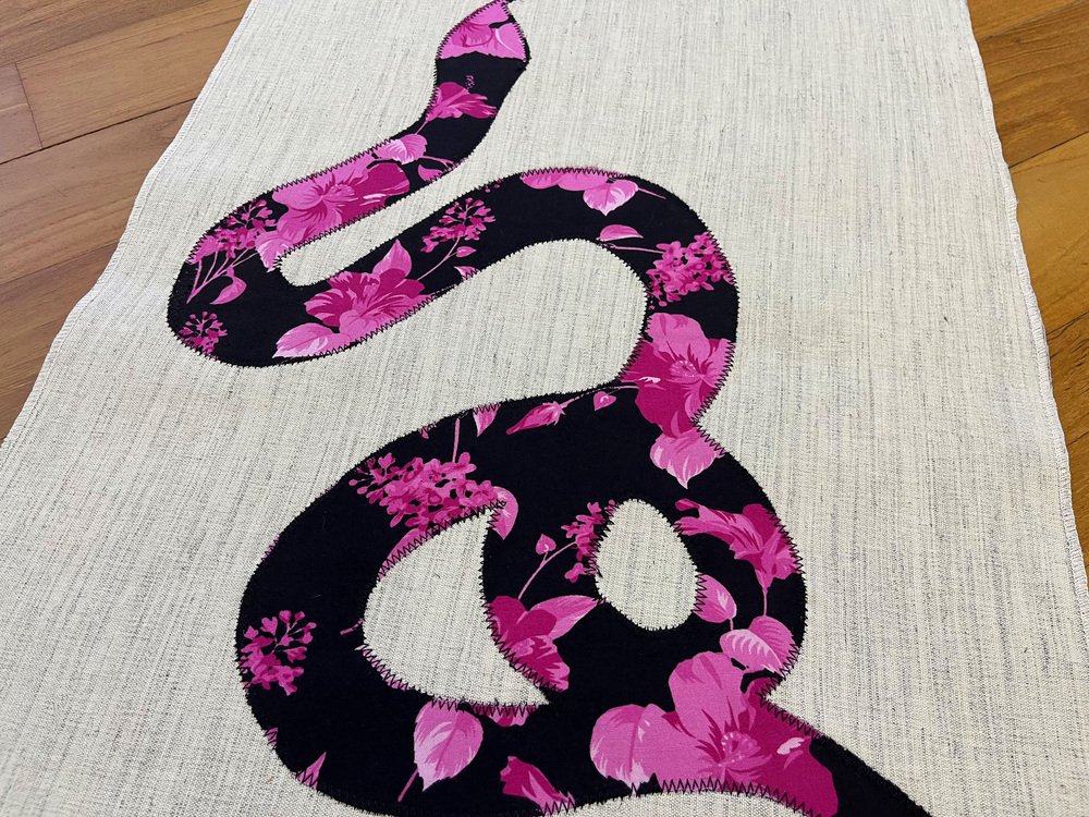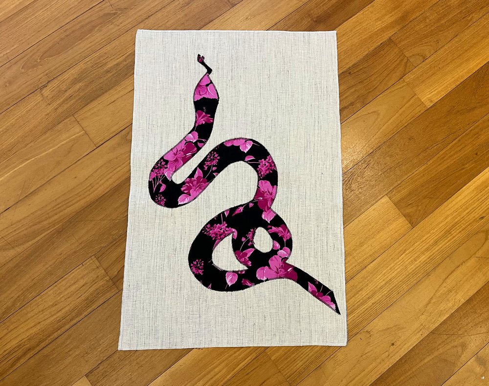 Decorazione da parete con serpente floreale fatta a mano, anni '80