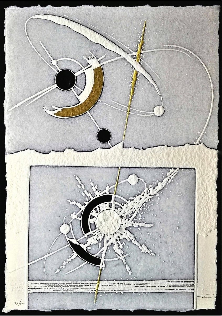 Artwork sold in perfect condition Etching on paper Colombe Duchêne from the Moulin De Larroque paper mill. Hand signed and numbered by the artist on the front. Ed 100 ex. + XXX roman numeration. Untouched, not framed. Complete with certificate of authenticity and origin (signature and dry stamp of the publisher with photographic reference and numbering). The images of a framed / numbered copy are for illustrative purposes only, the delivered specimen may have a different numbering depending on availability. Professional tracked shipping with rigid packaging. Medium Print: etching Dimensions cm • inch 37 x 27 x 0.1 cm 14.6 x 10.6 x 0 inch Support Print on handmade paper Framing Not framed Type Numbered and limited to 100 copies 1 copy available Authenticity Work sold with an invoice from the gallery and a certificate of authenticity Signature Hand-signed by artist Collector’s Guide Collecting Prints Types of prints Our advice for framing prints Colors White Tags Cosmos Italy Spatialism Themes Abstract Geometric