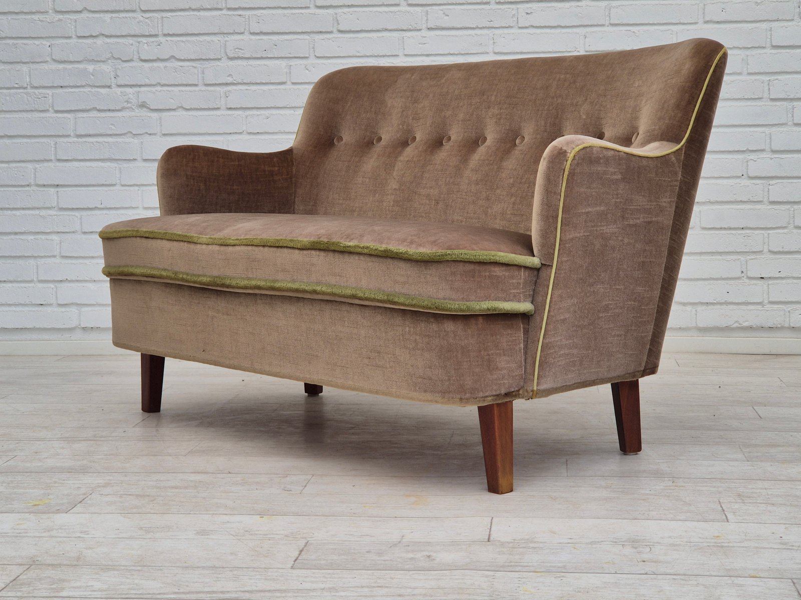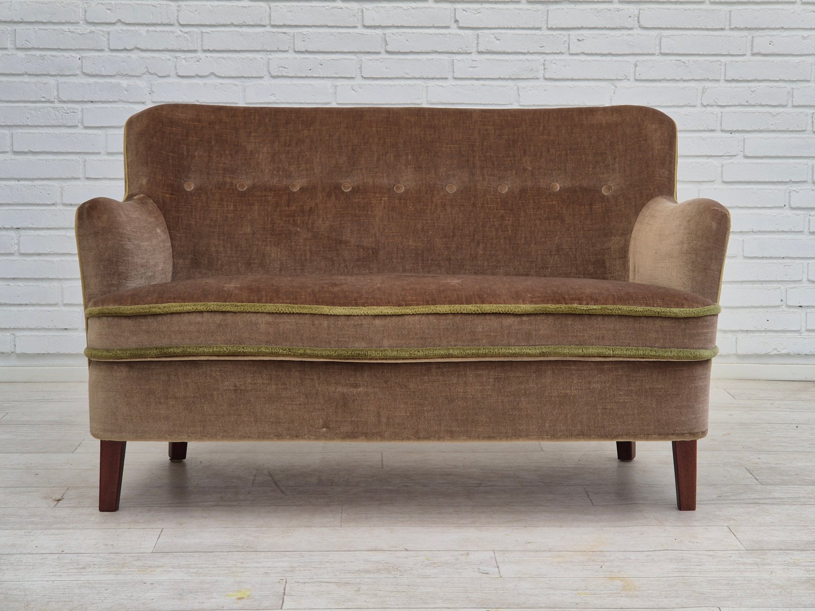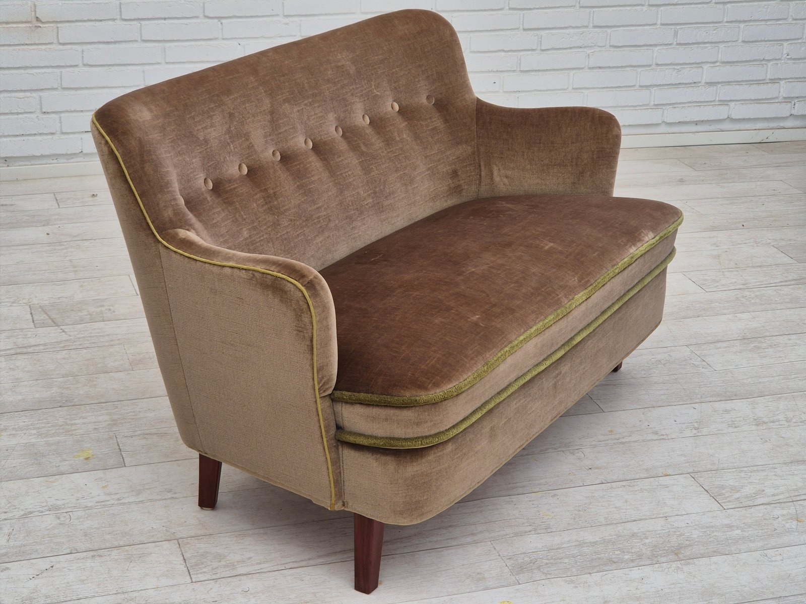 Divano a due posti in velluto e faggio, Danimarca, anni '60