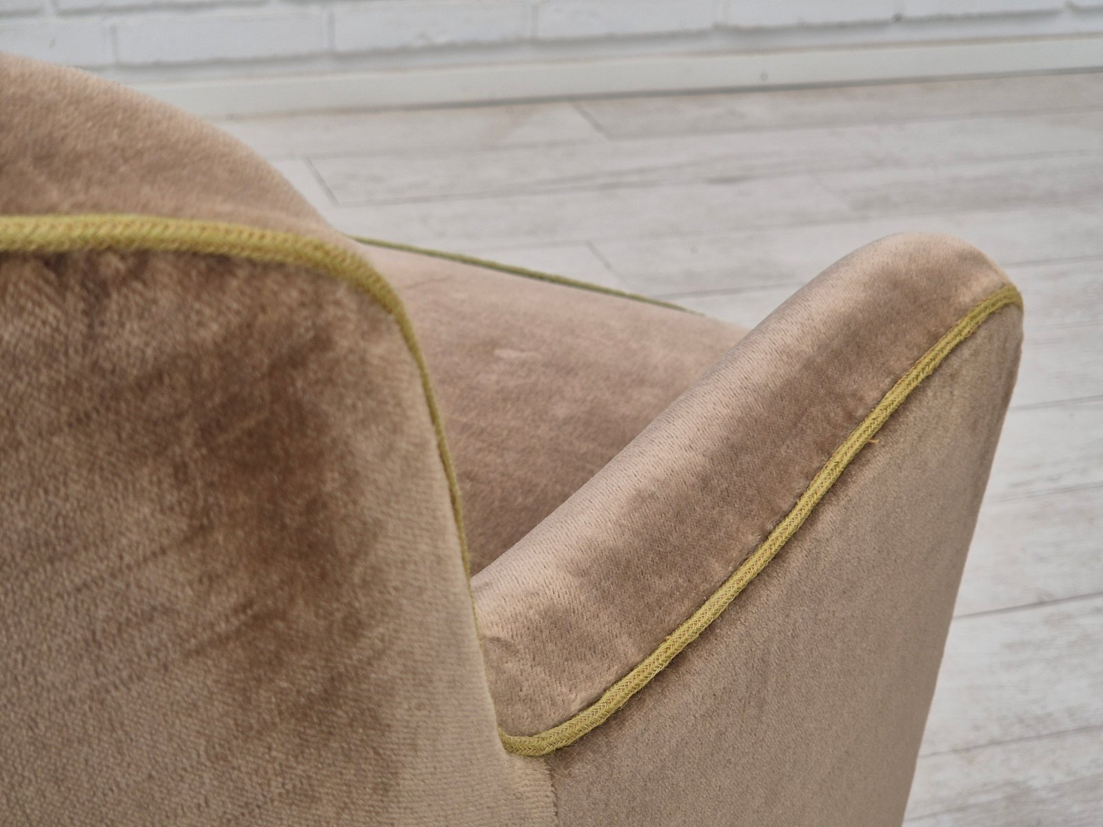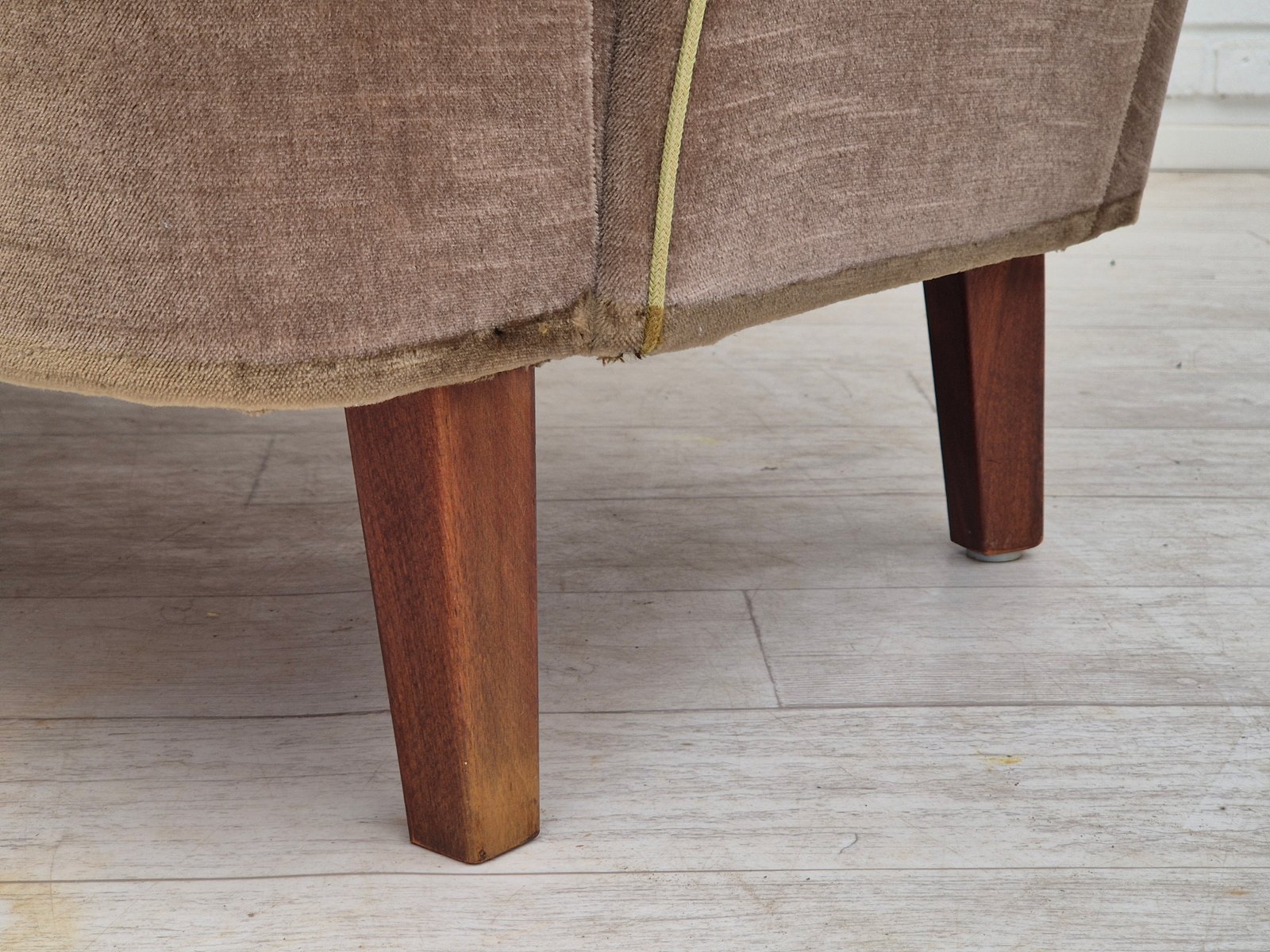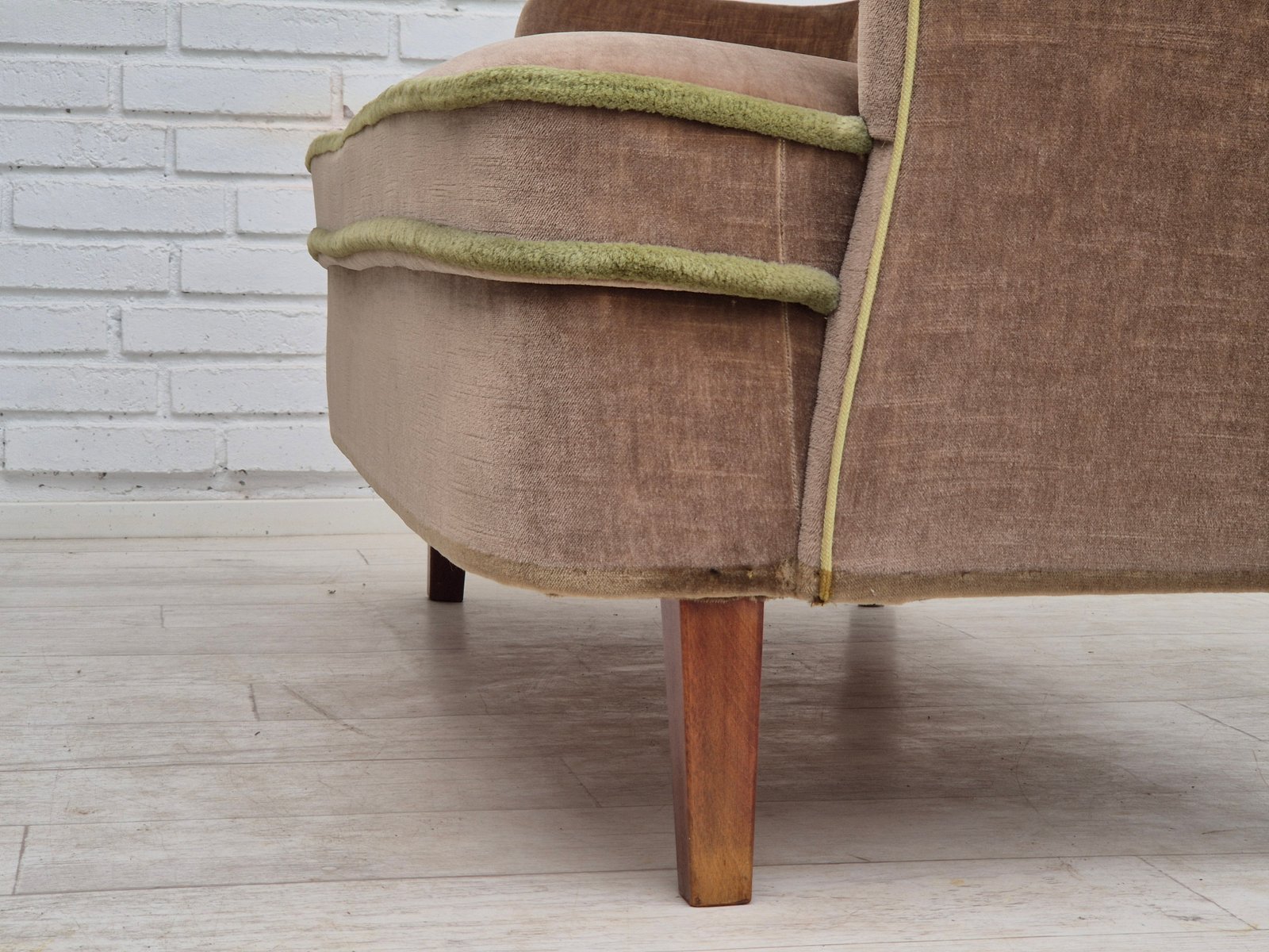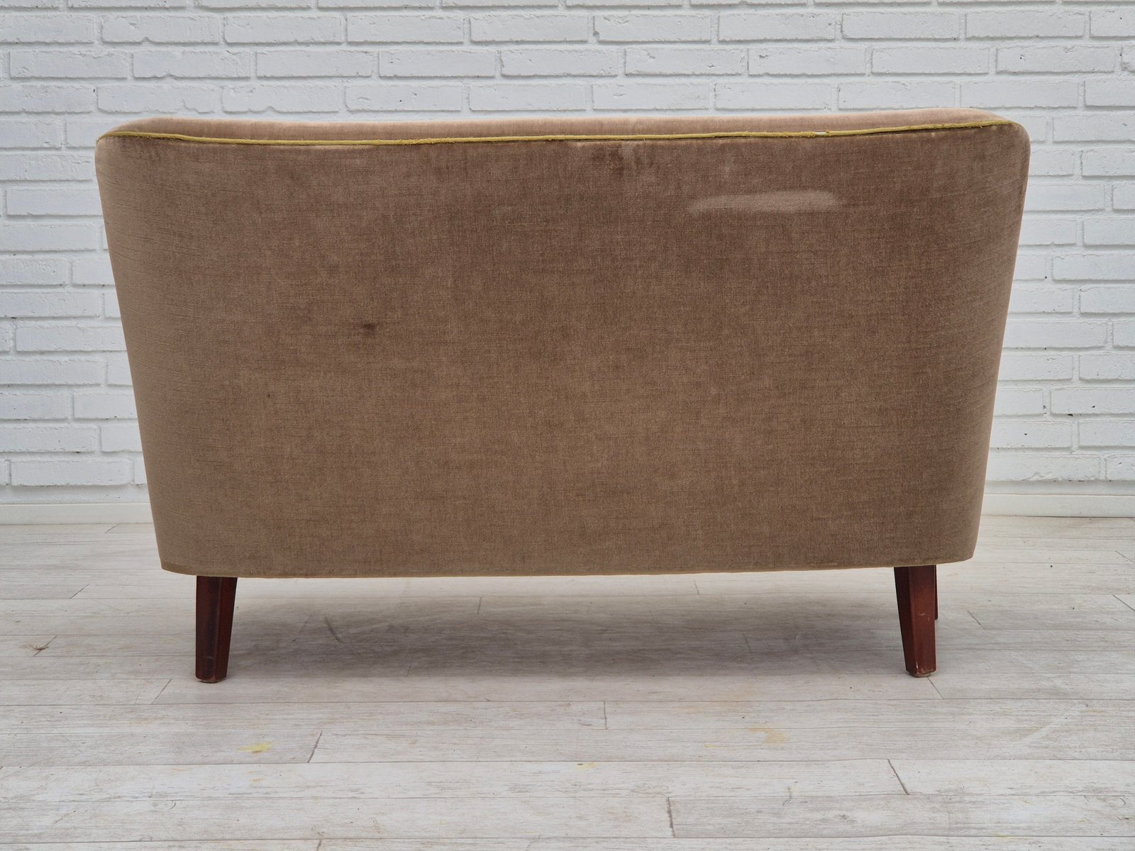 Divano a due posti in velluto e faggio, Danimarca, anni '60