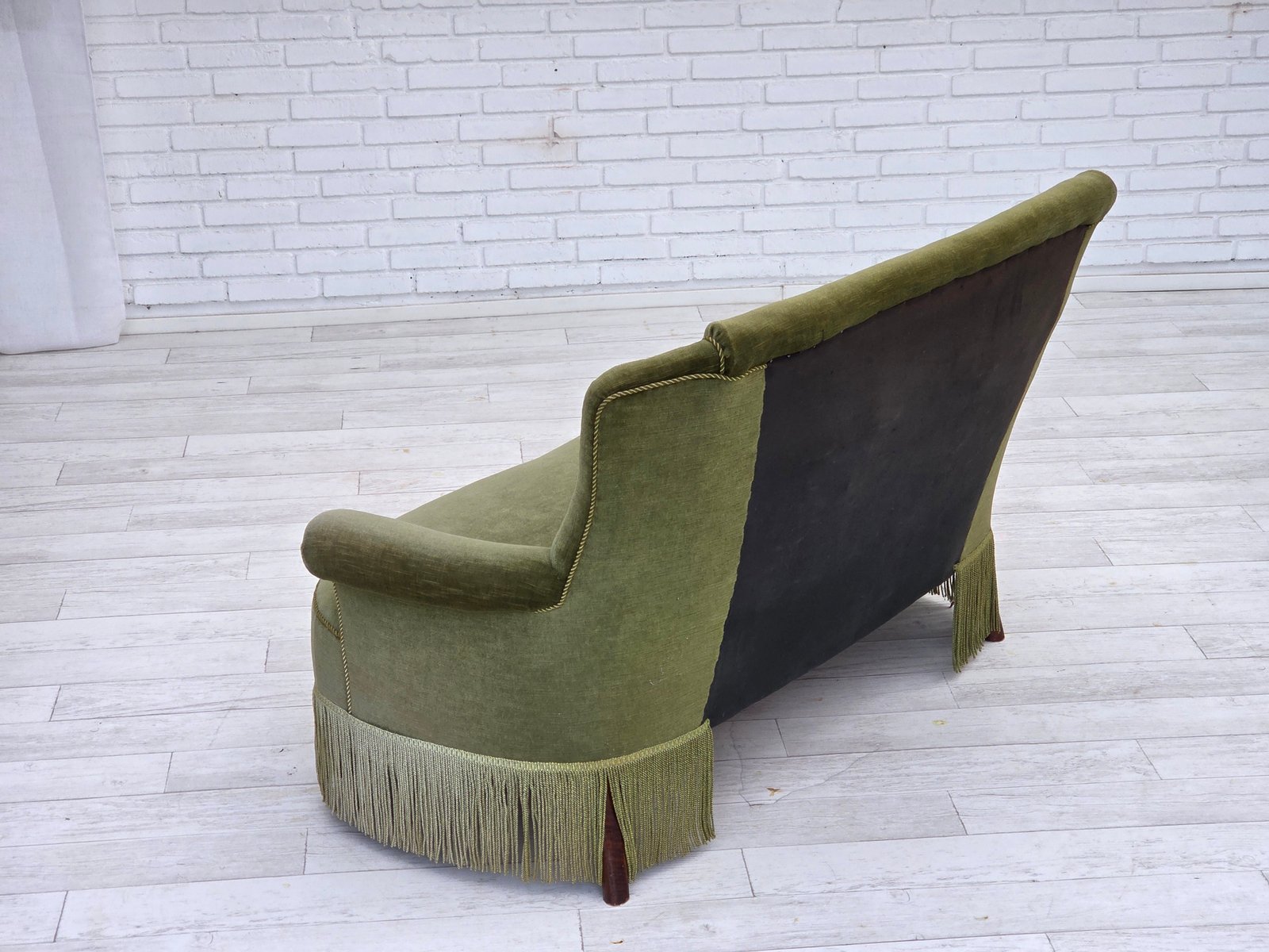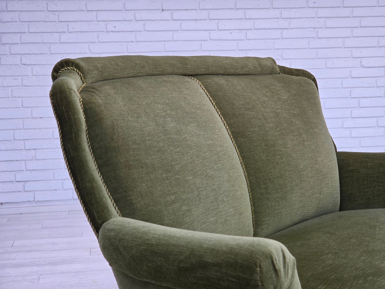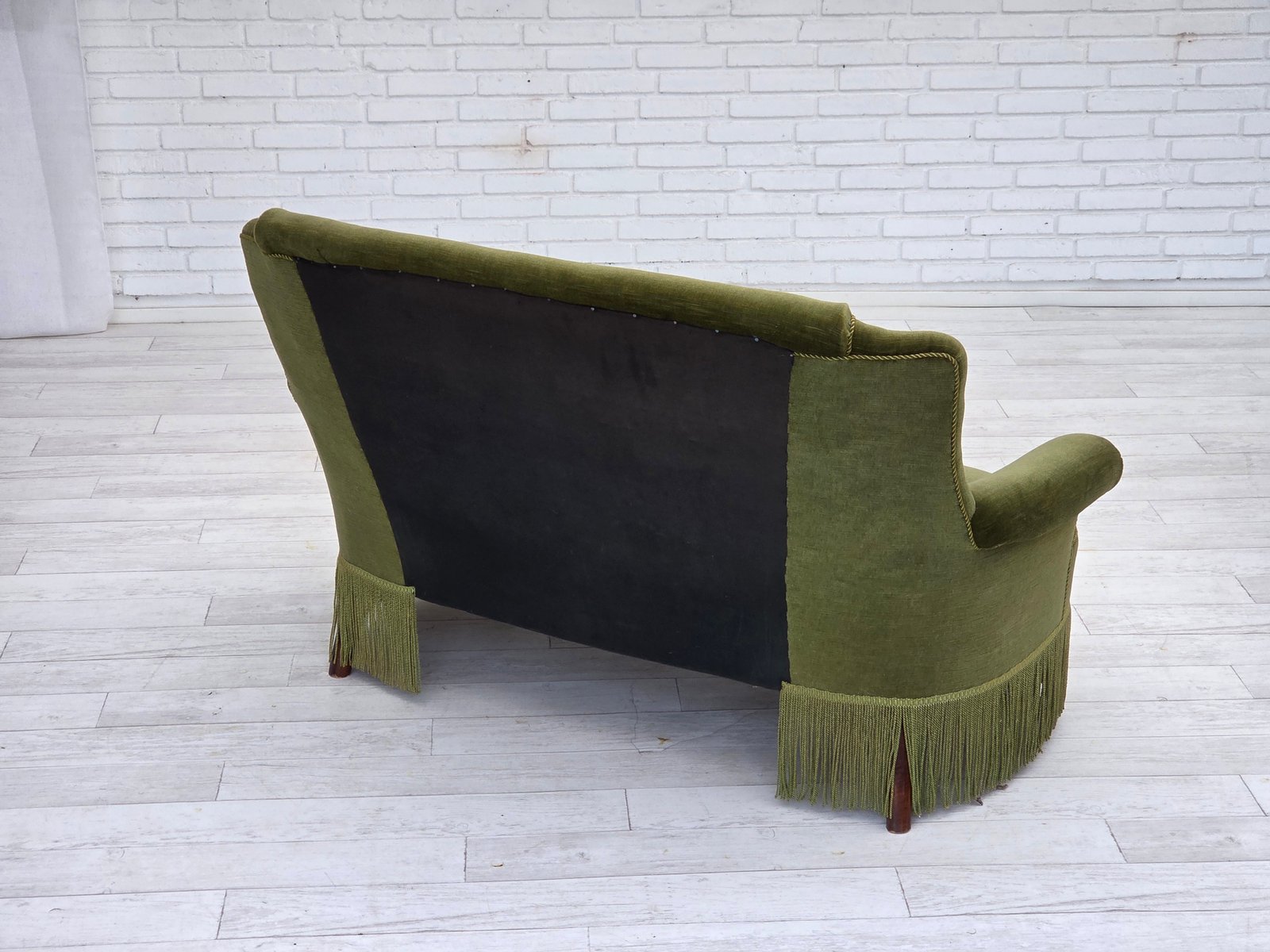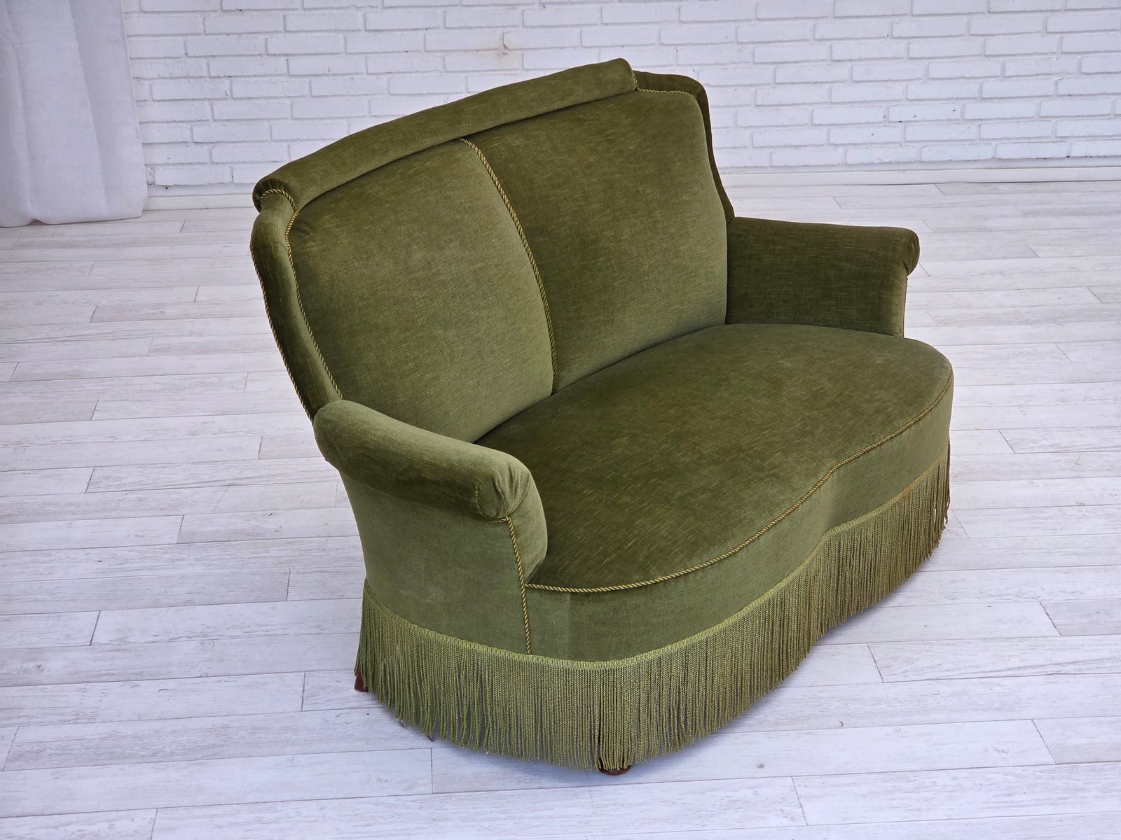 Divano a due posti in velluto verde e gambe in faggio, Danimarca, anni '60